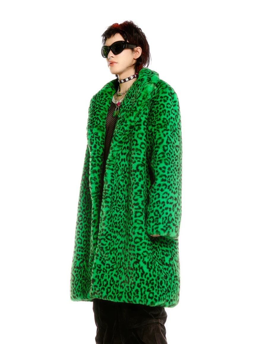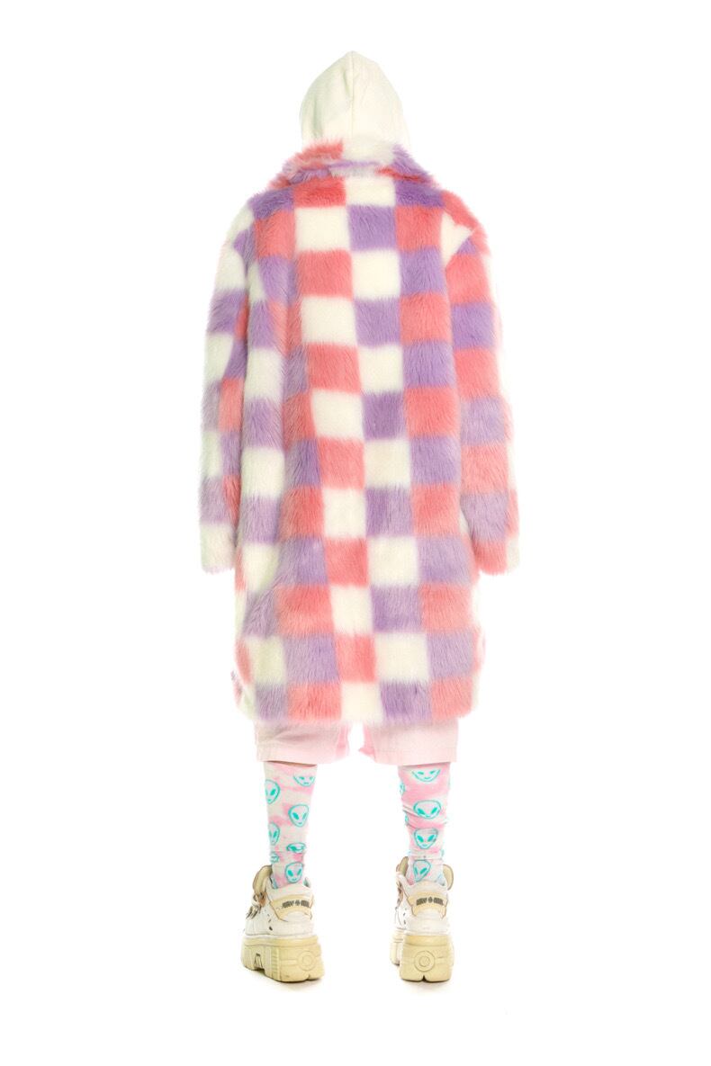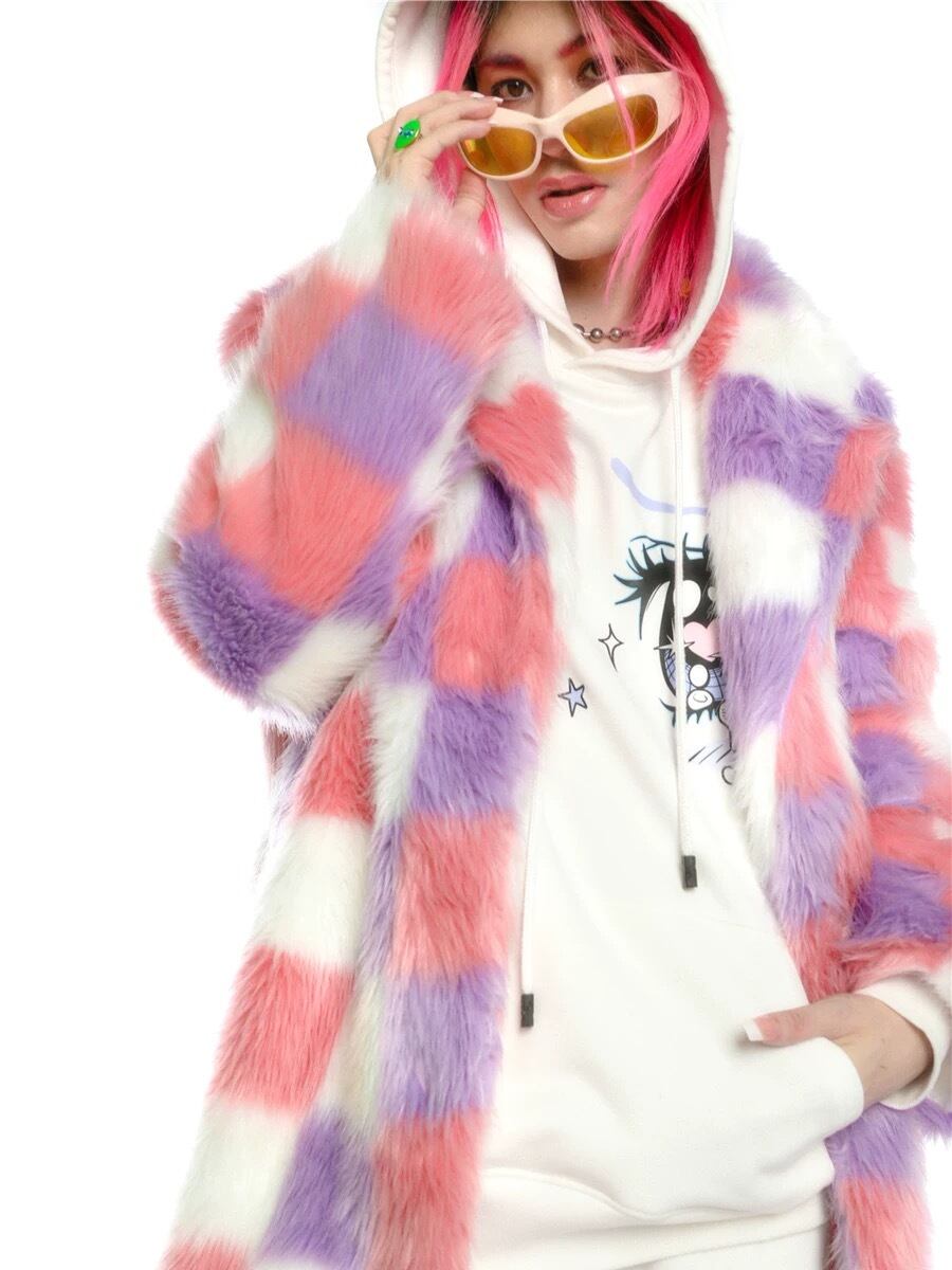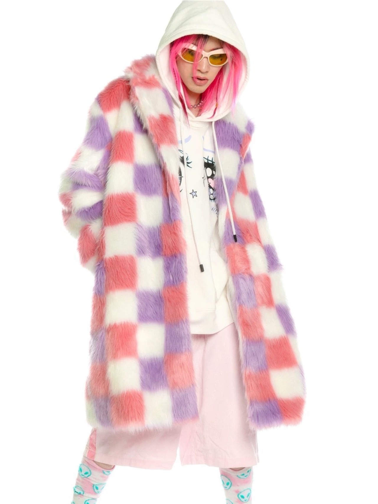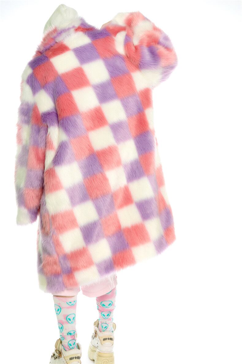 ピンク 紫 チェック アウター ファーコート 緑 レオパード ヒョウ柄