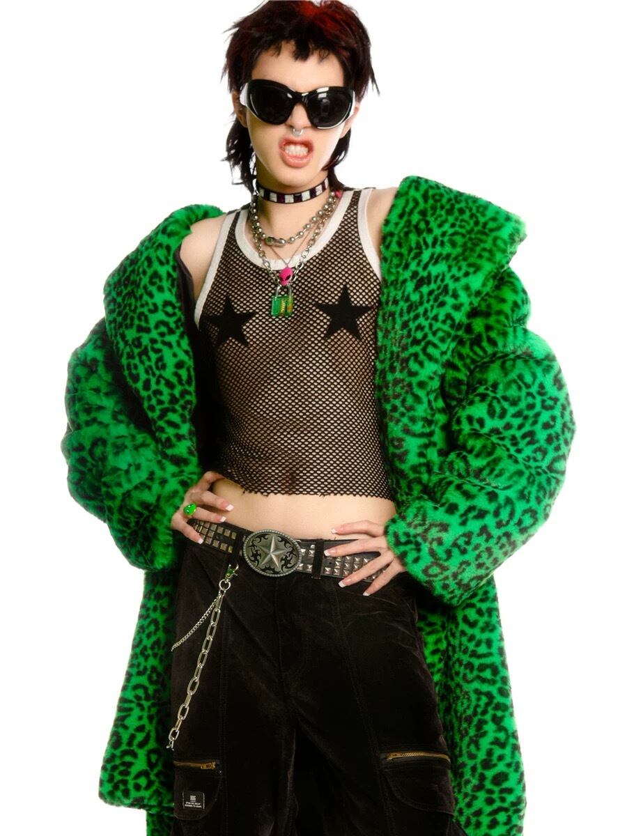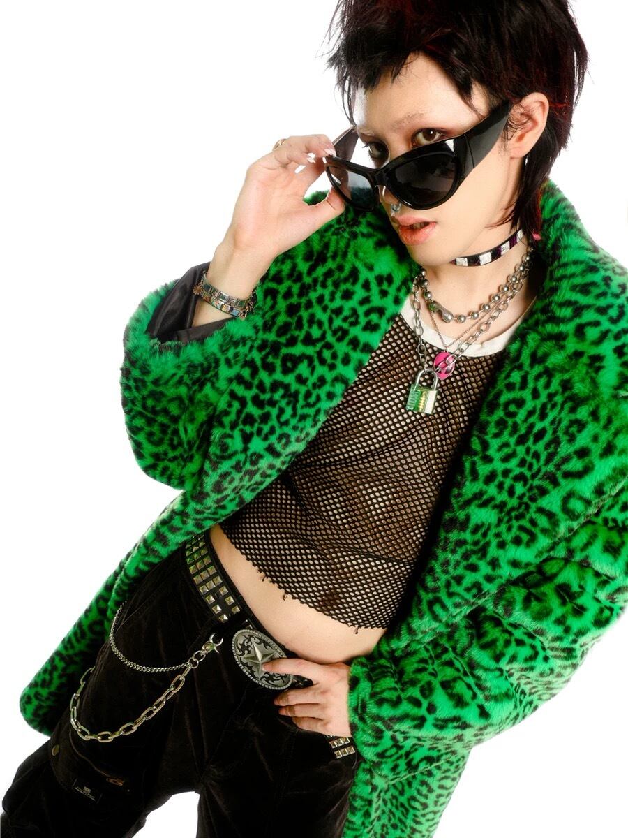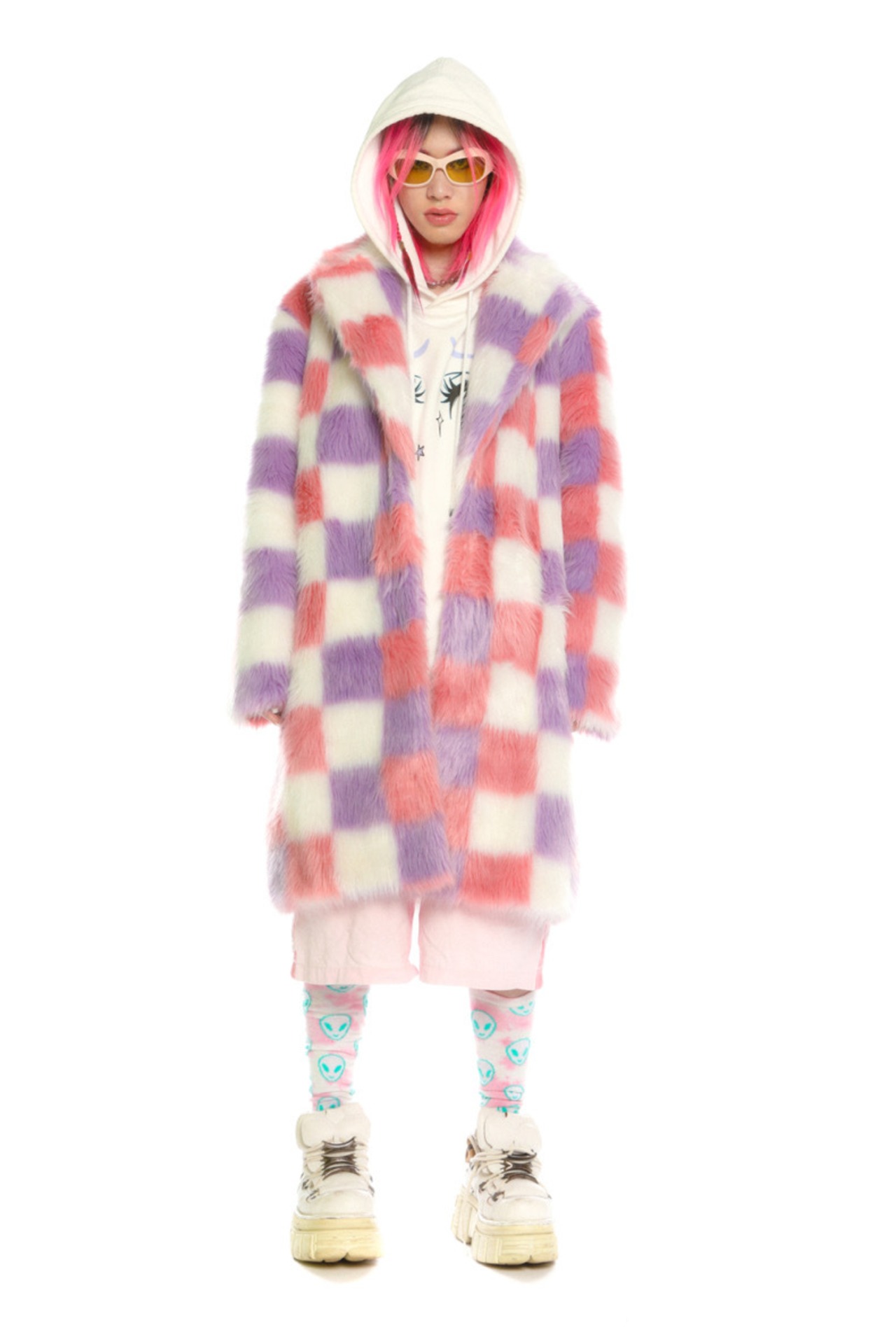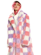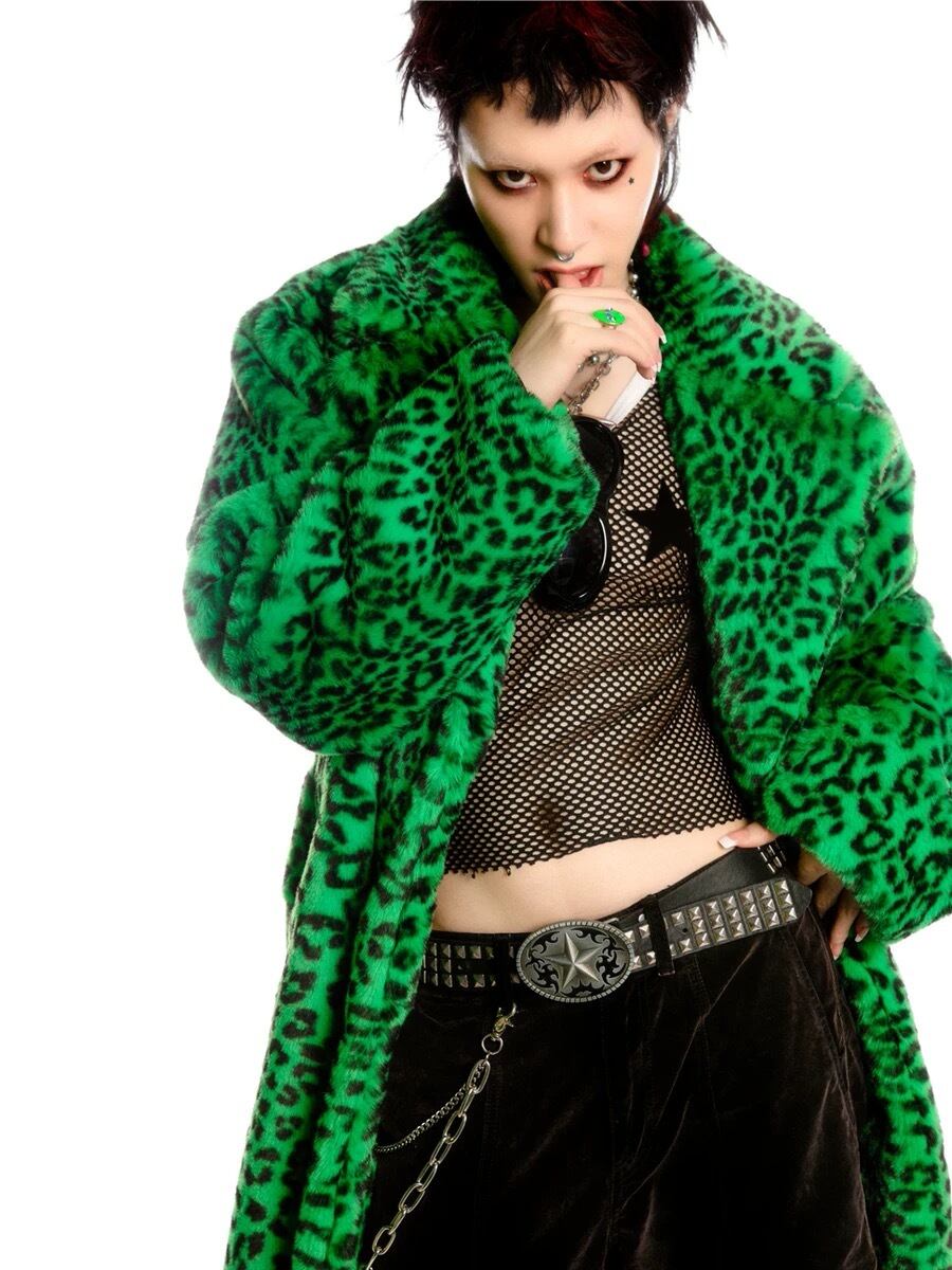 ピンク 紫 チェック アウター ファーコート 緑 レオパード ヒョウ柄