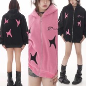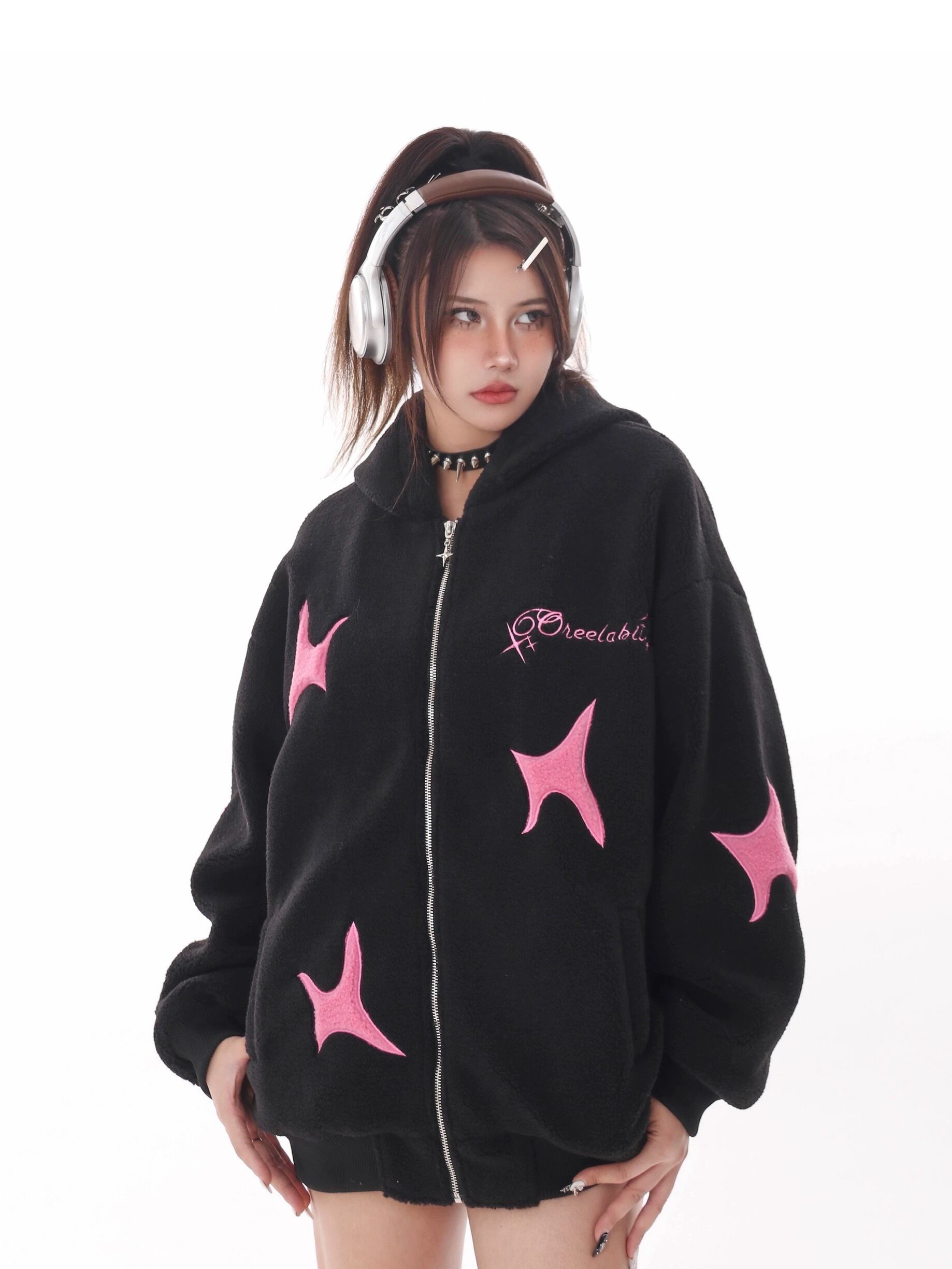 【2XLまで】ピンク 黒 アウター フリース コート