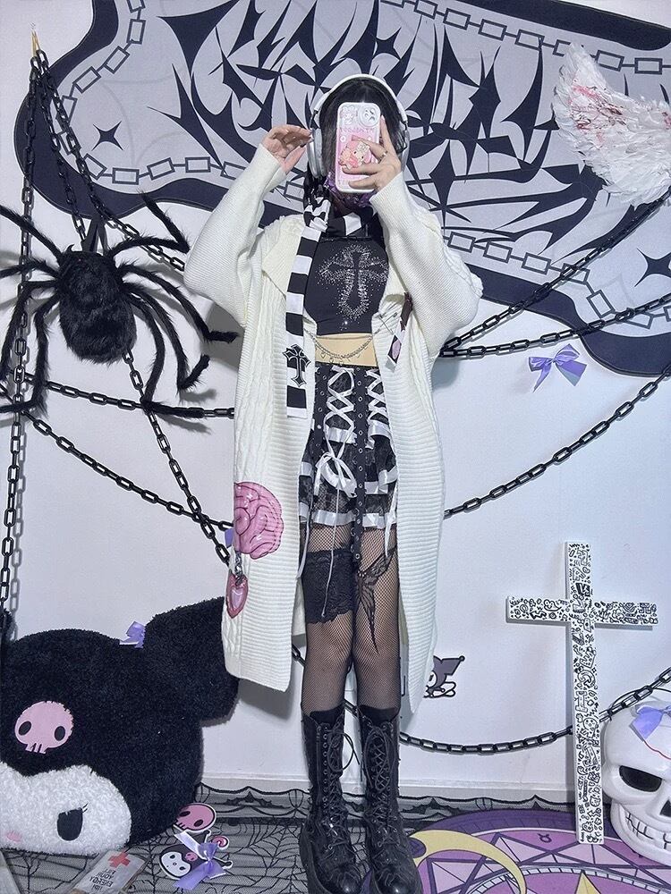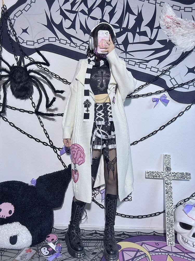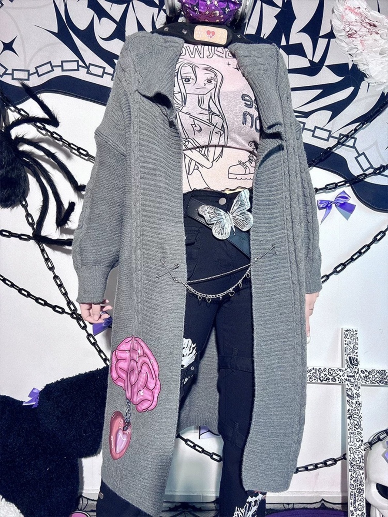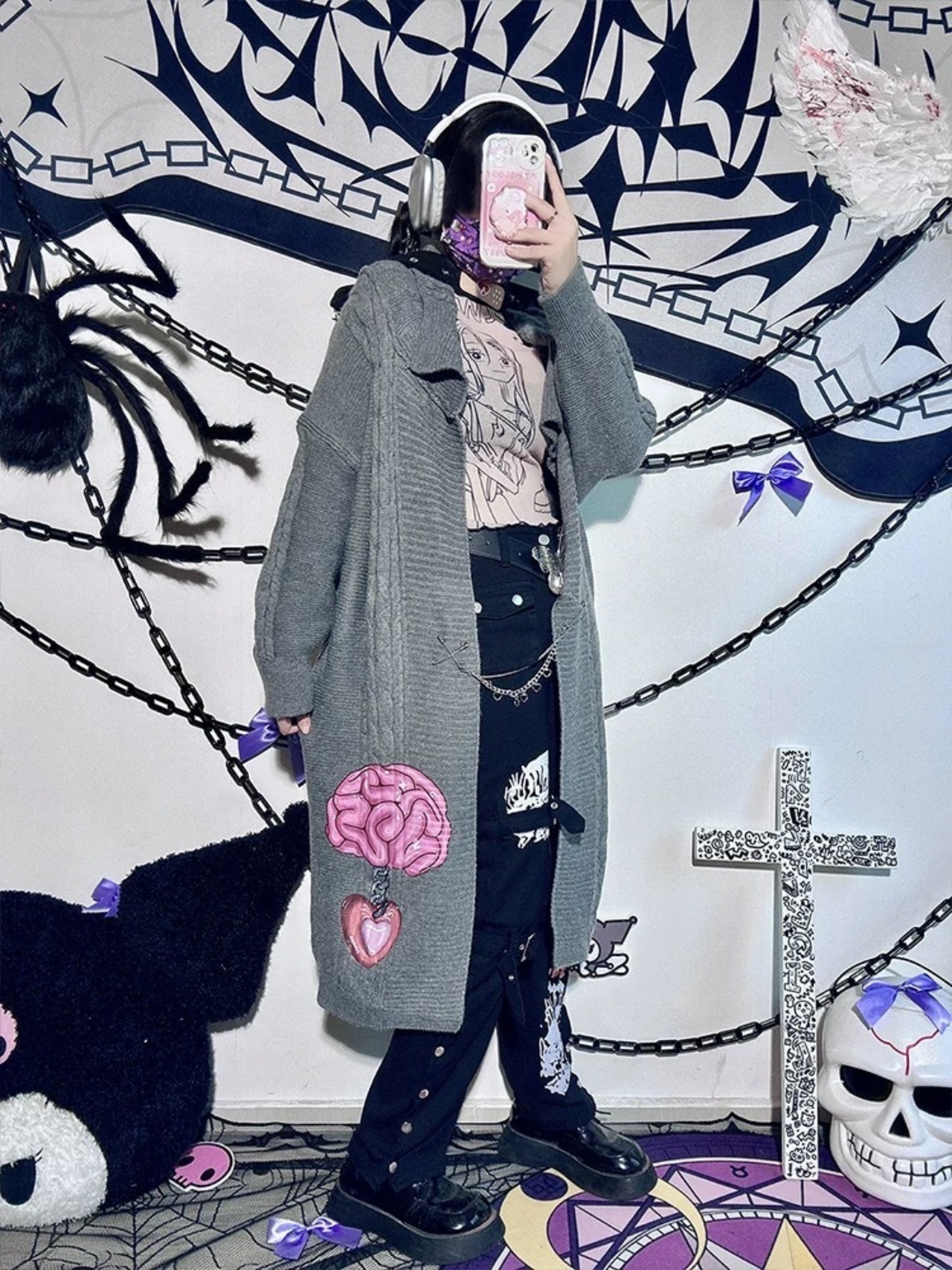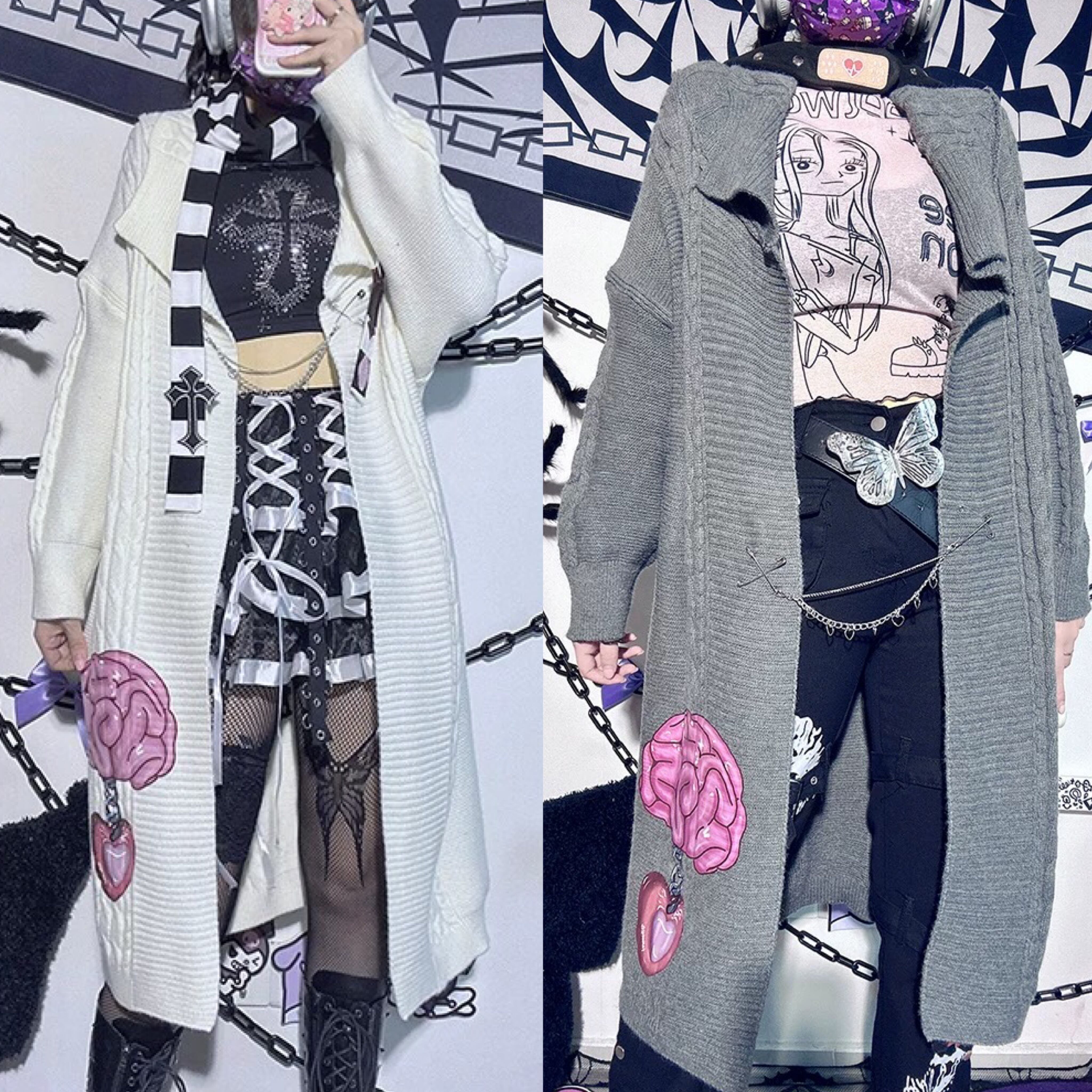 ロングカーディガン アウター ワンピース コート 白 ハート グレー