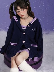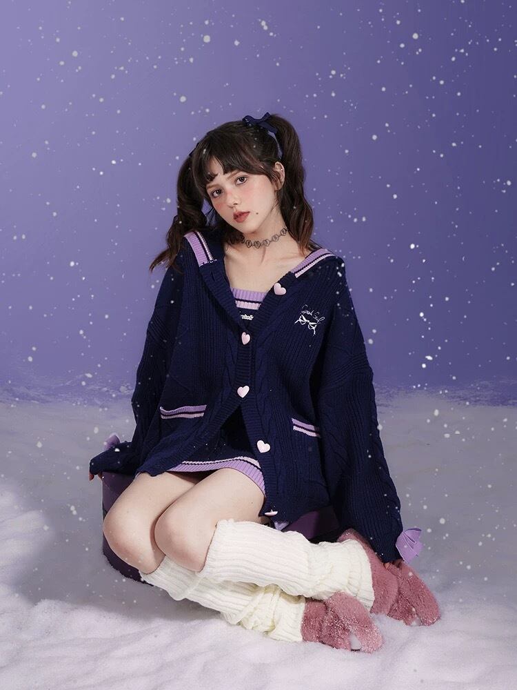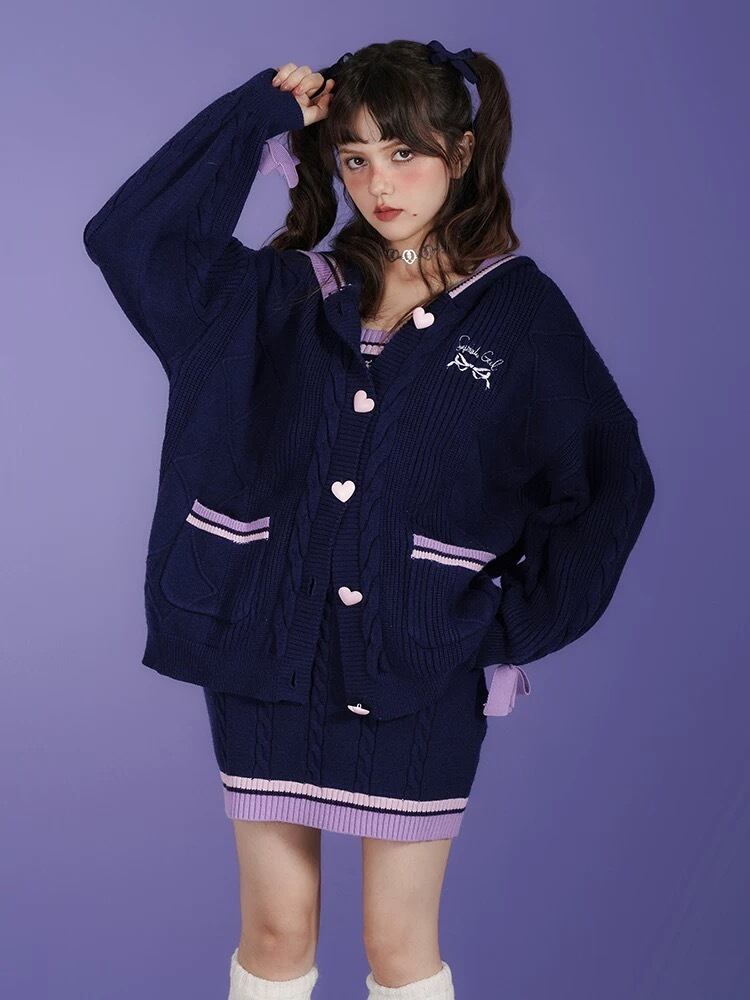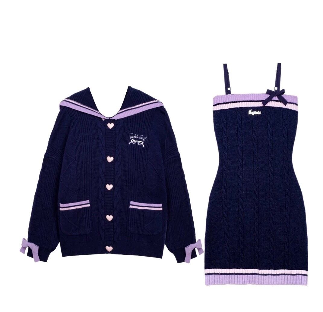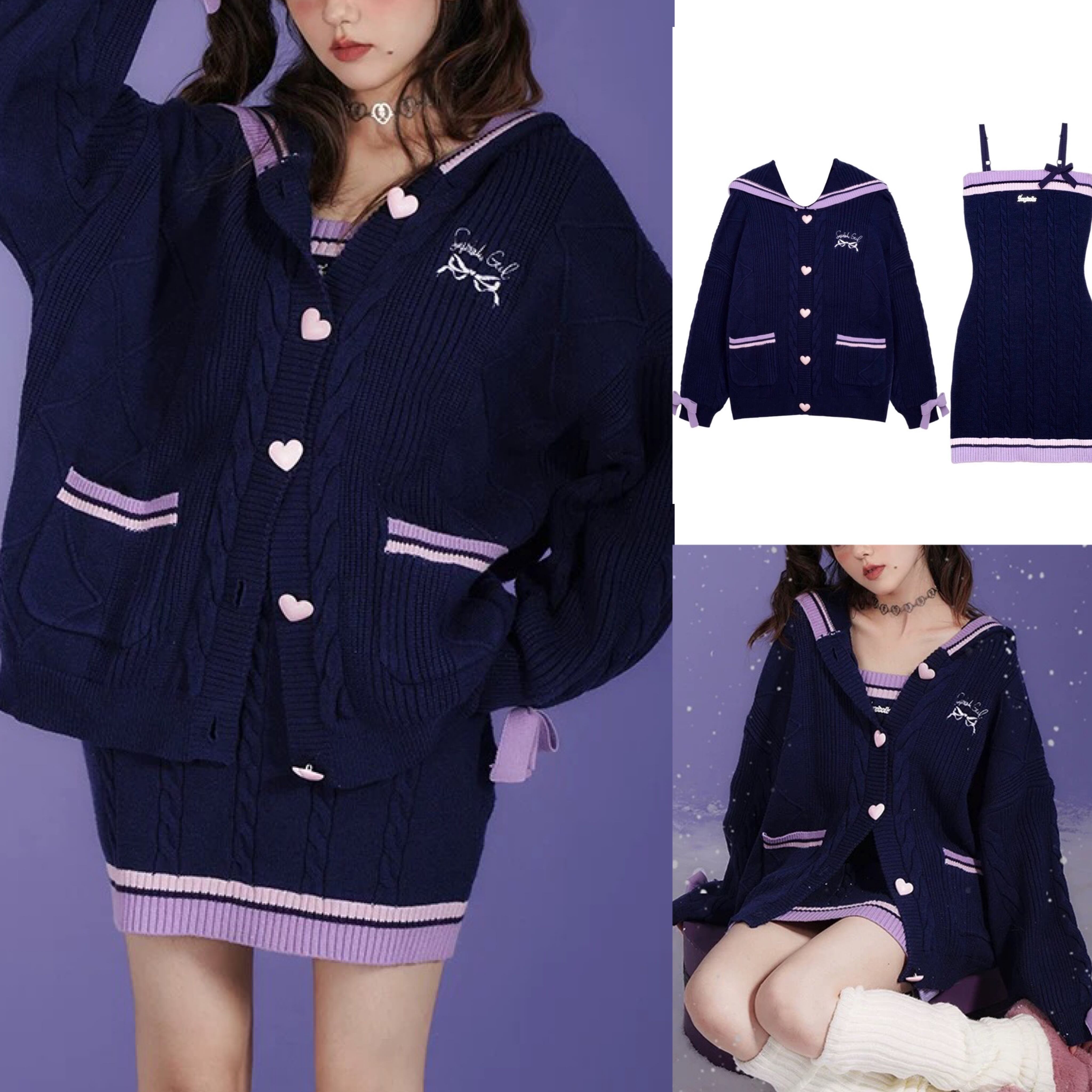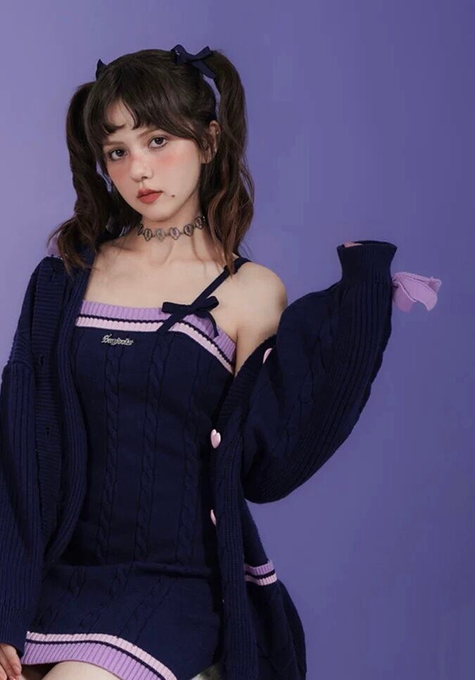 (ワンピースとカーディガンセット❣️】紫 パープル ニット ゆったり 可愛い 黒