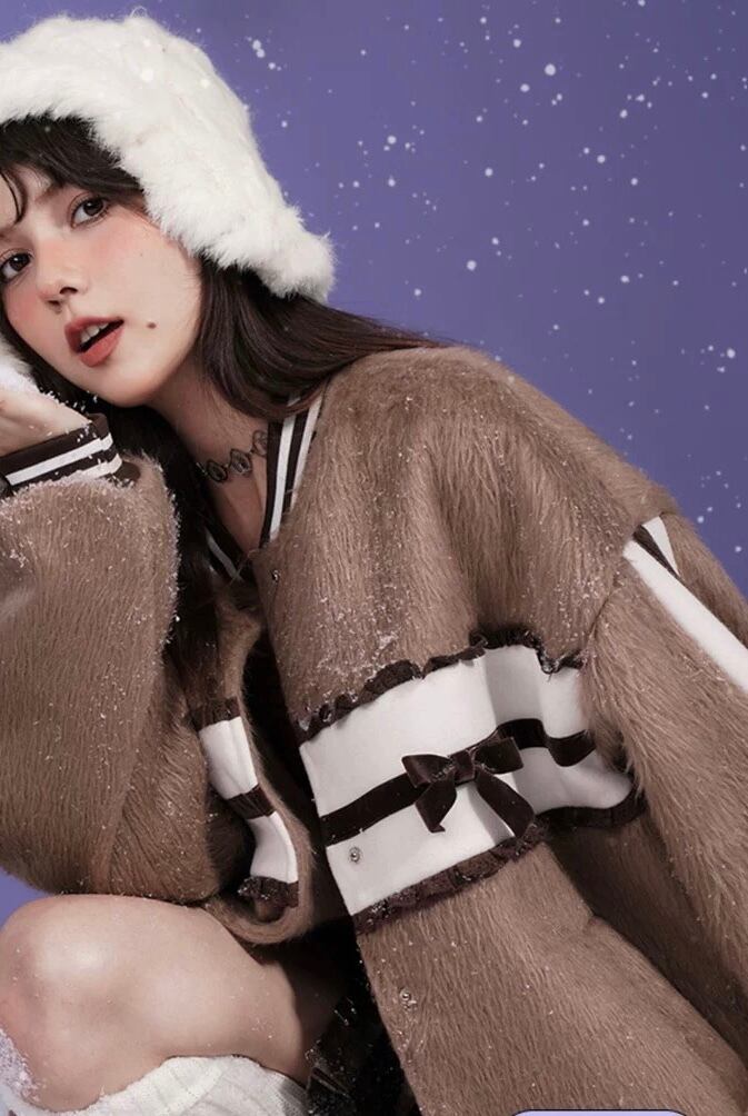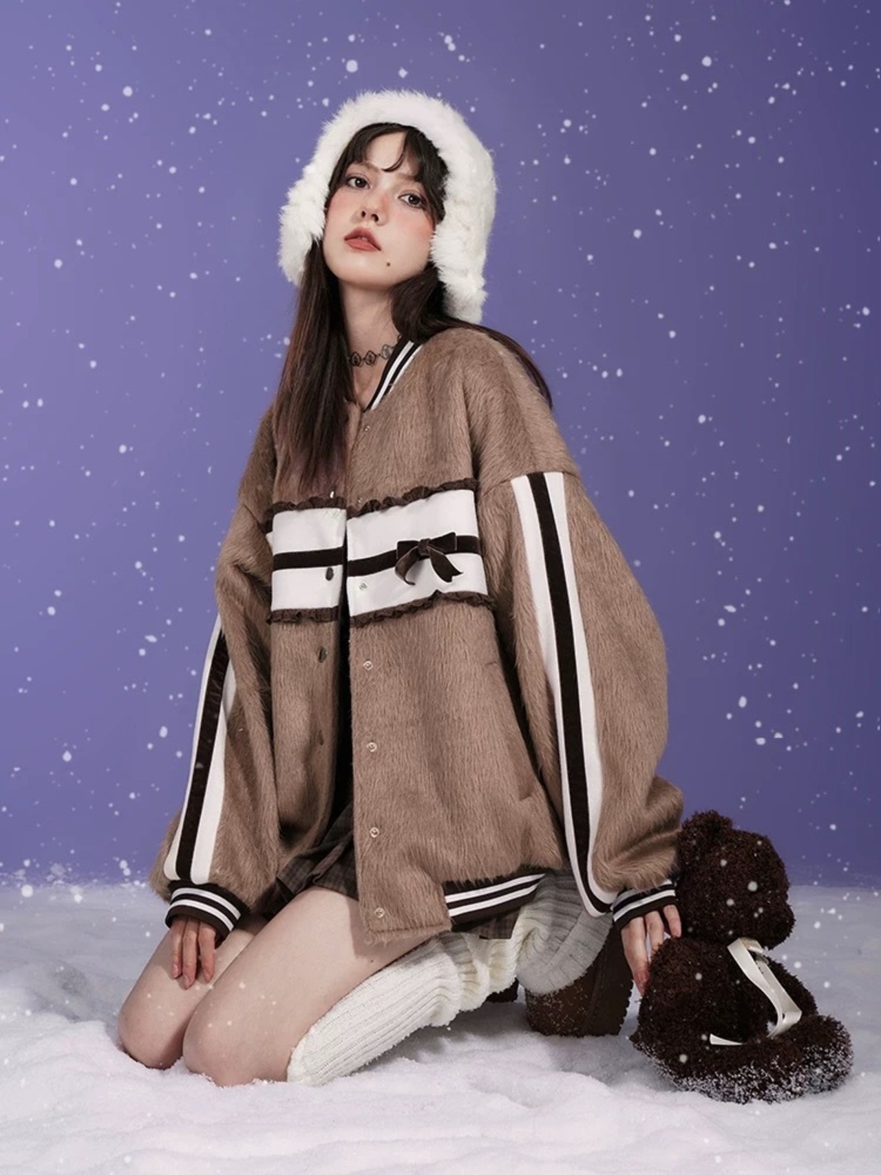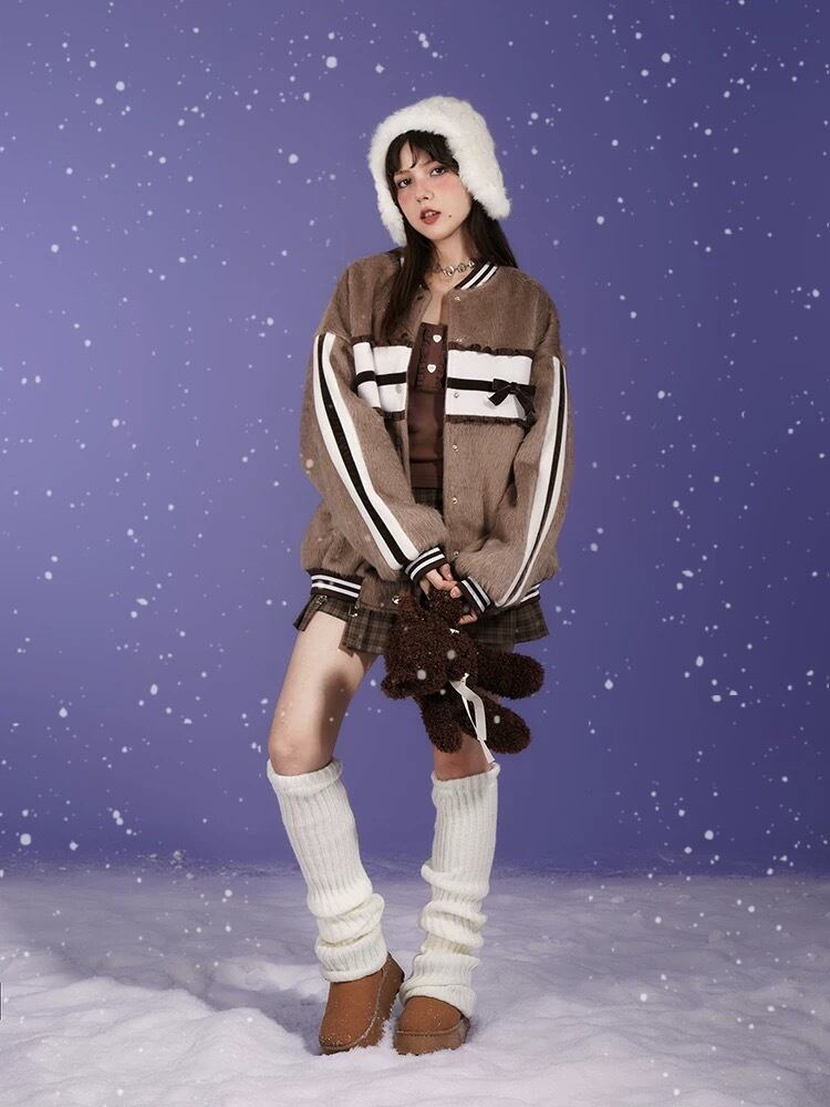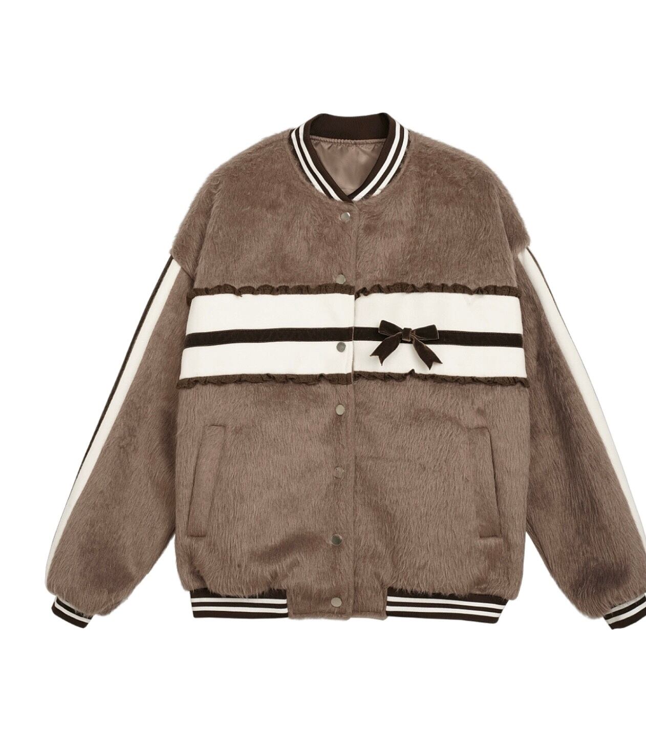 アウター ブルゾン ジャケット ジャンパー 茶色 リボン