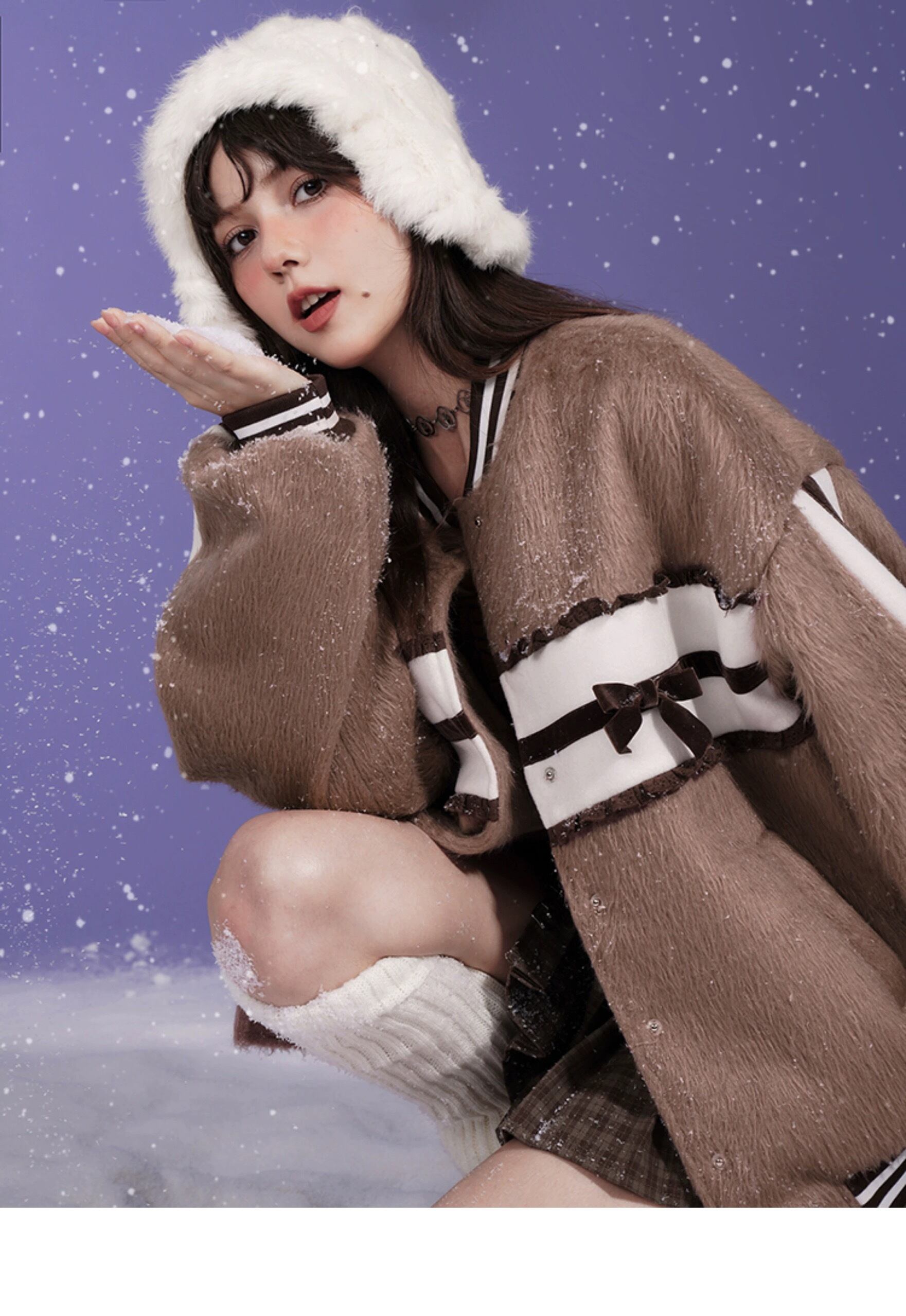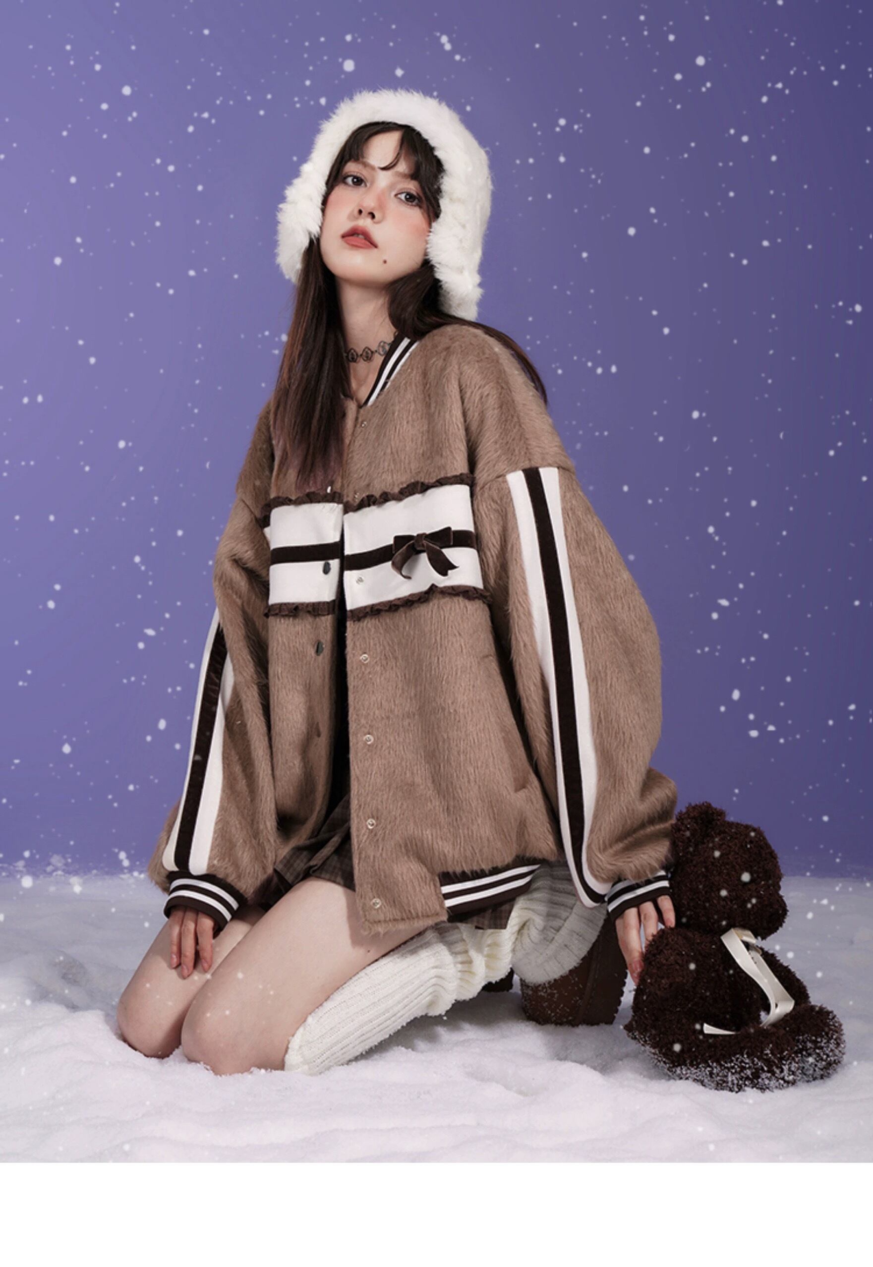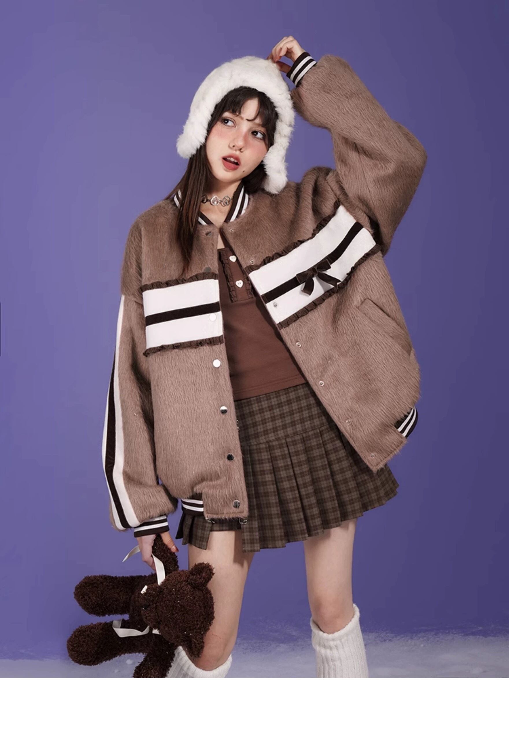 アウター ブルゾン ジャケット ジャンパー 茶色 リボン