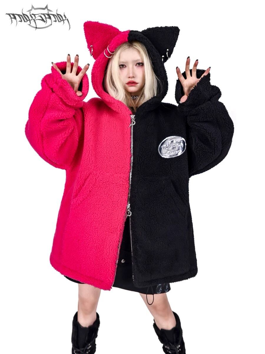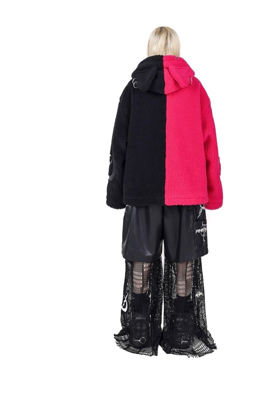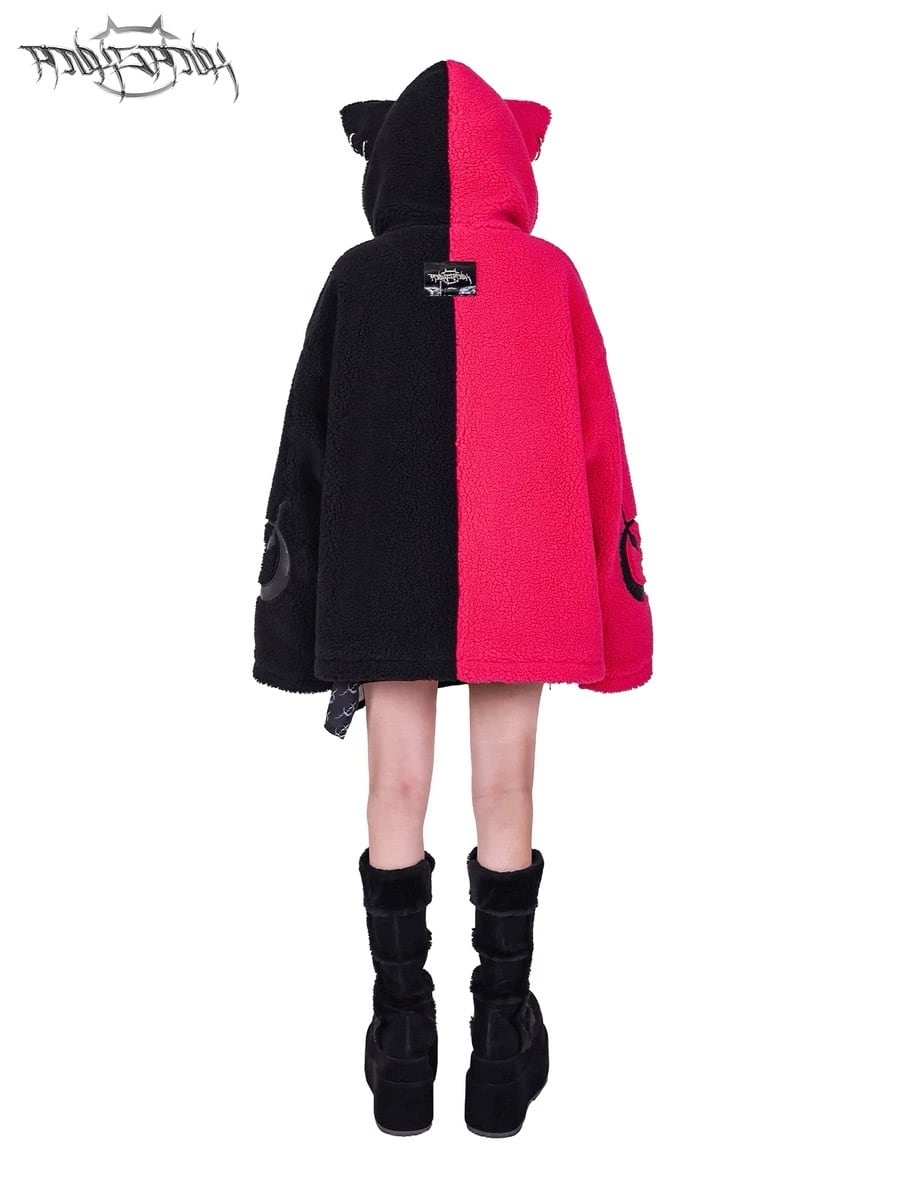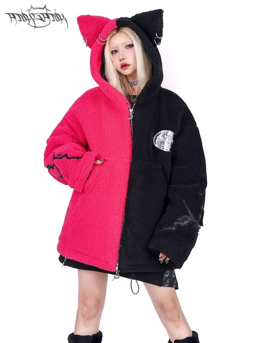 ピンク 黒 アウター コート フリース アウター バイカラー