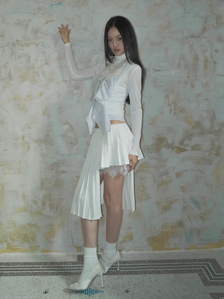 【スカート】ホワイト プリーツ 白 シンプル エレガント