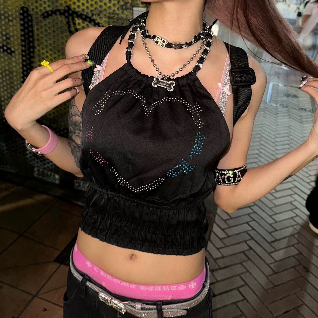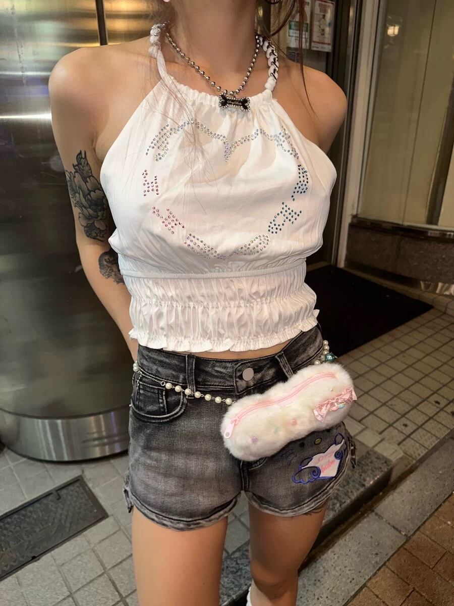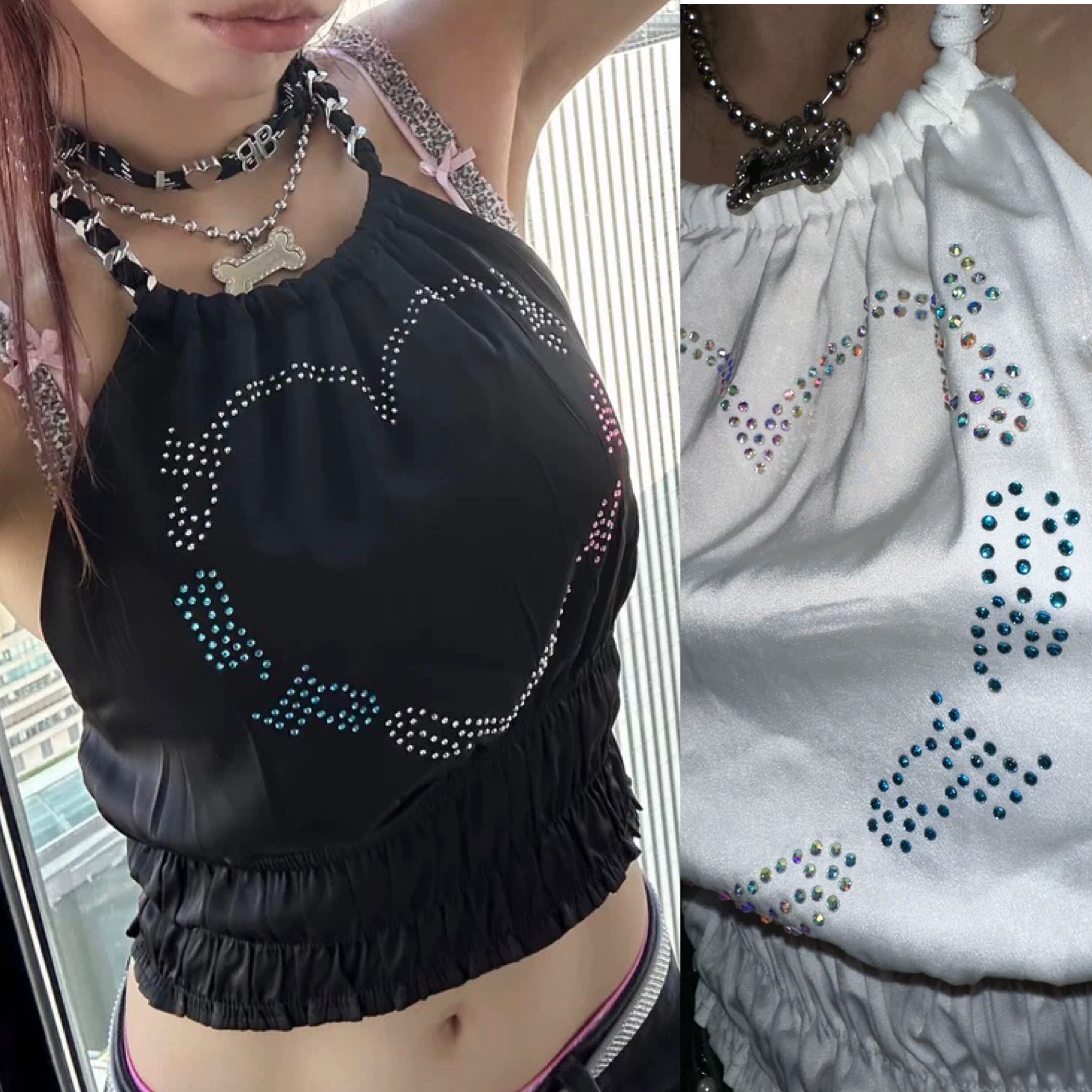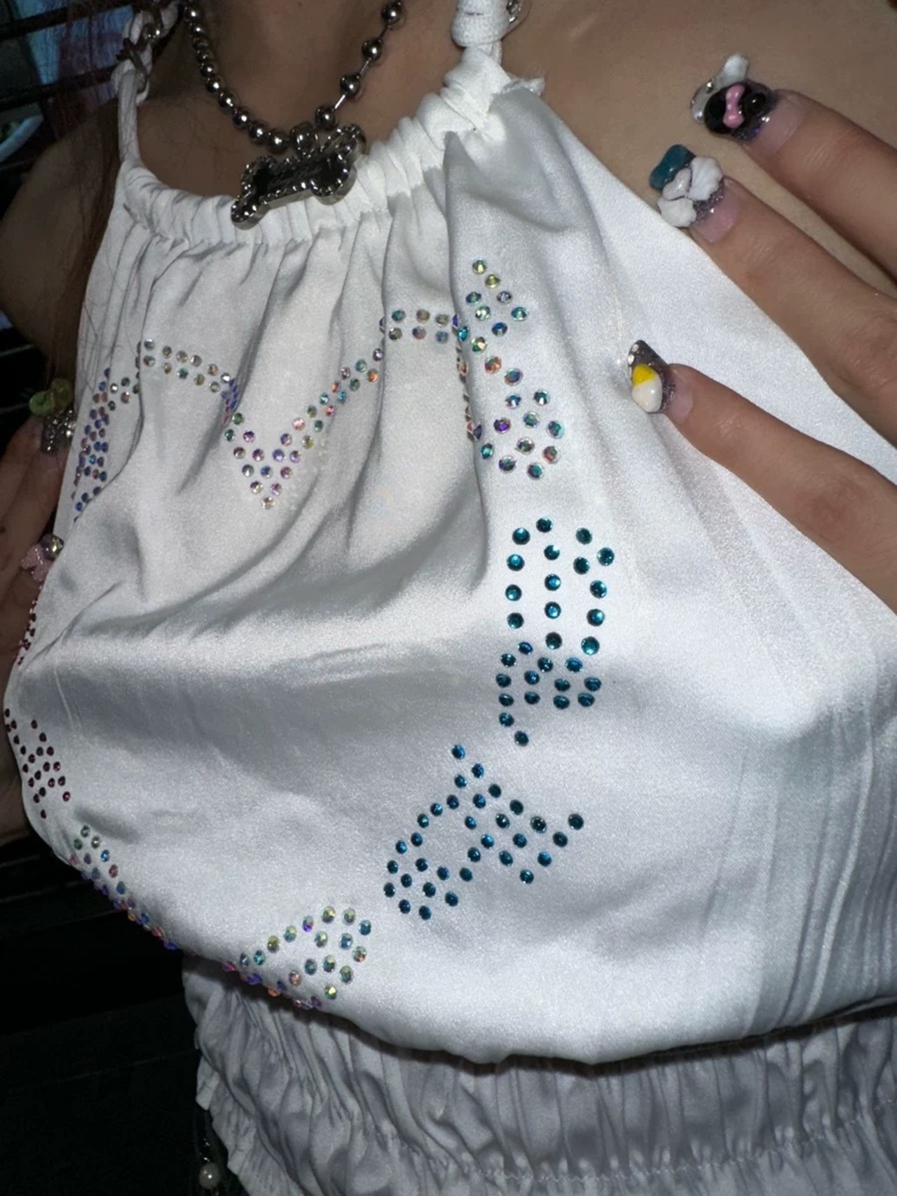 トップス 白 ブラック 黒 ラインストーン ダンス