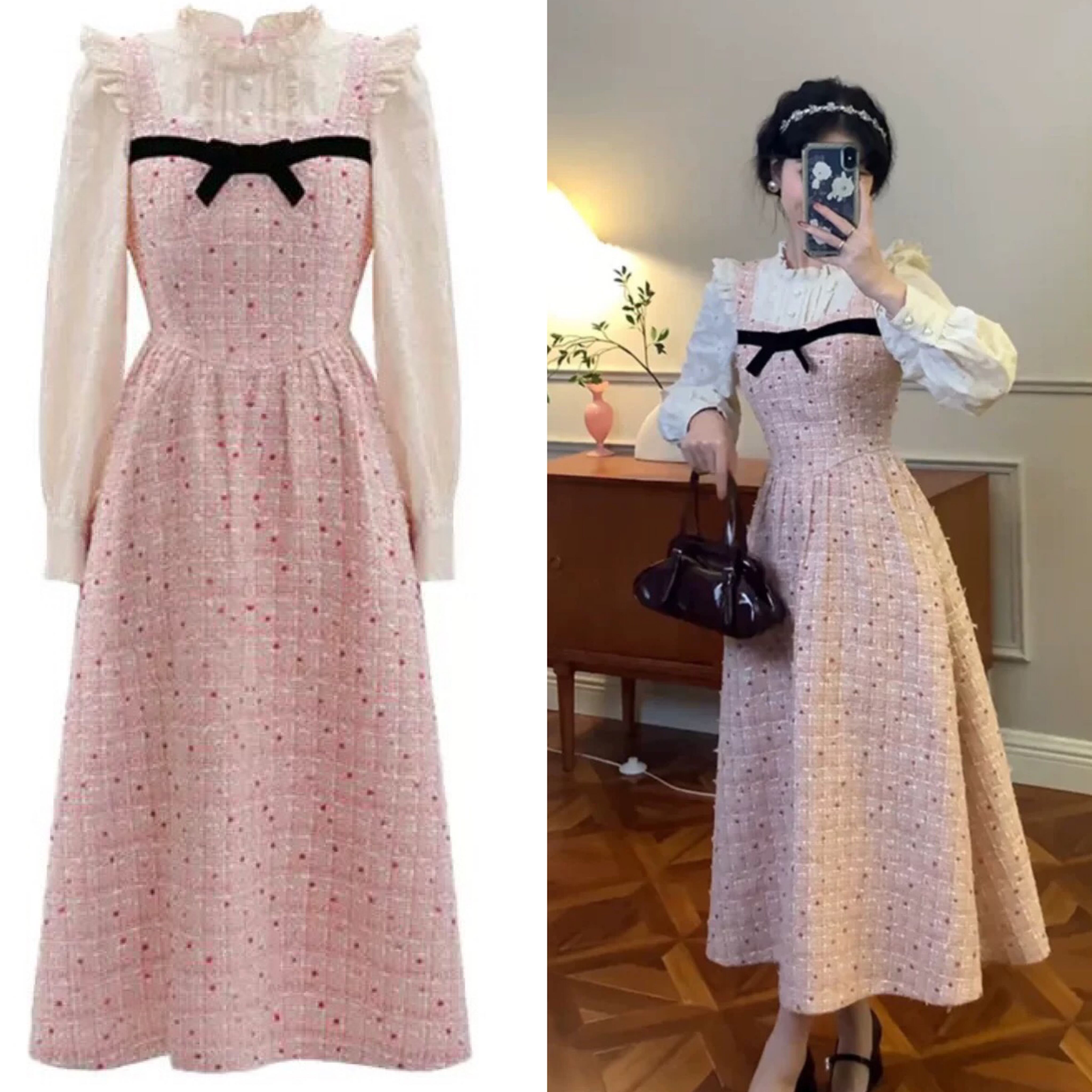 【長い着丈】ピンク ガーリー ワンピース ブラウス