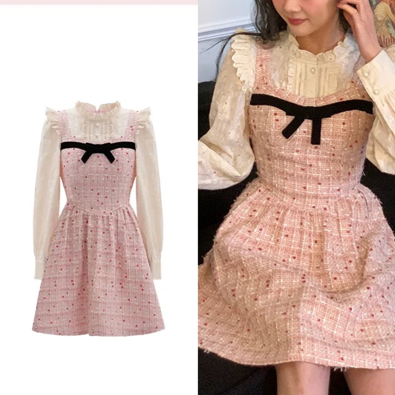 【短い着丈】ピンク ブラウス ワンピース ガーリー 可愛い