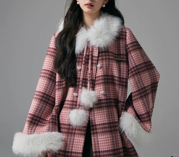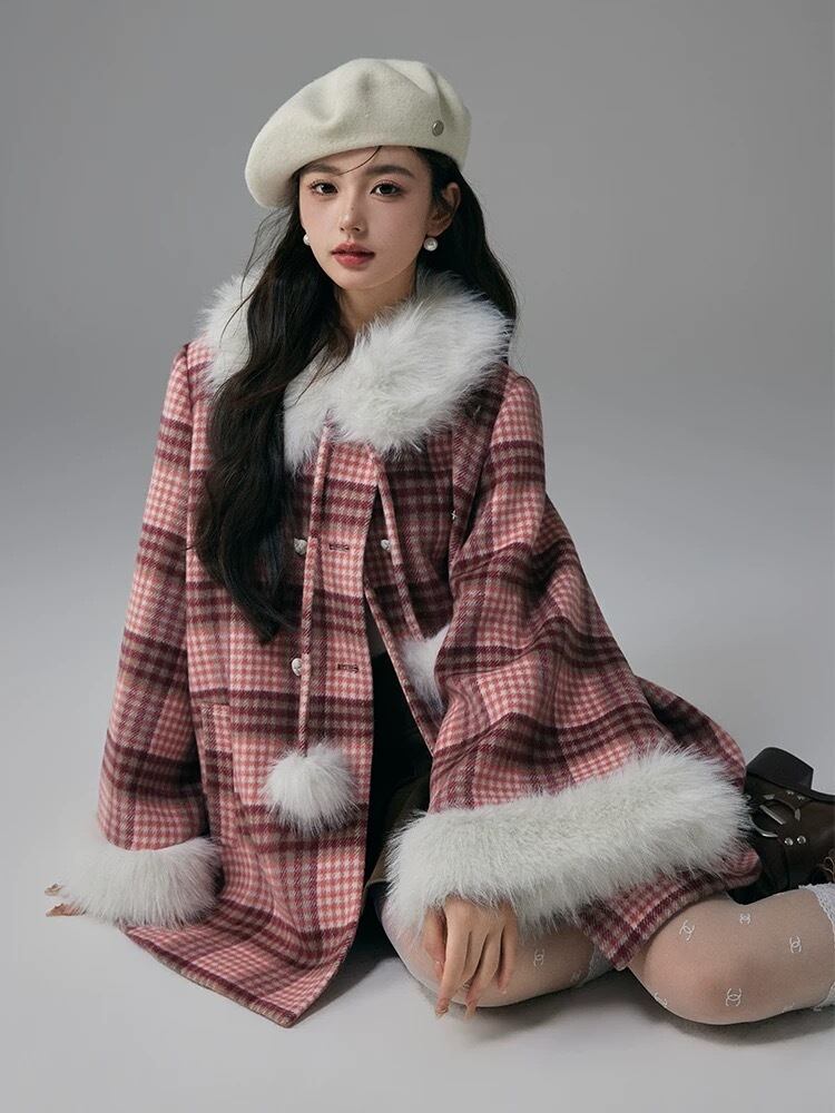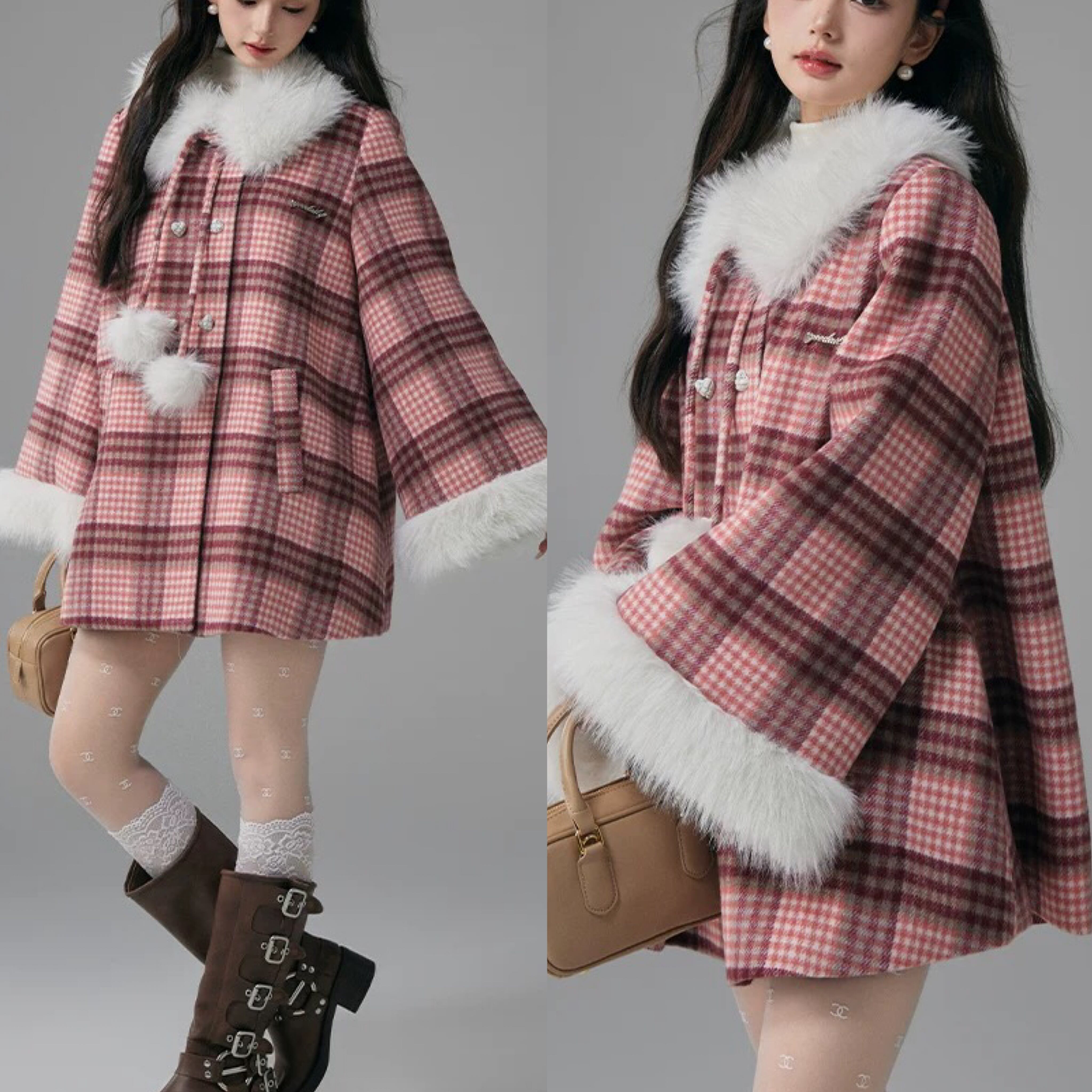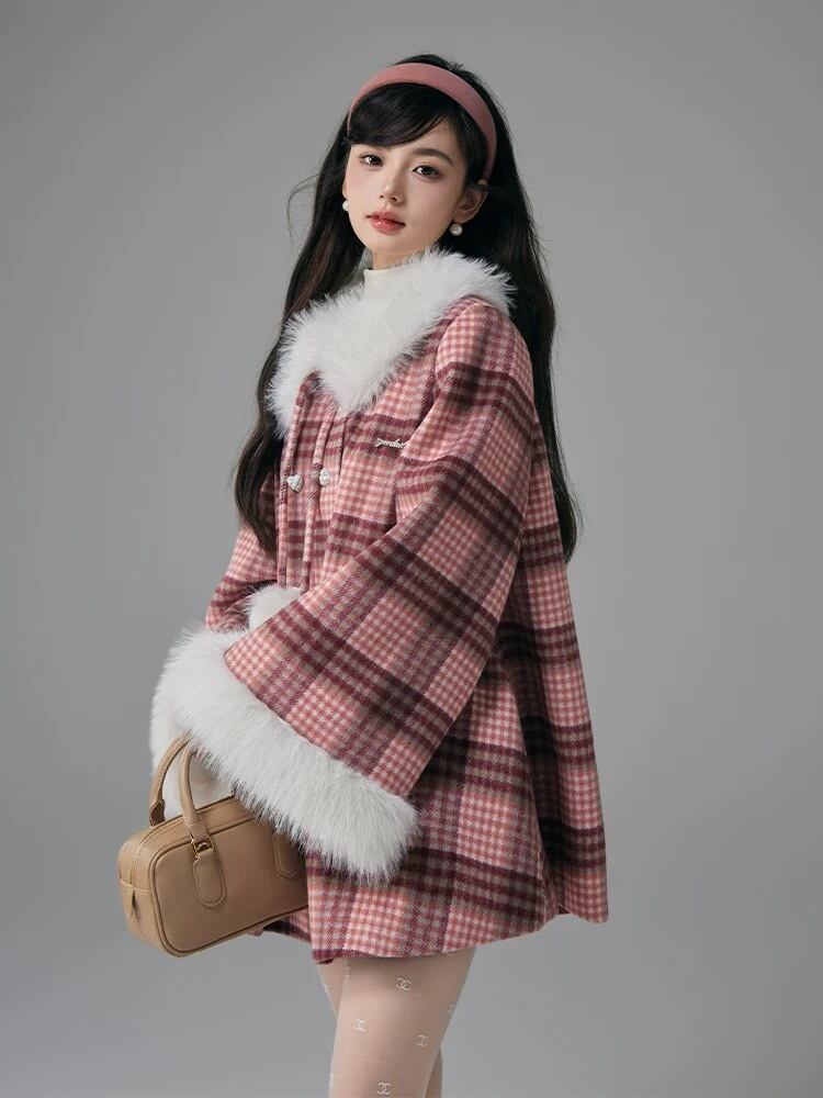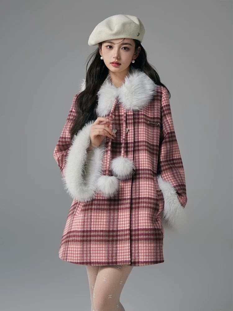 ピンク チェック コート アウター ファー ガーリー 可愛い