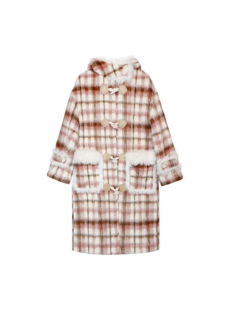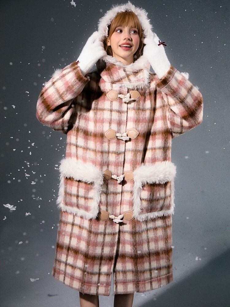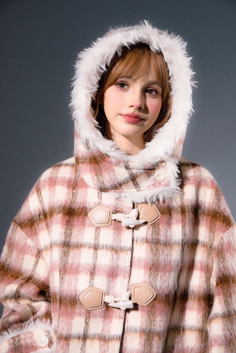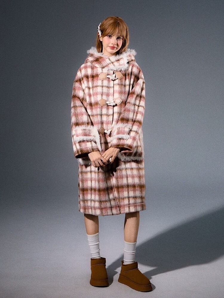 チェック アウター フード ガーリー ワンピース コート ジャケット