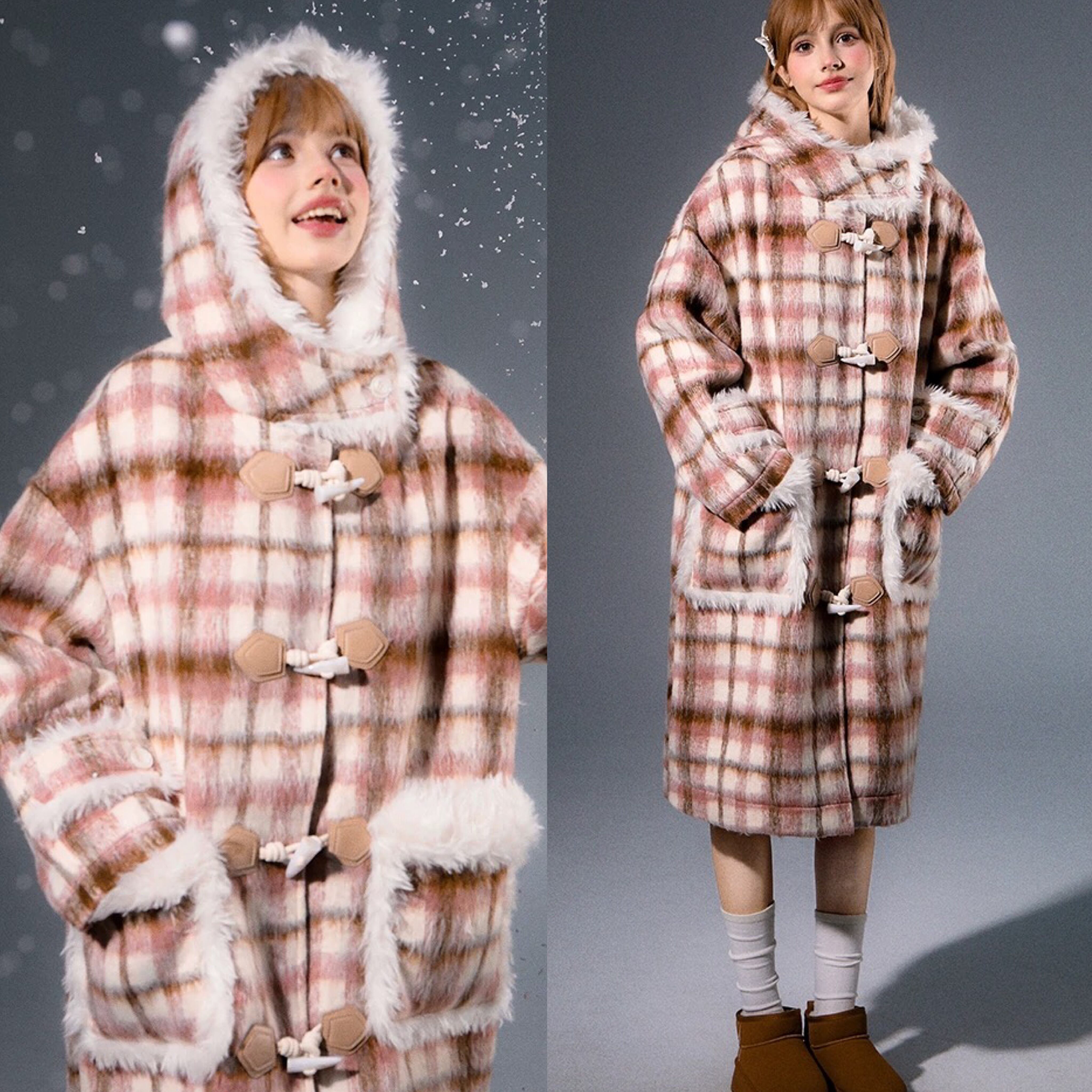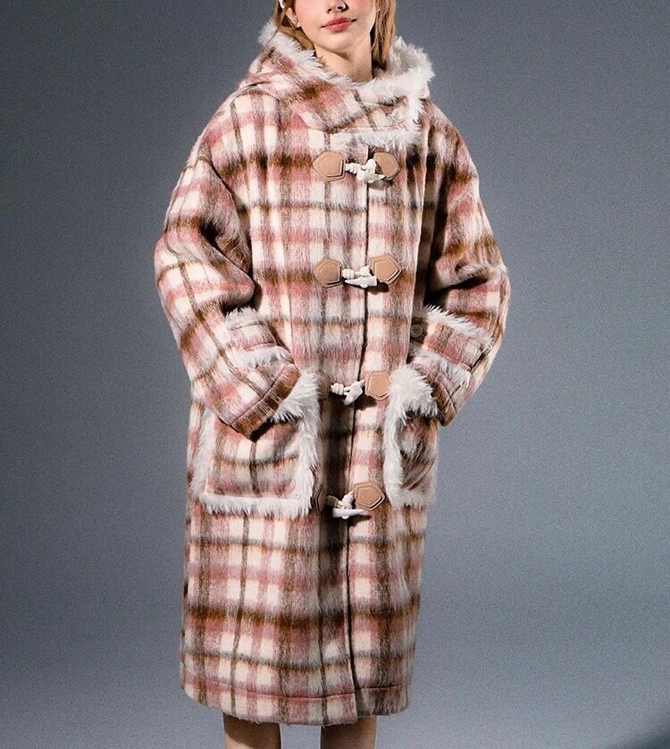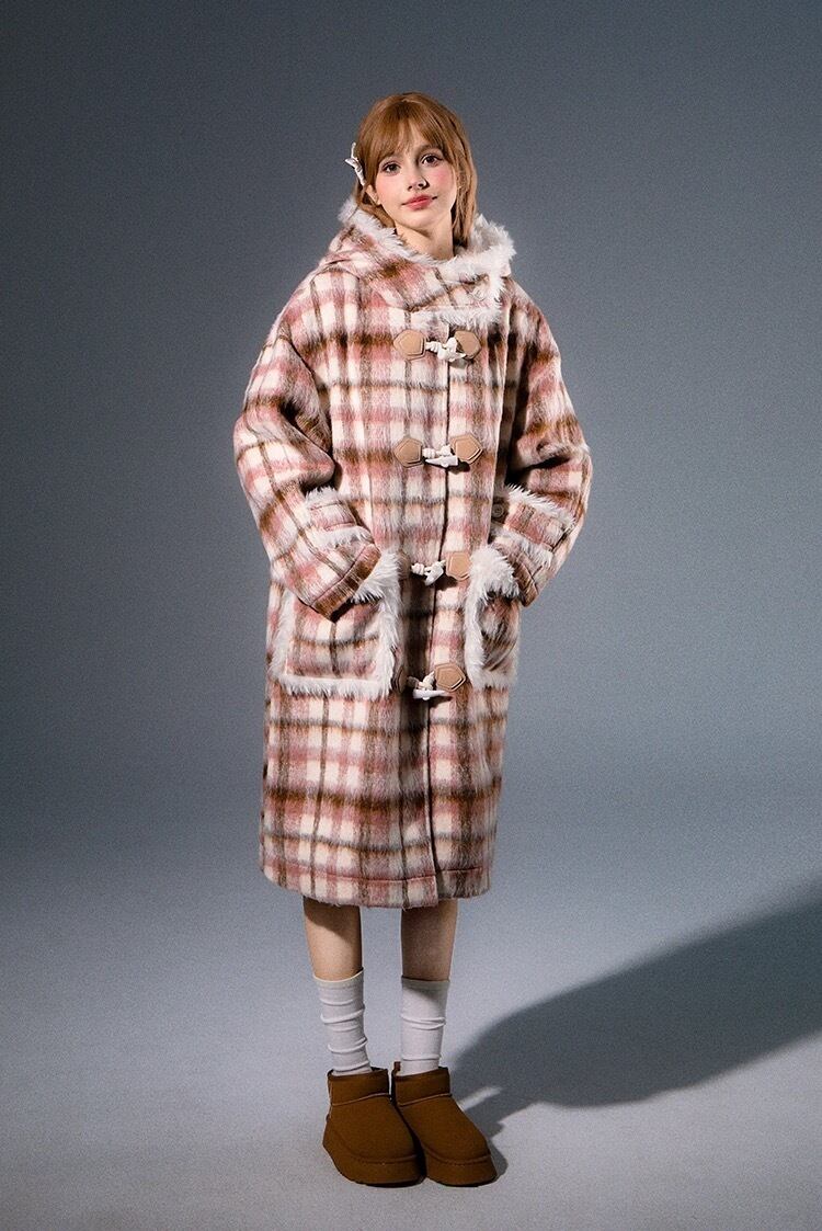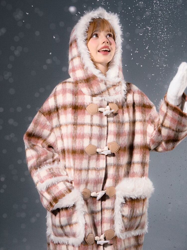 チェック アウター フード ガーリー ワンピース コート ジャケット