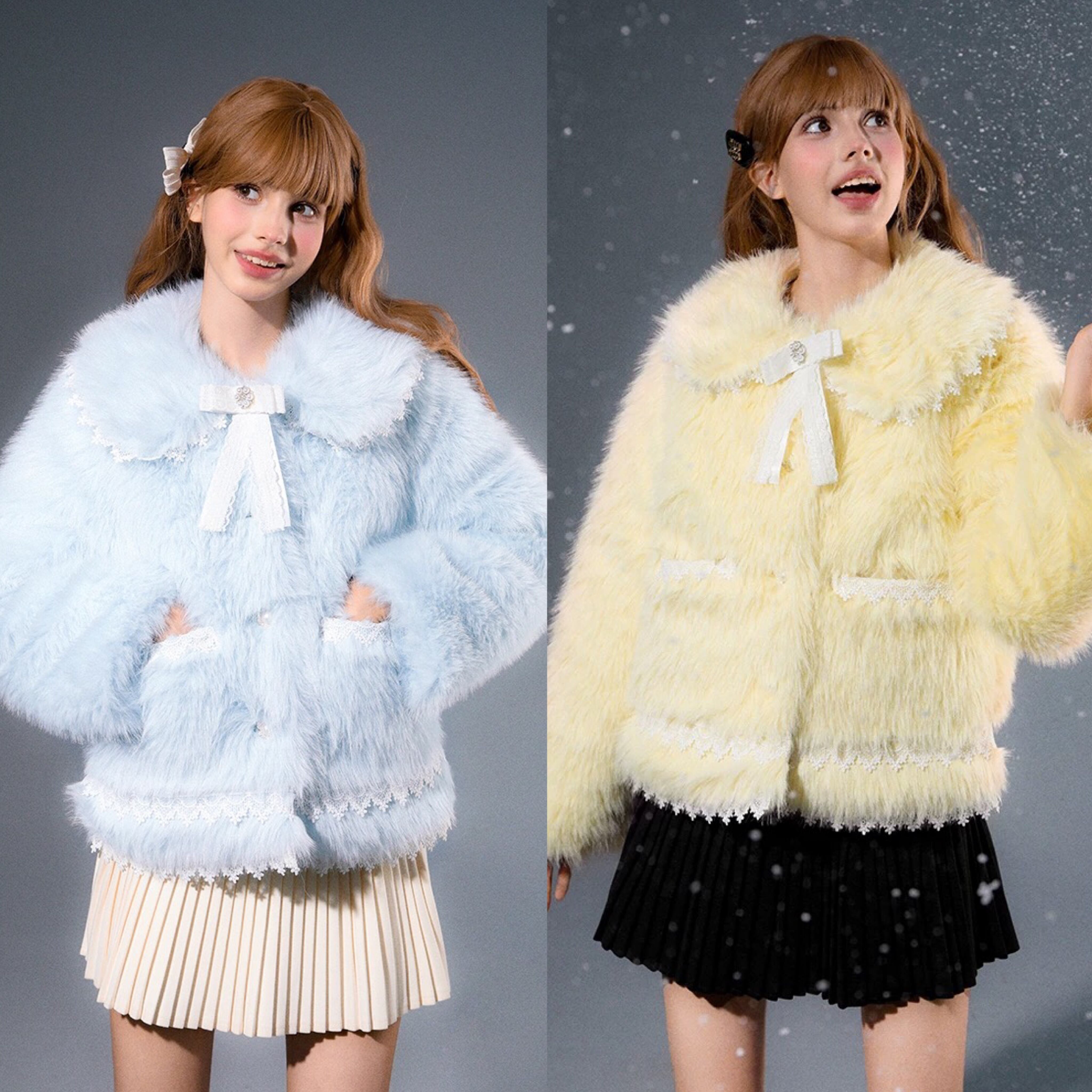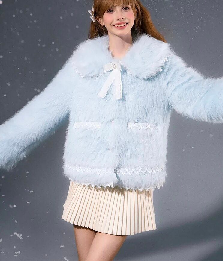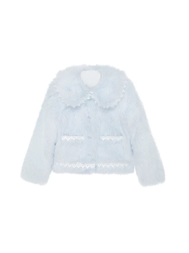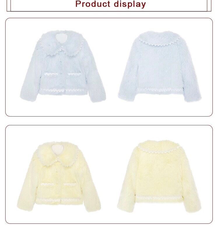 ジャケット アウター 黄色 水色 丸襟 ガーリー コート ファー
