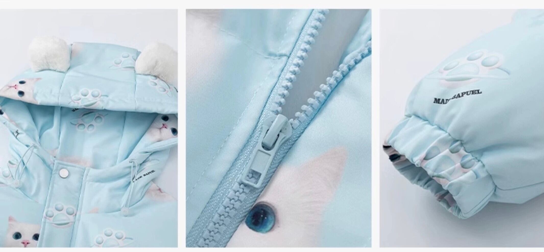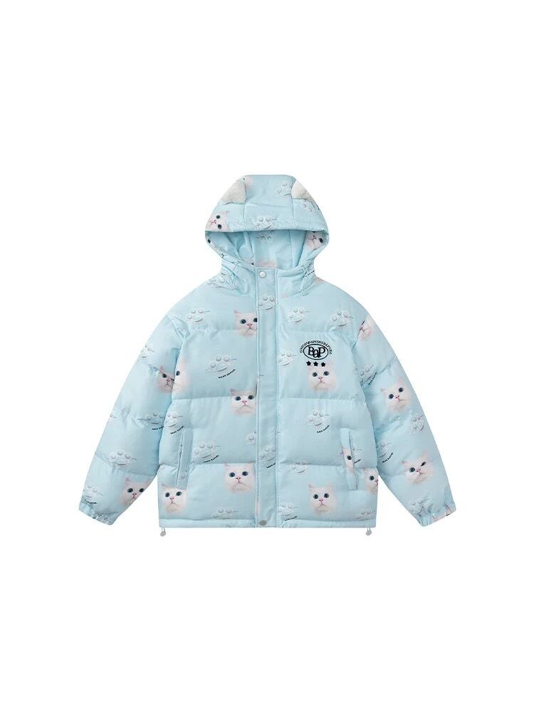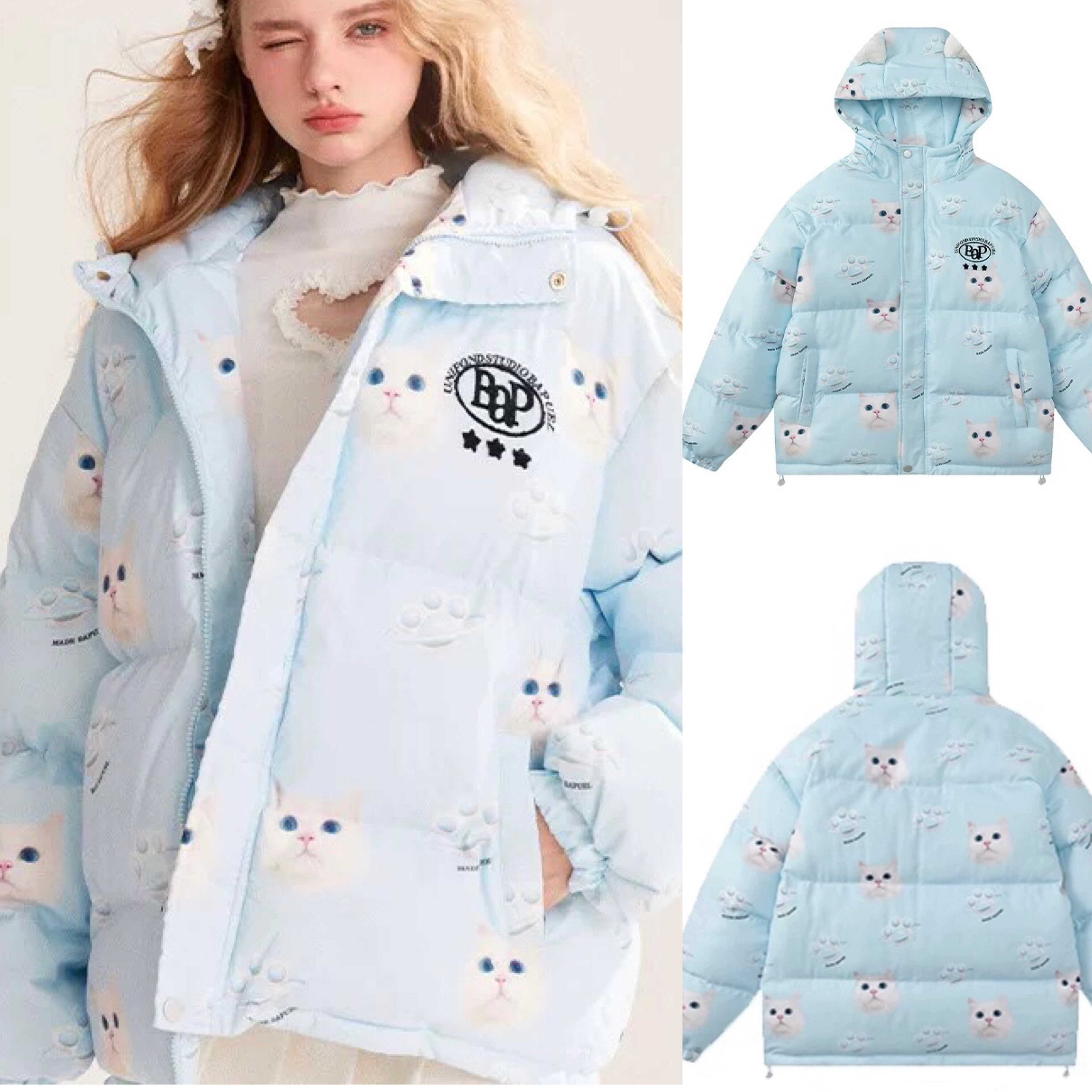 ダウン アウター ジャケット 水色 XL コート ねこ パーカー