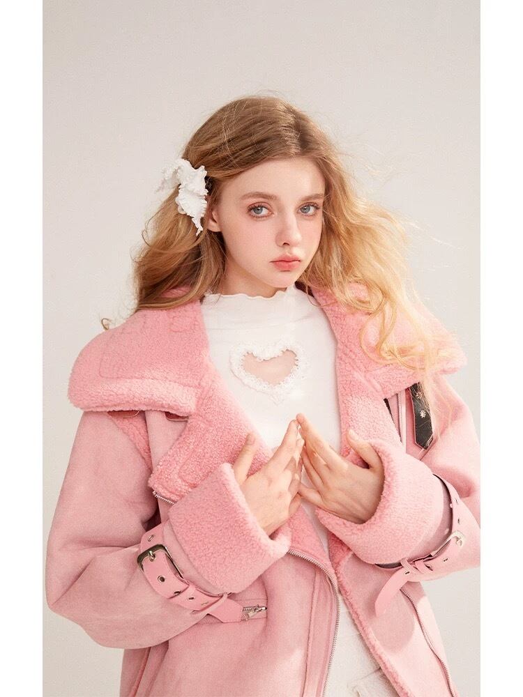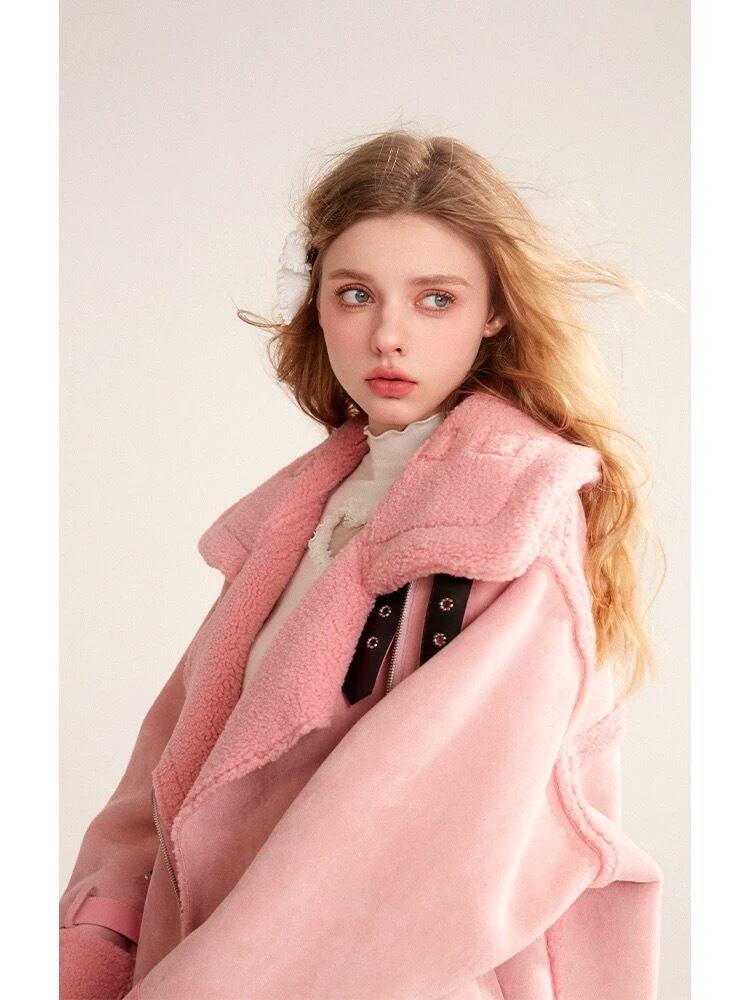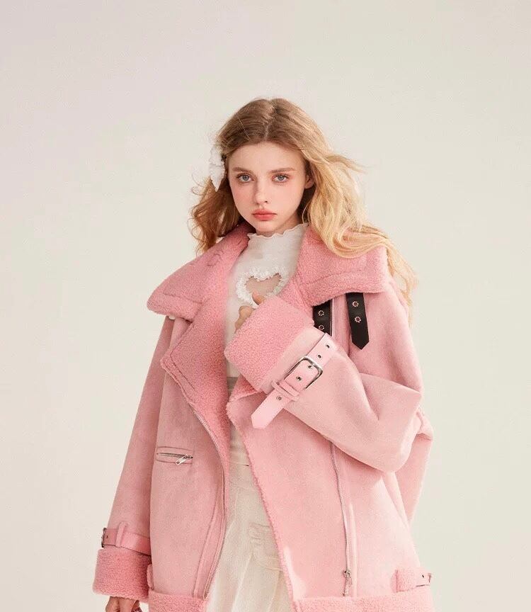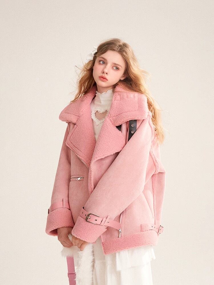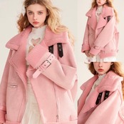 ピンク アウター コート ファー ムートン ガーリー
