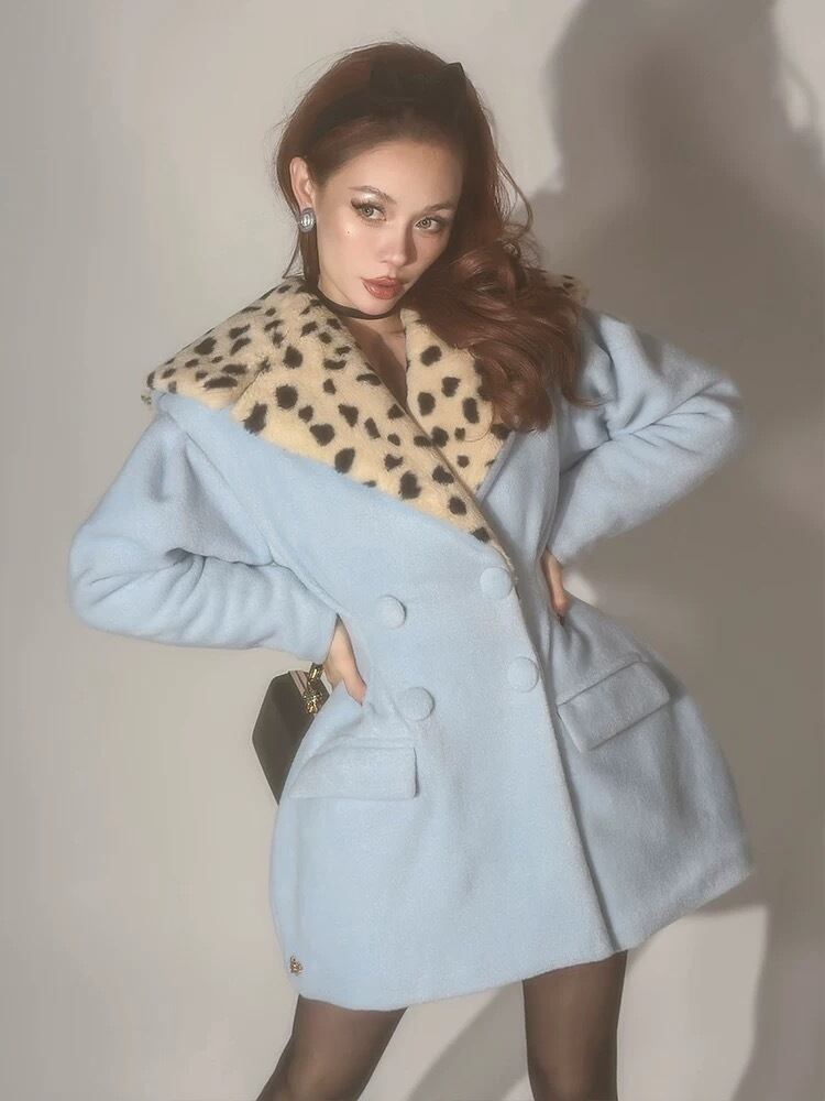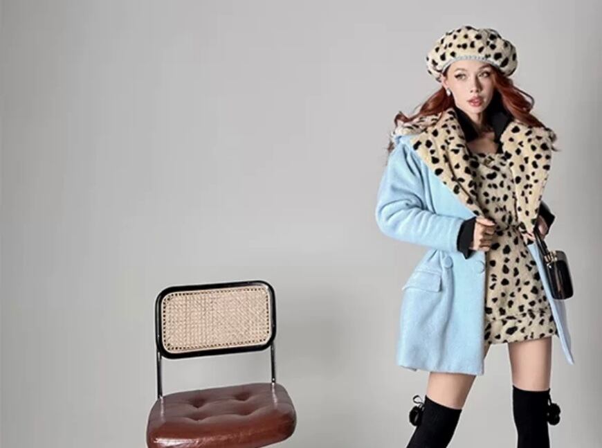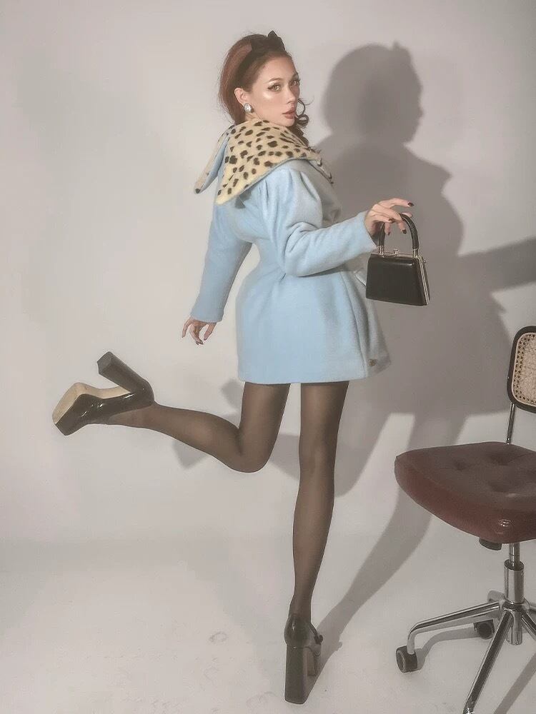 コート 水色 レオパード ヒョウ柄 ベージュ ワンピース