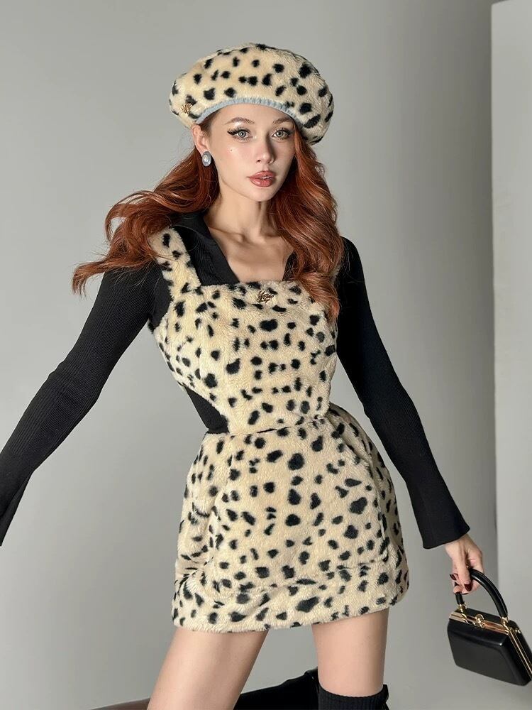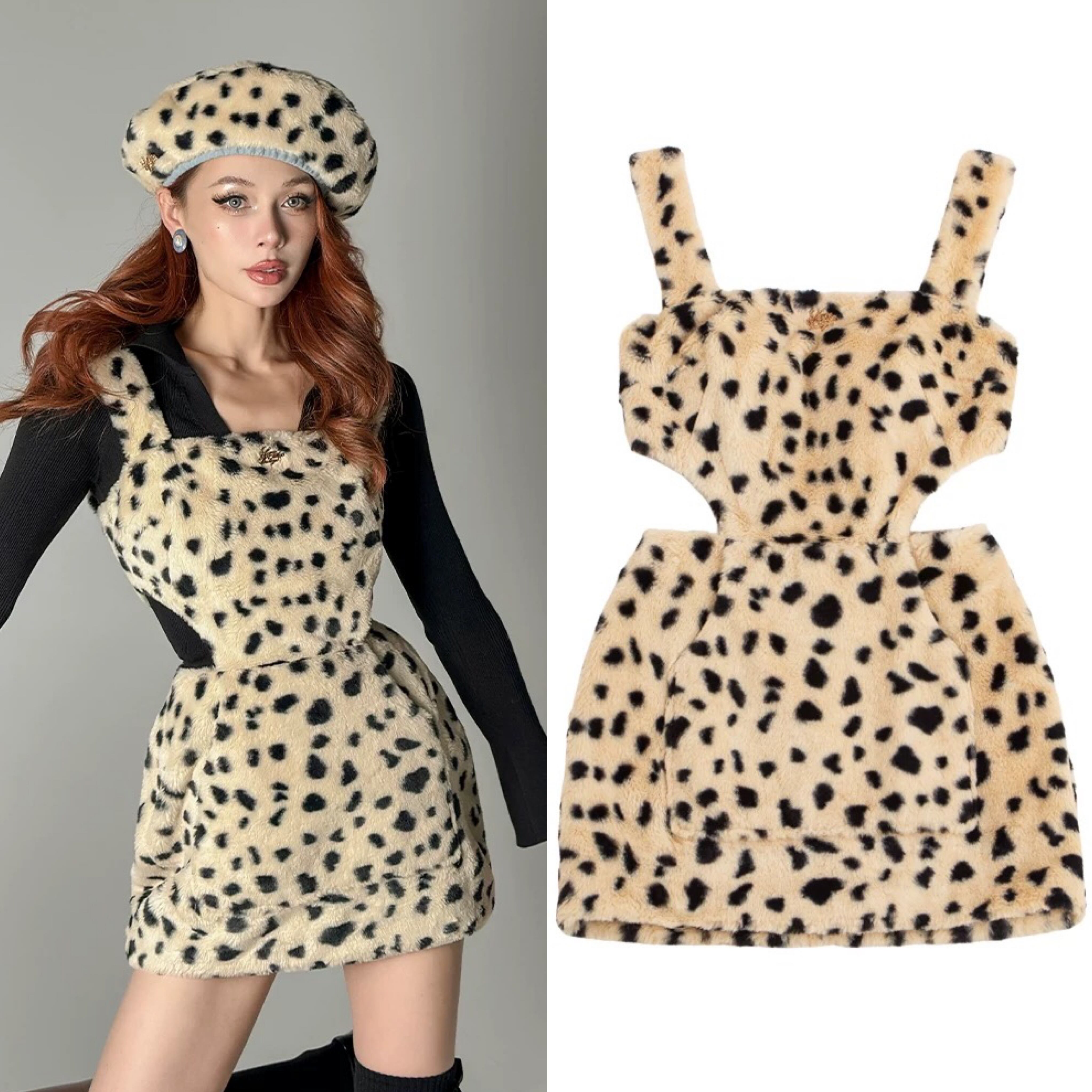レオパード ファー フリース ワンピース ヒョウ柄 ベージュ