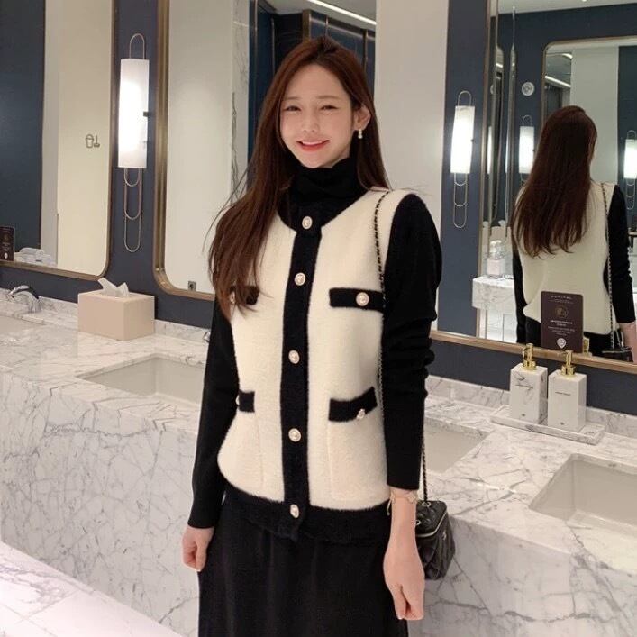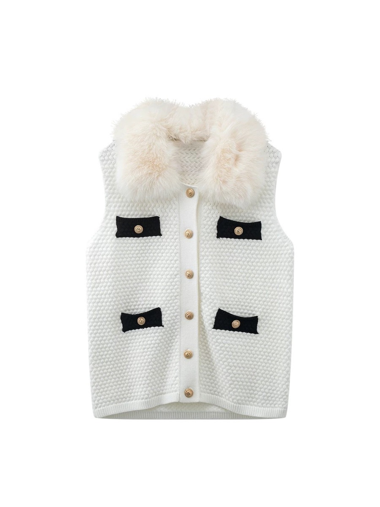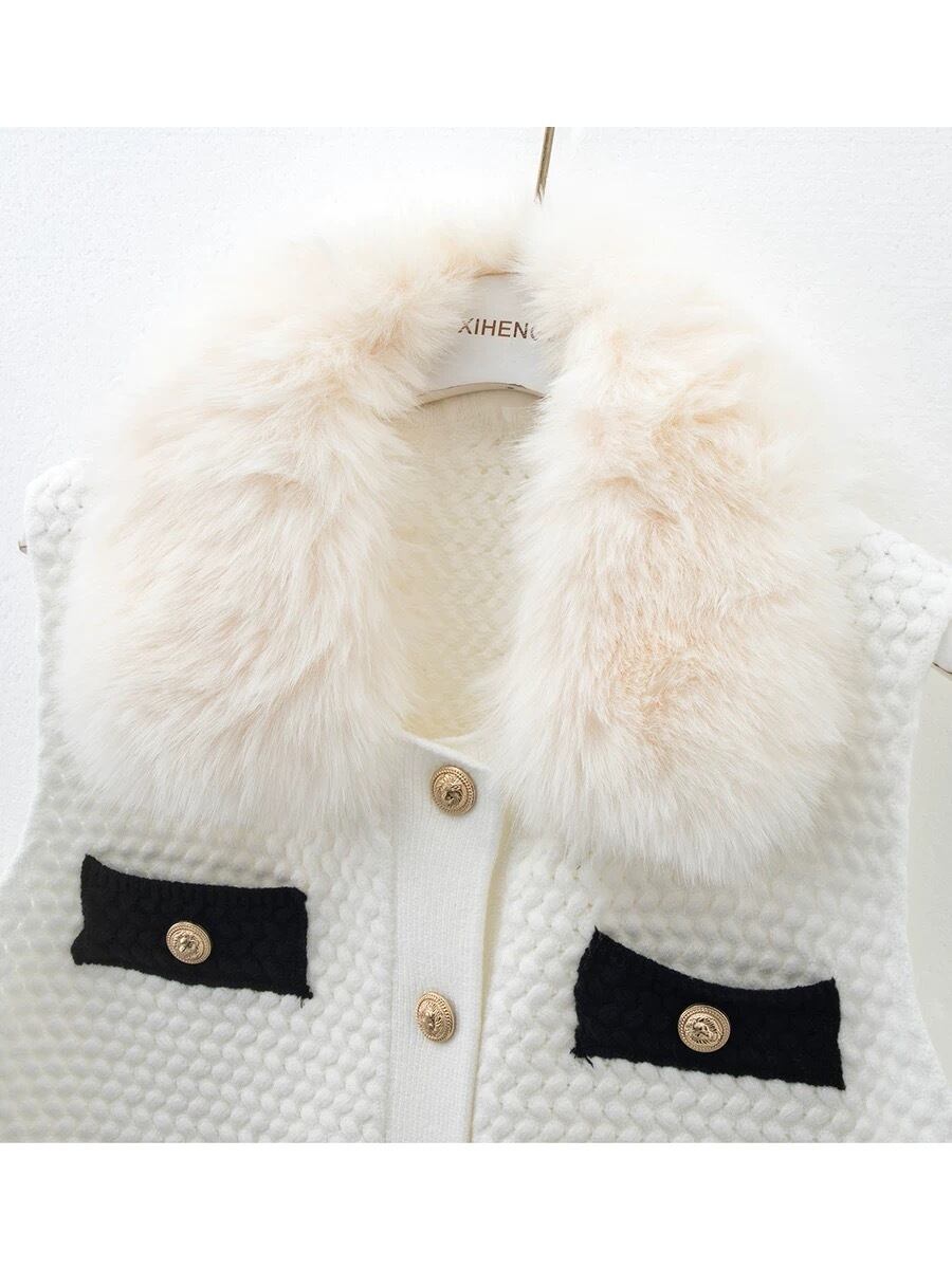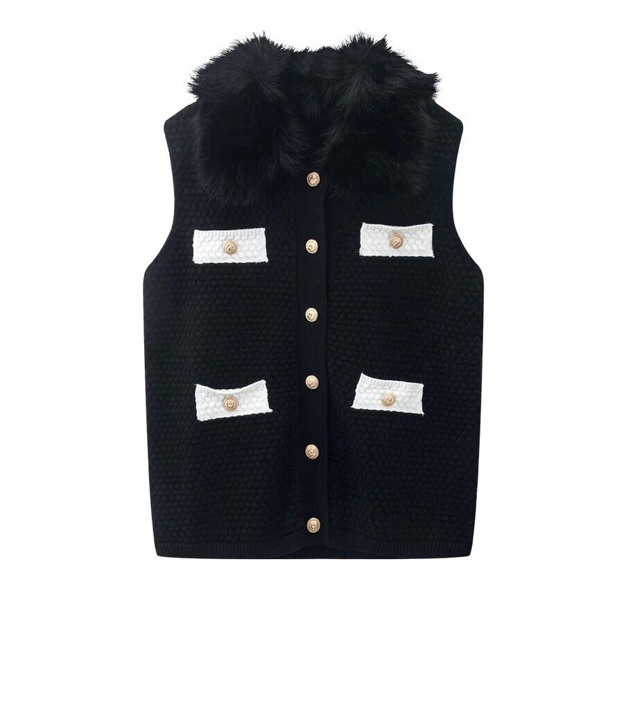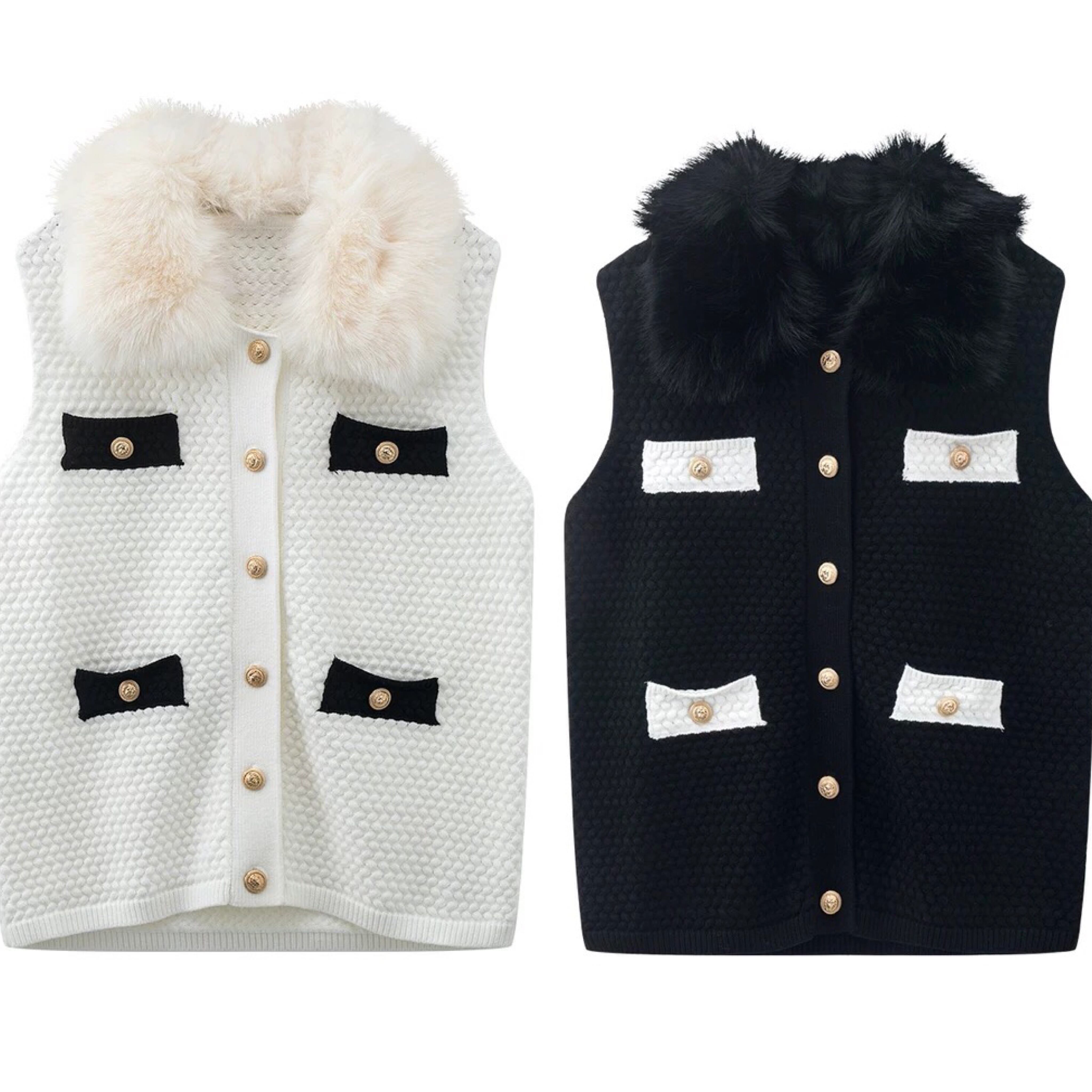 ベスト カーディガン 白 黒 ファー エレガント ガーリー