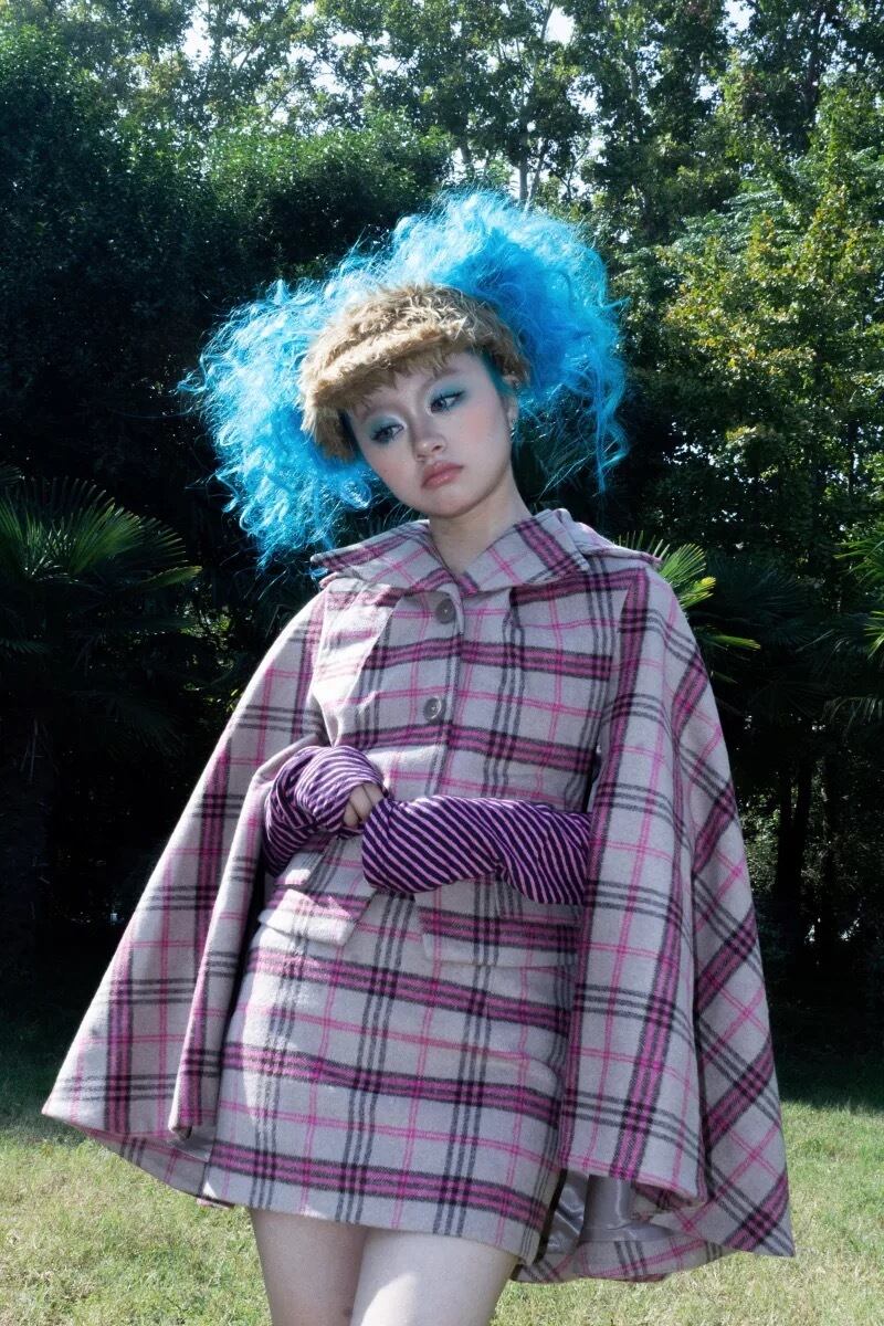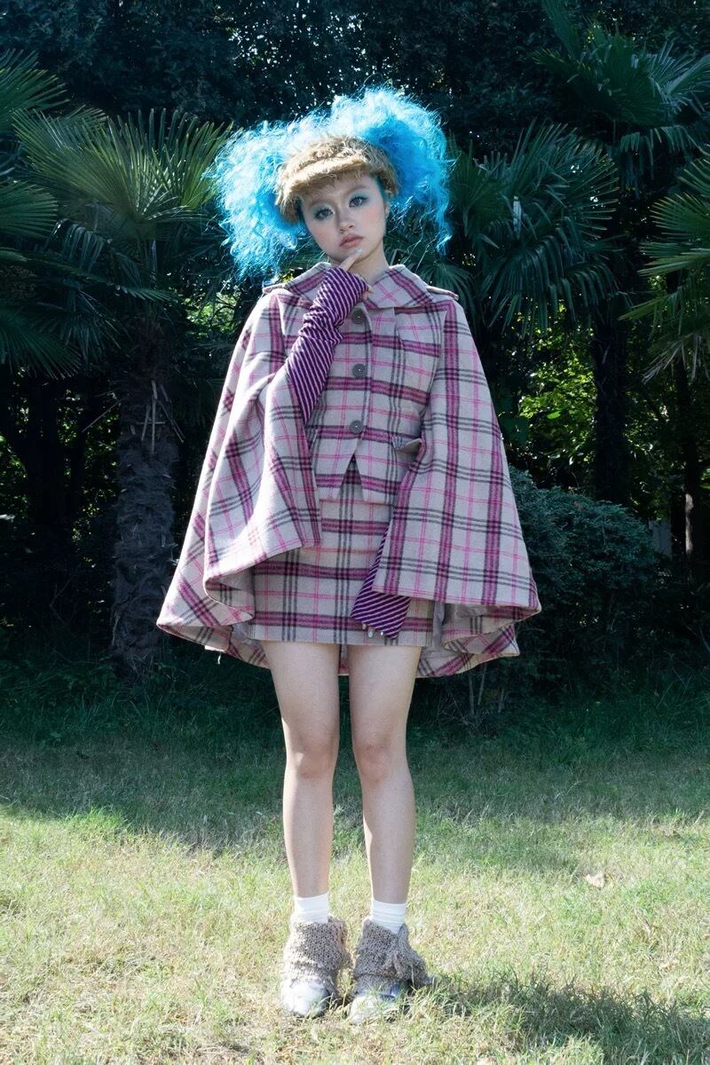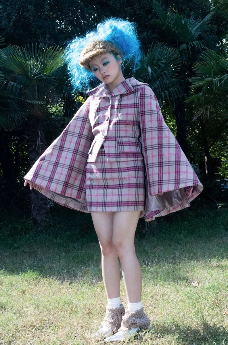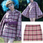 【スカート】ミニスカート ボトムス チェック セットアップ タイト 紫 ピンク