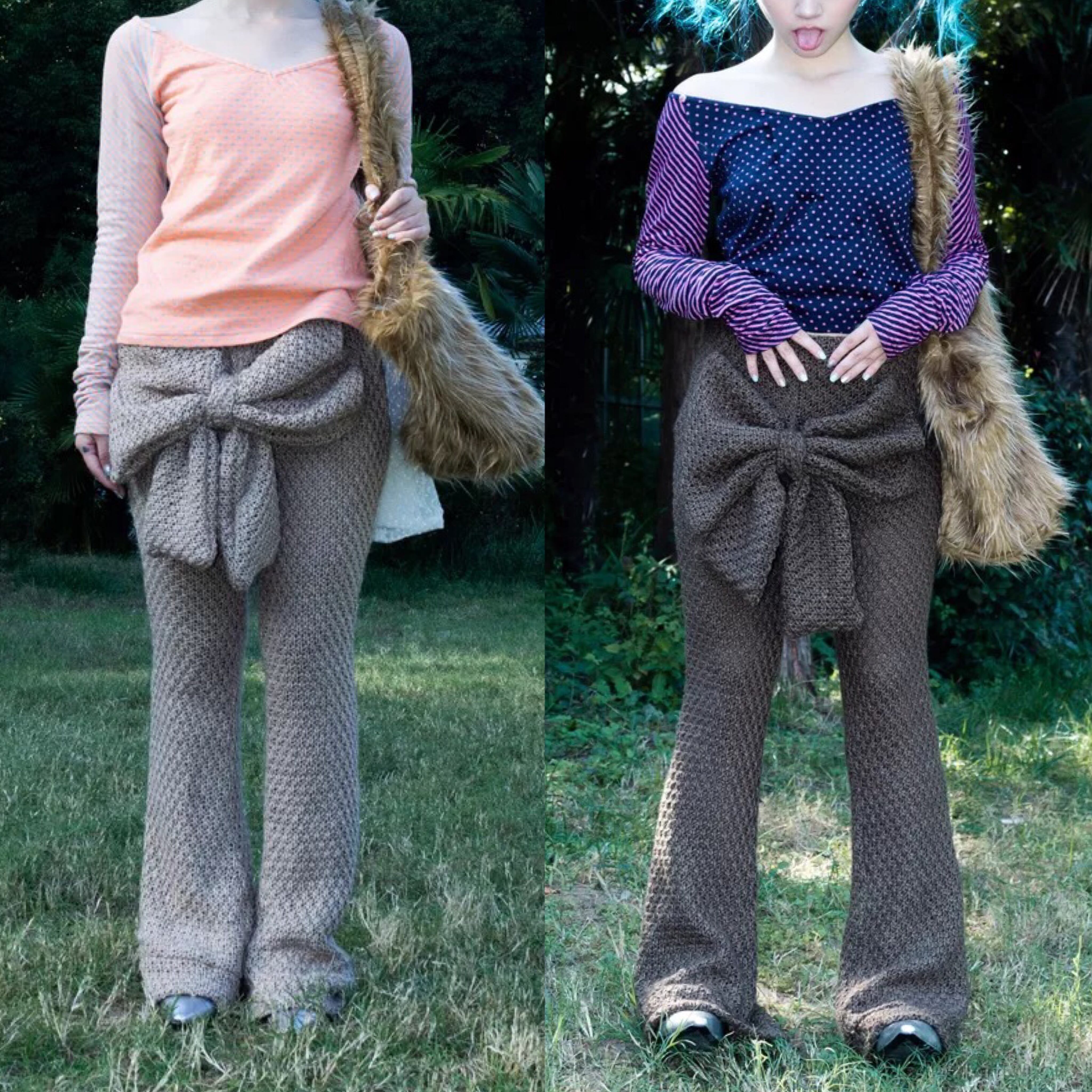 【ボトムス】茶色 ベージュ パンツ リボン カジュアル スウェット