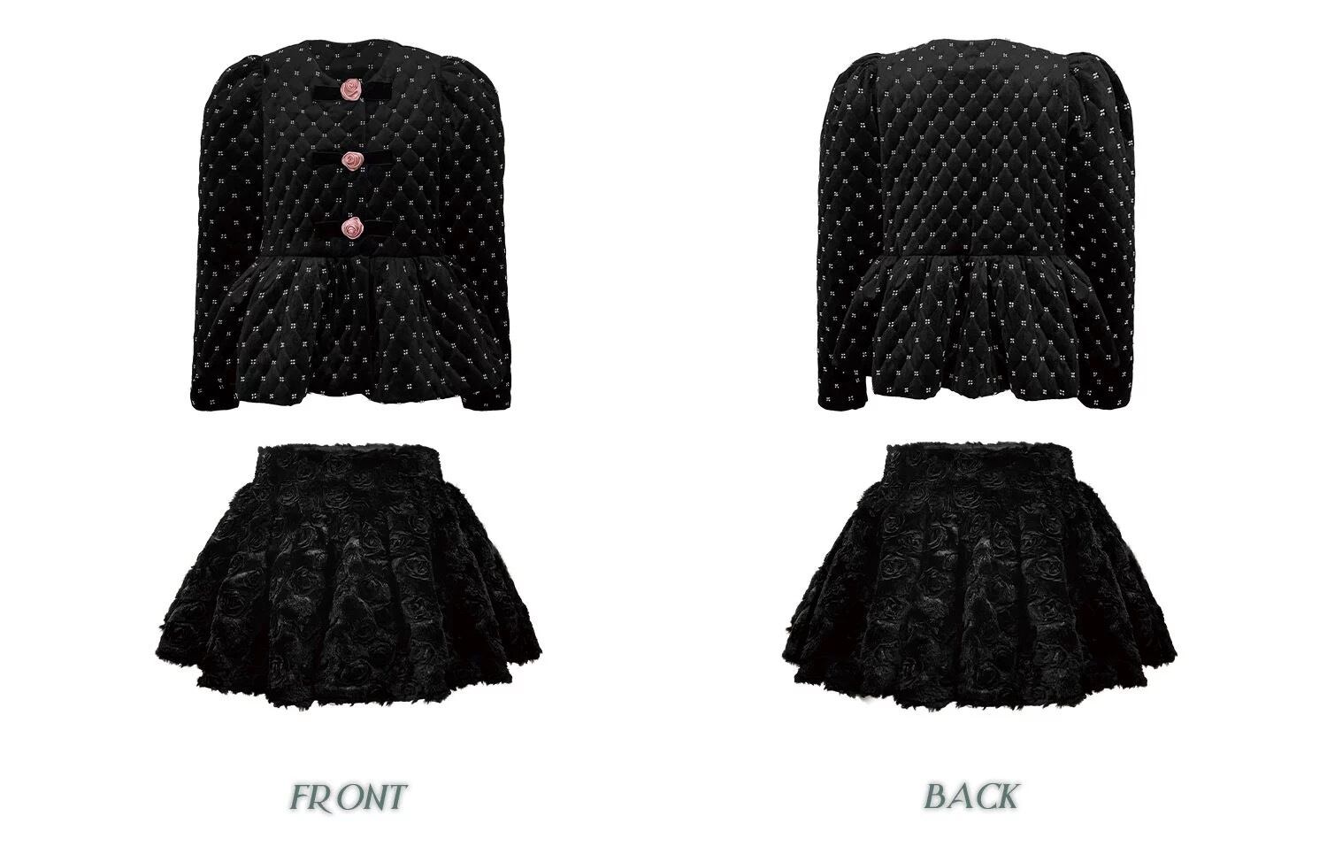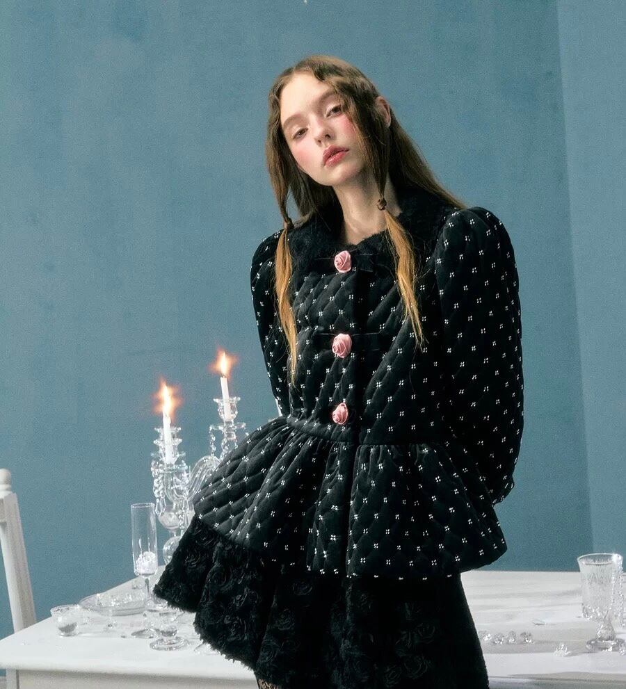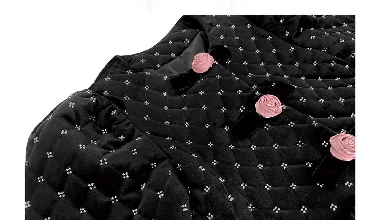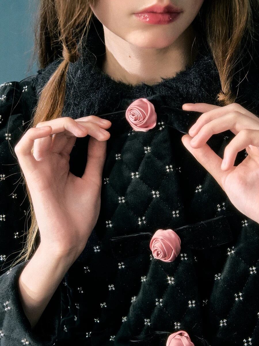 エレガント アウター コート ジャケット 黒 カメリア 薔薇