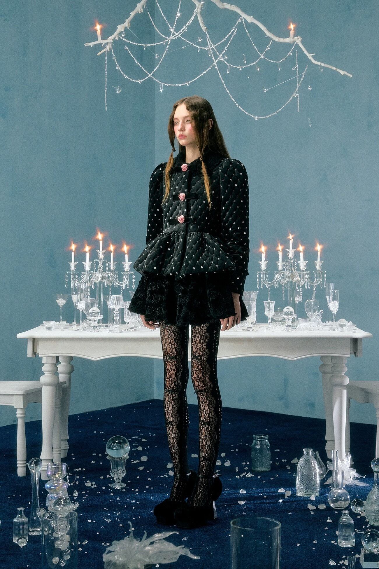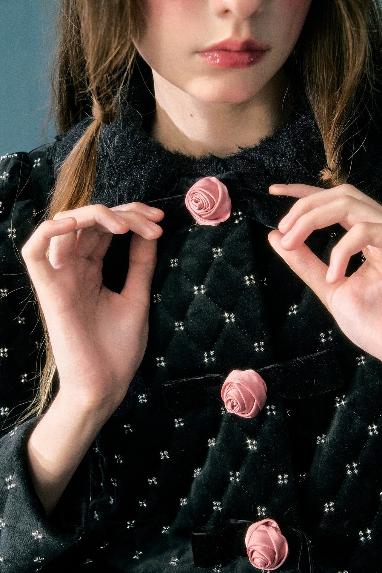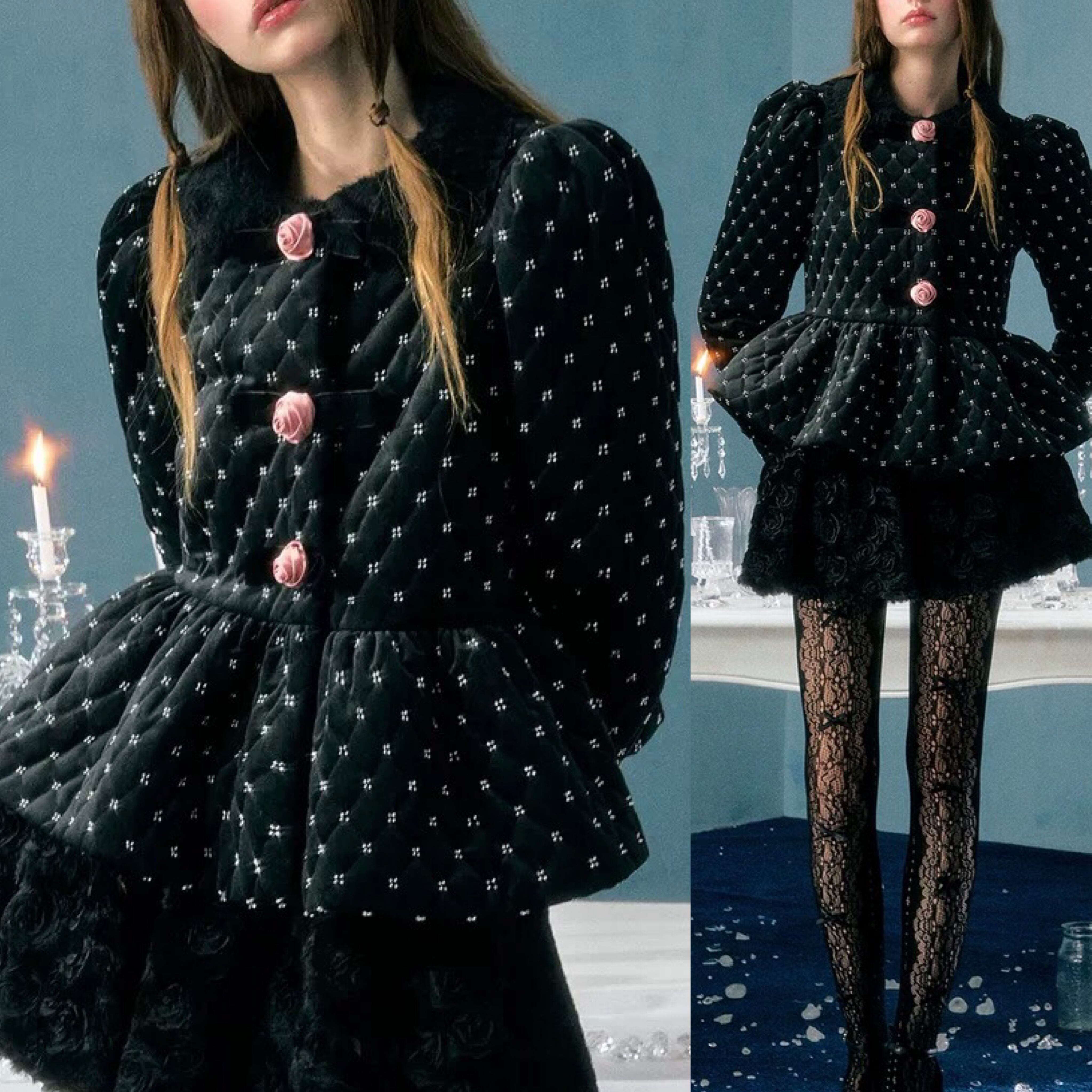 エレガント アウター コート ジャケット 黒 カメリア 薔薇
