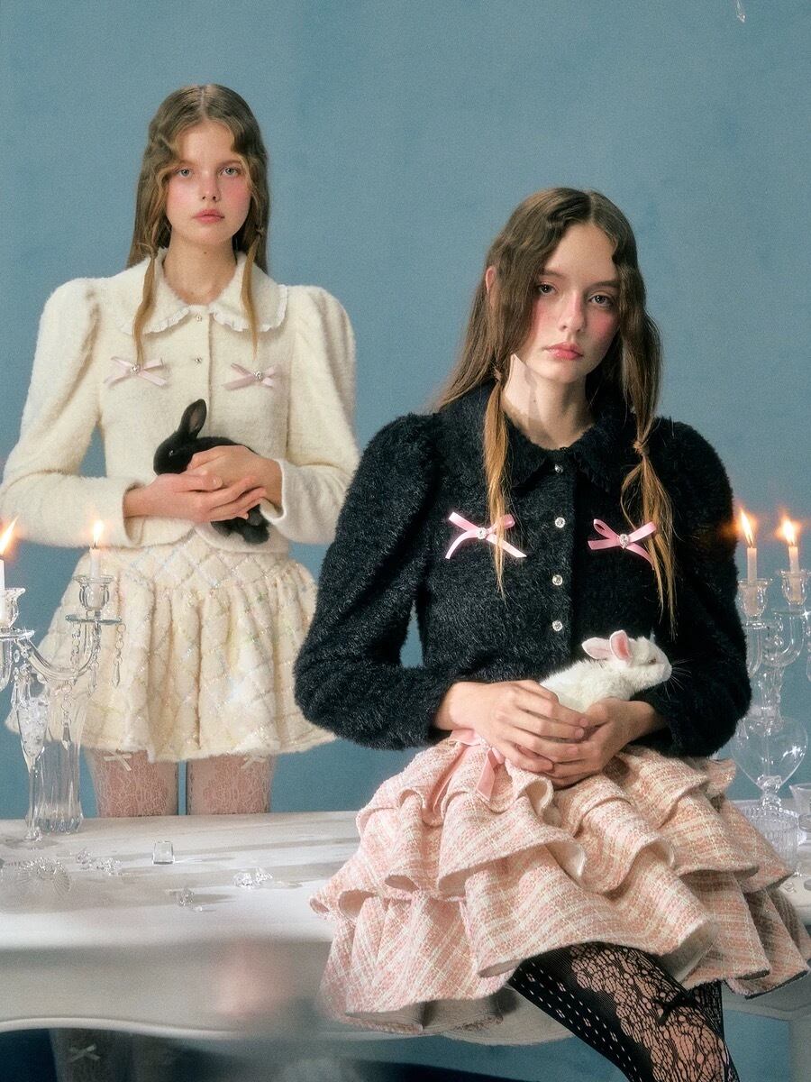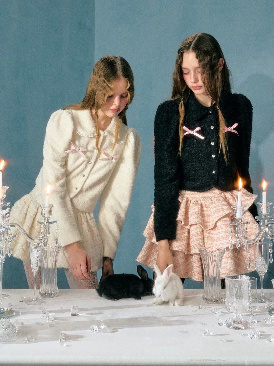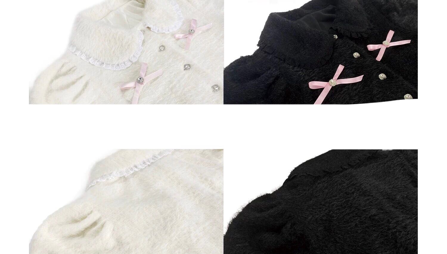 カーディガン 黒 白 ピンク リボン ガーリー アウター