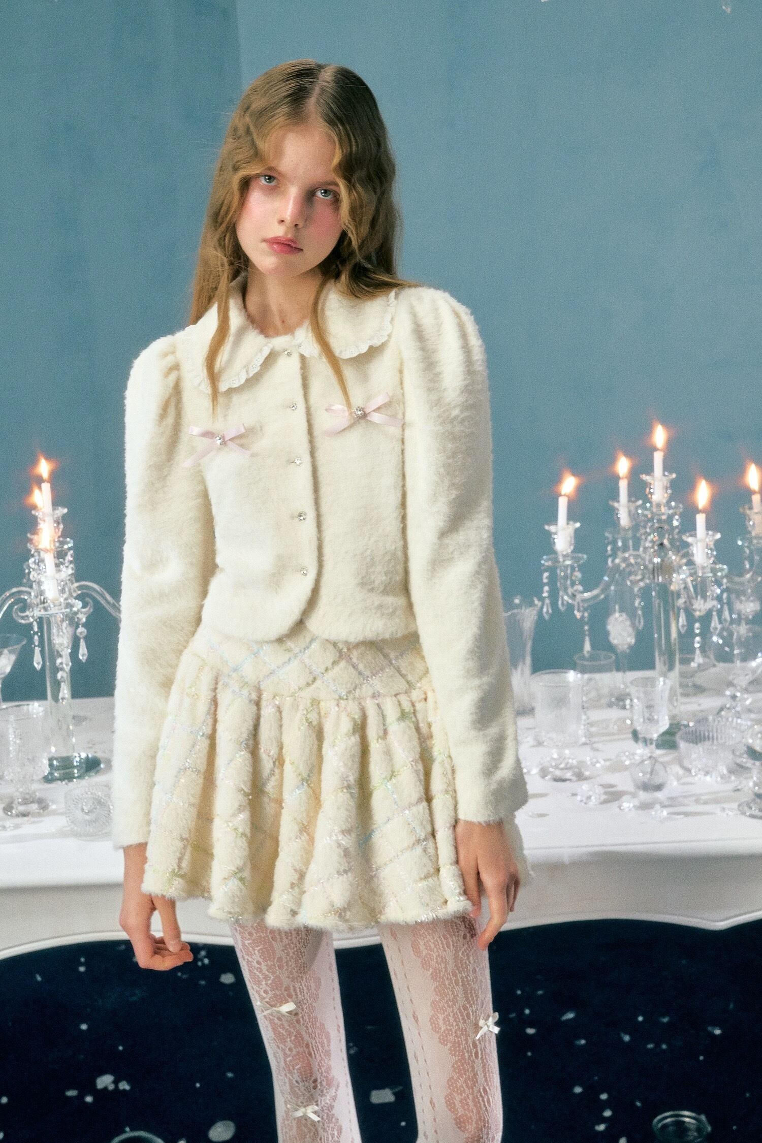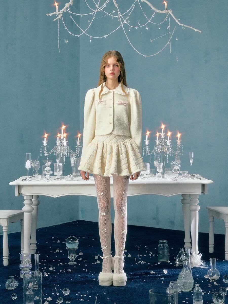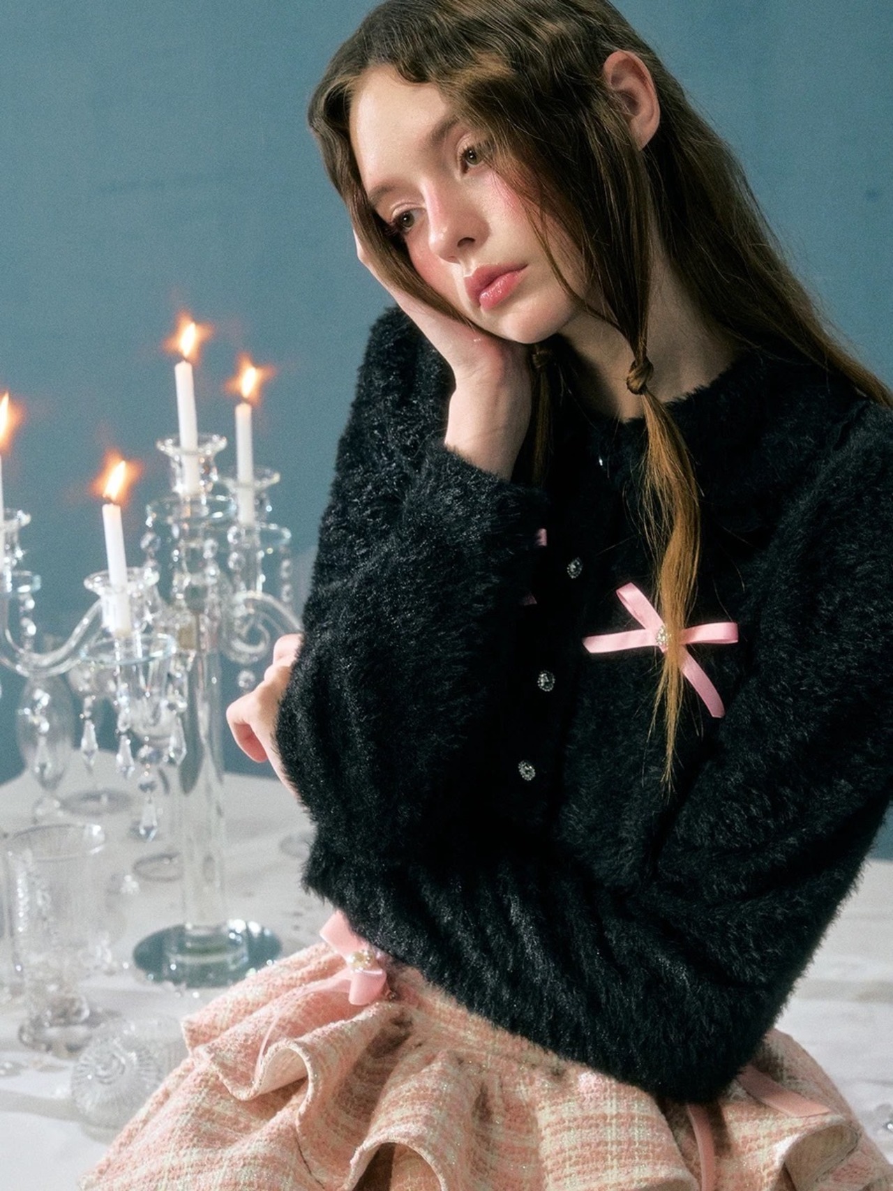 カーディガン 黒 白 ピンク リボン ガーリー アウター