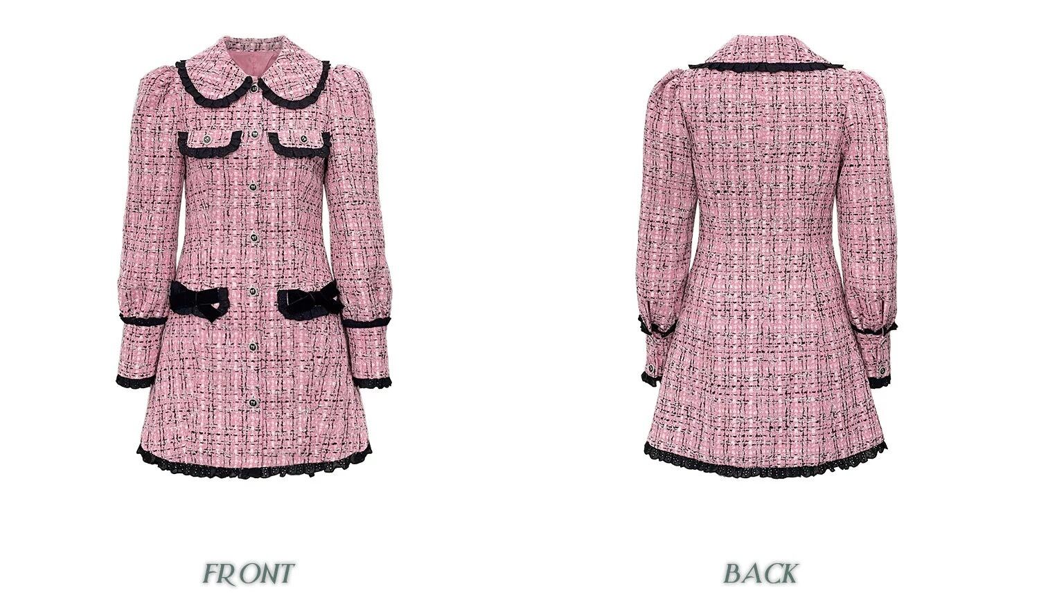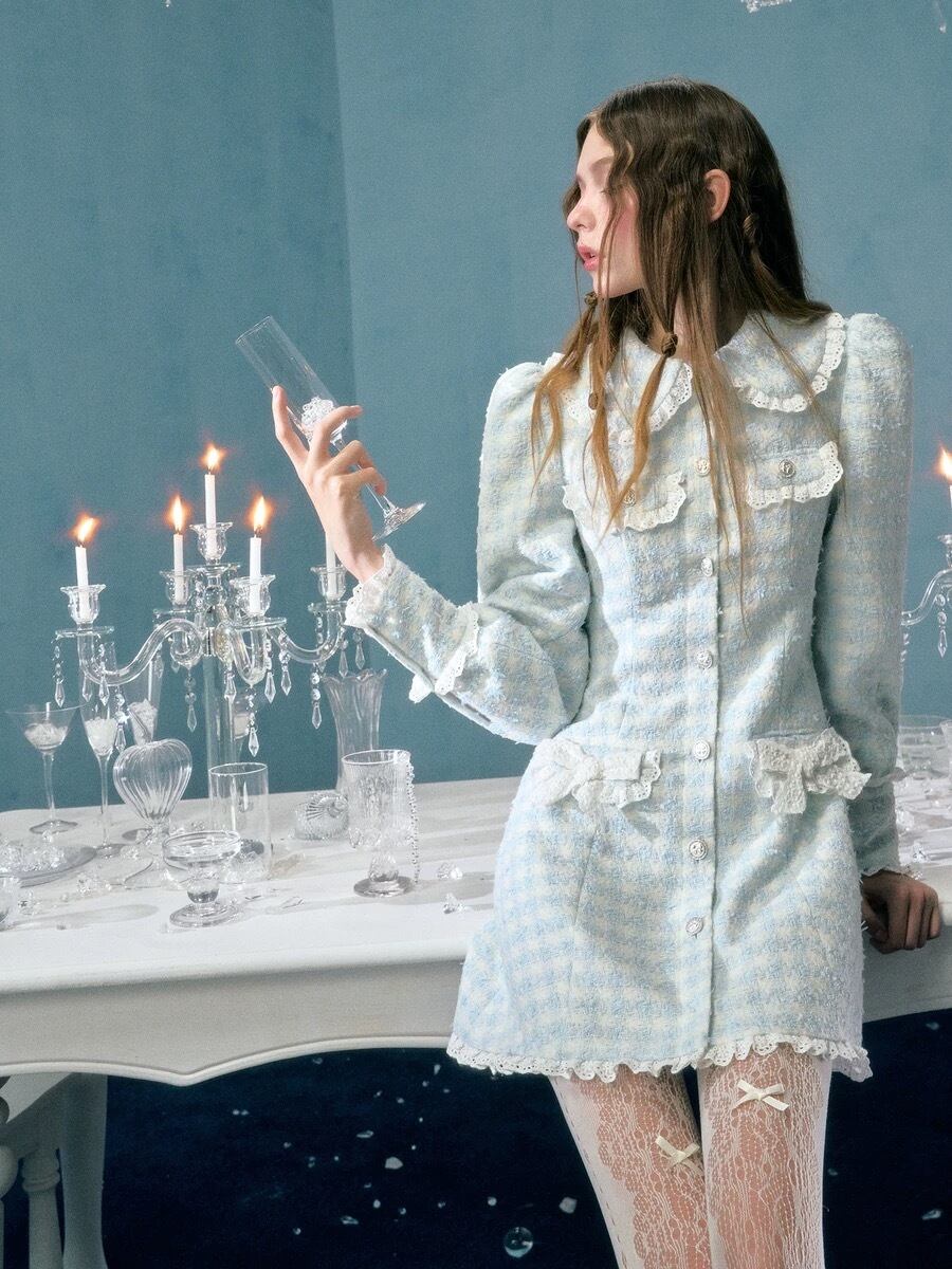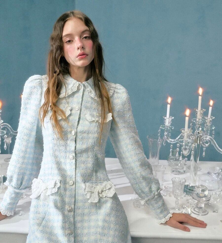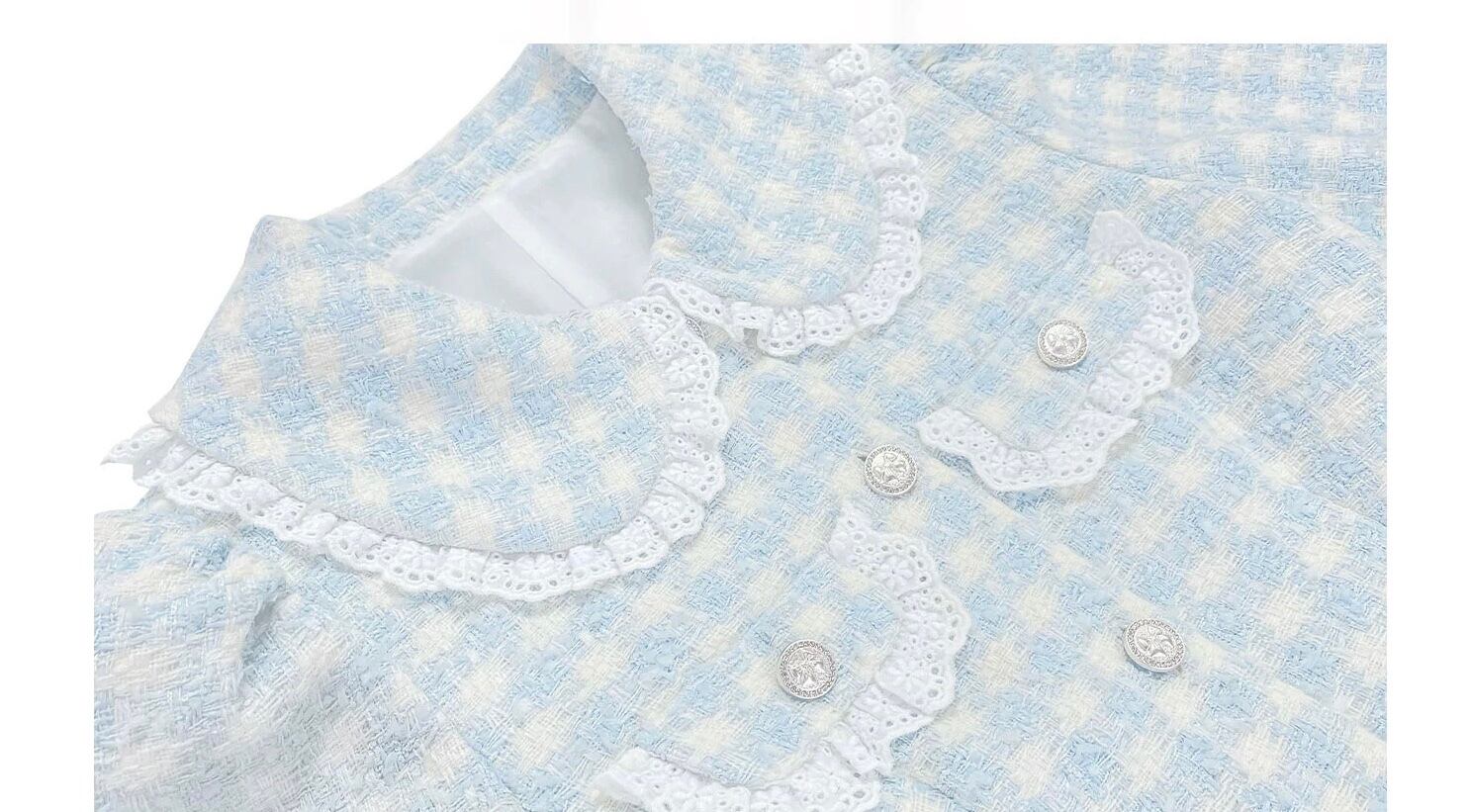 ワンピース チェック ピンク 丸襟 水色 ガーリー ブラウス