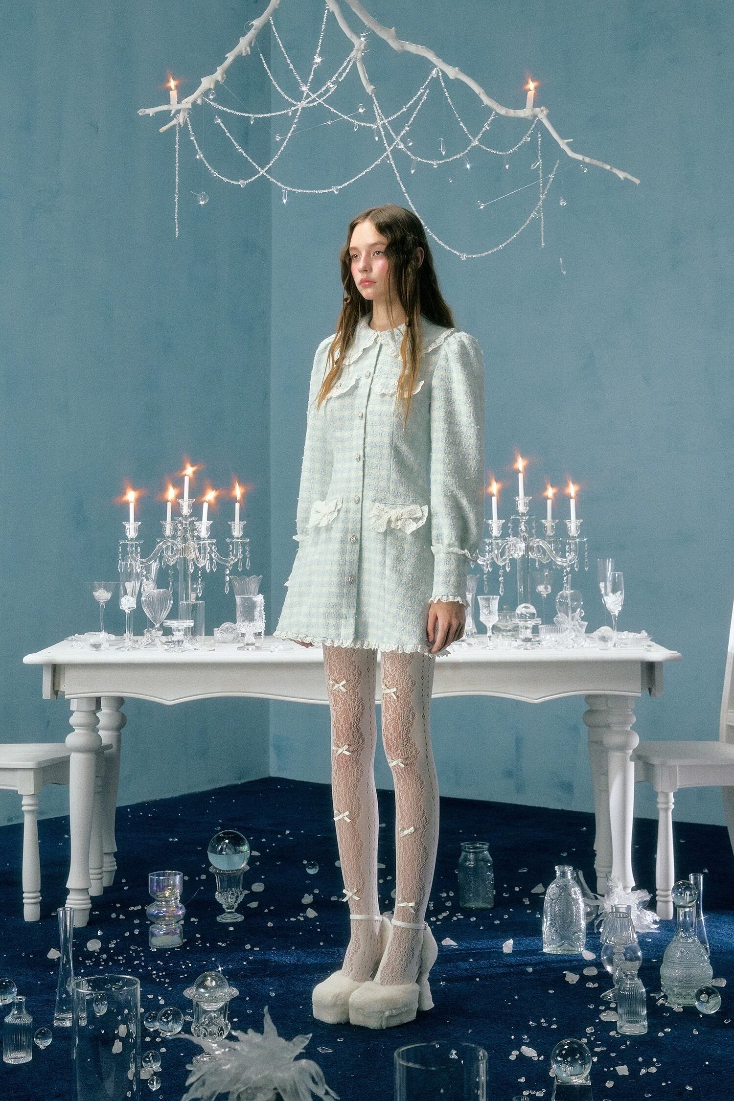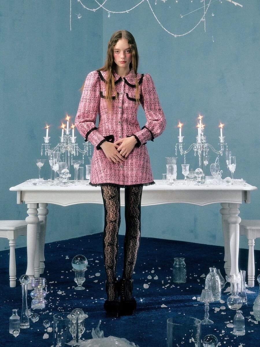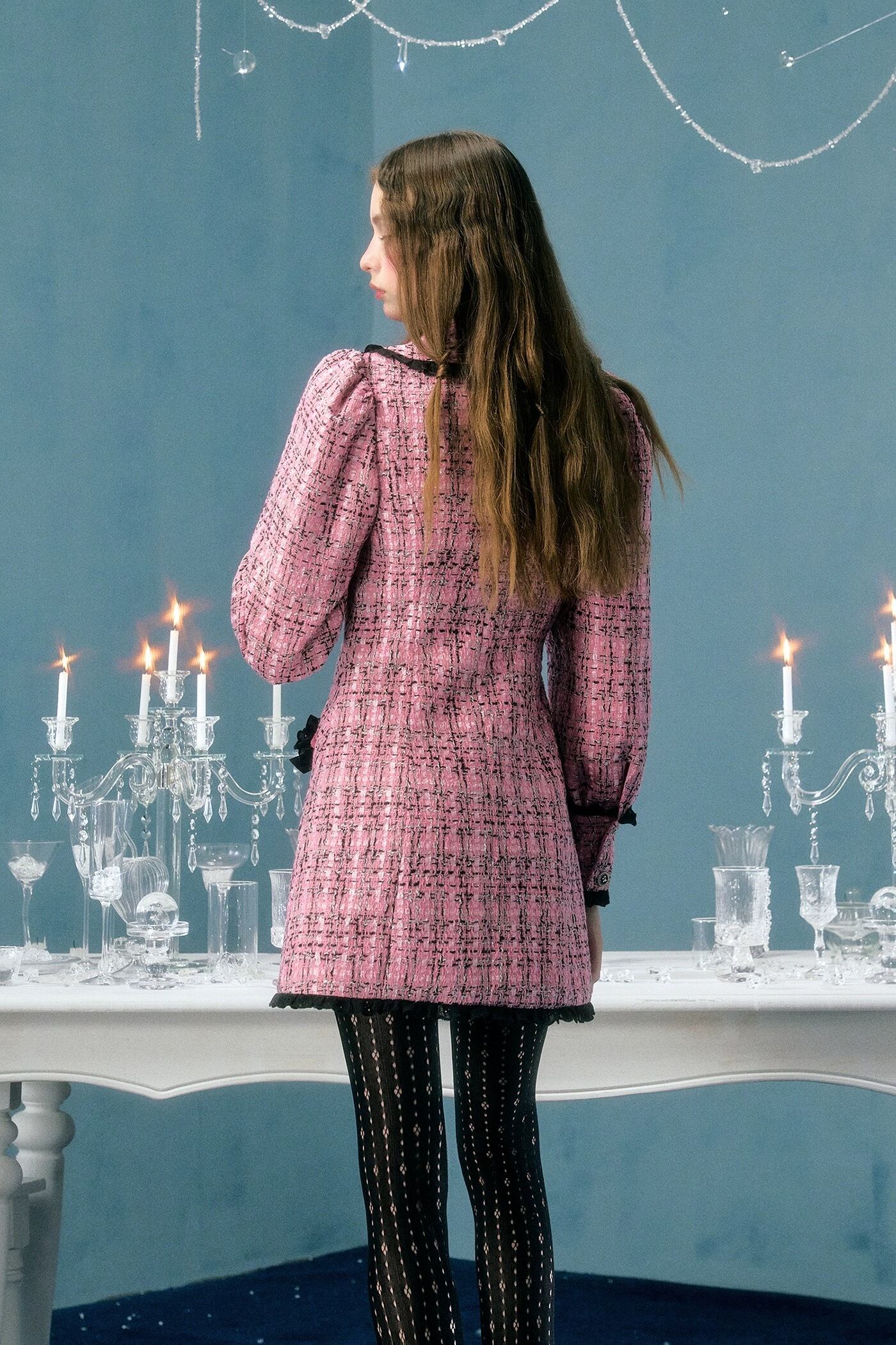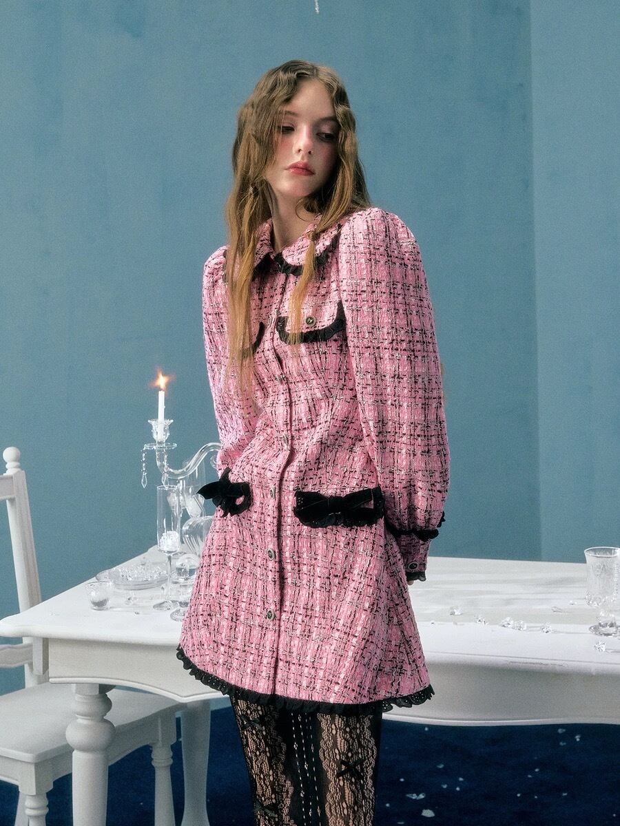 ワンピース チェック ピンク 丸襟 水色 ガーリー ブラウス