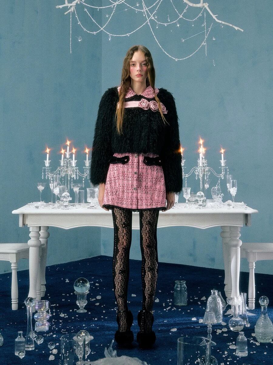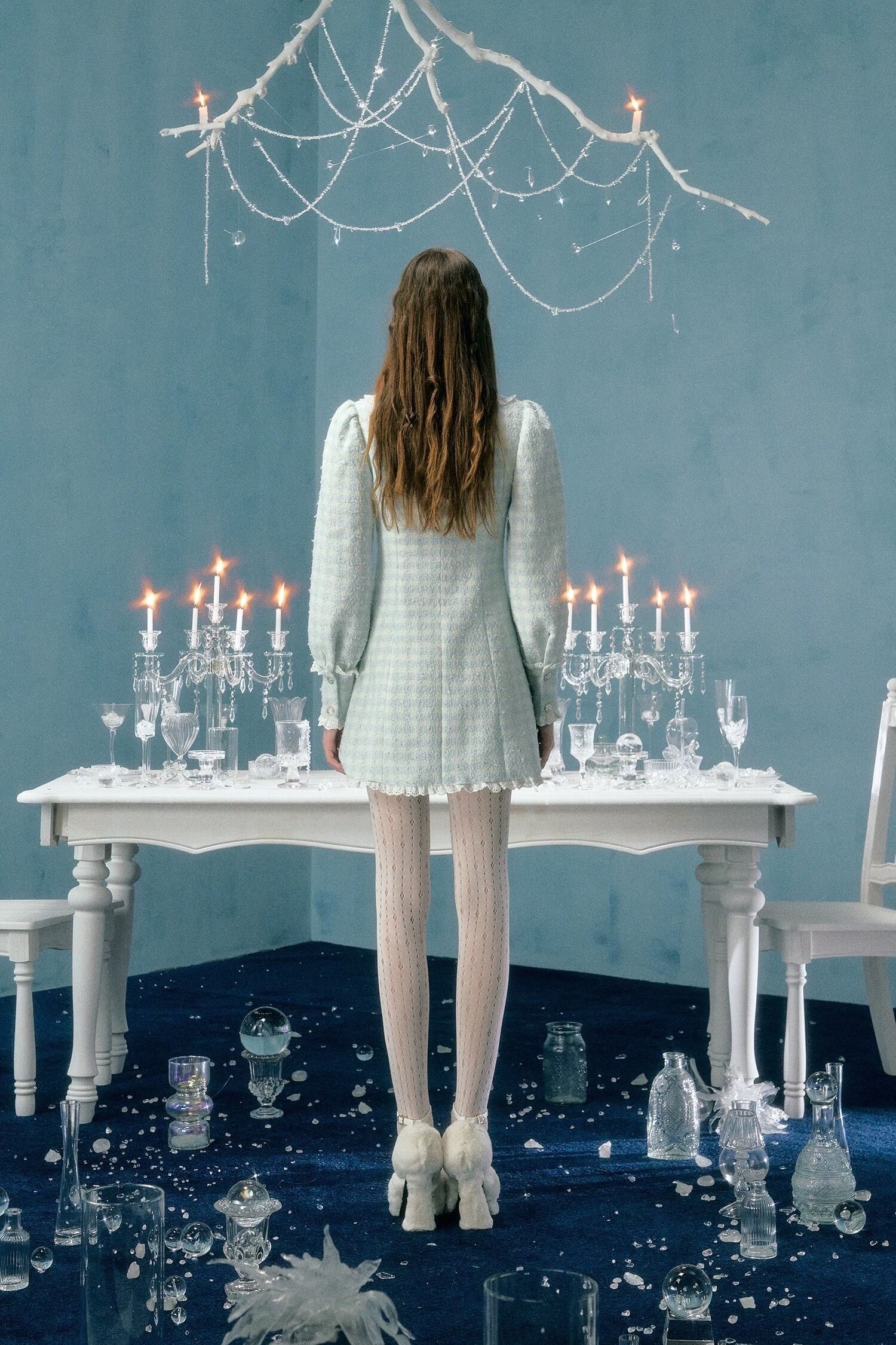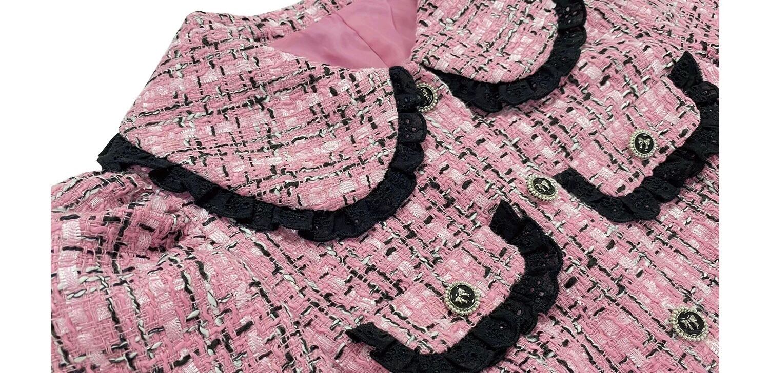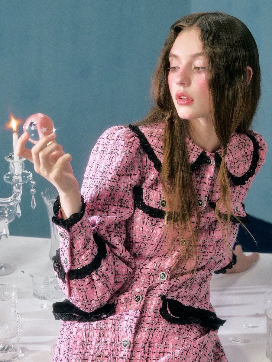 ワンピース チェック ピンク 丸襟 水色 ガーリー ブラウス
