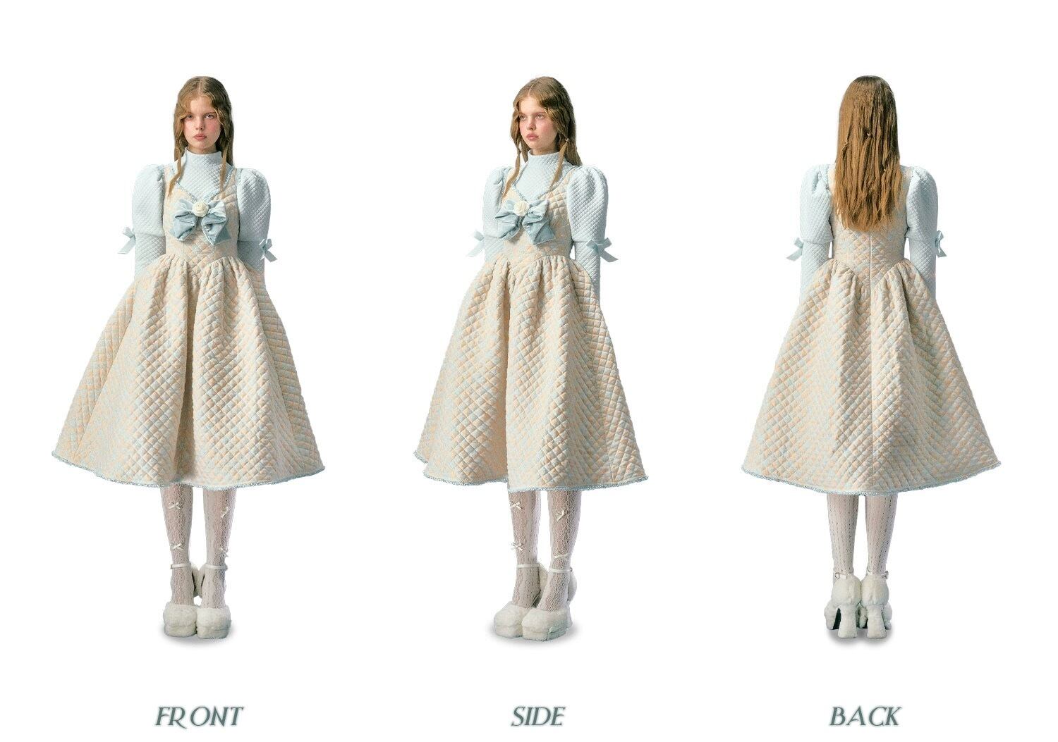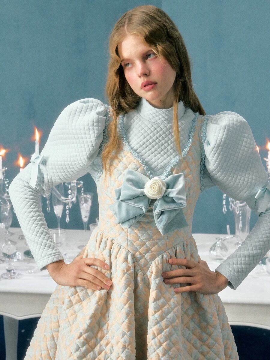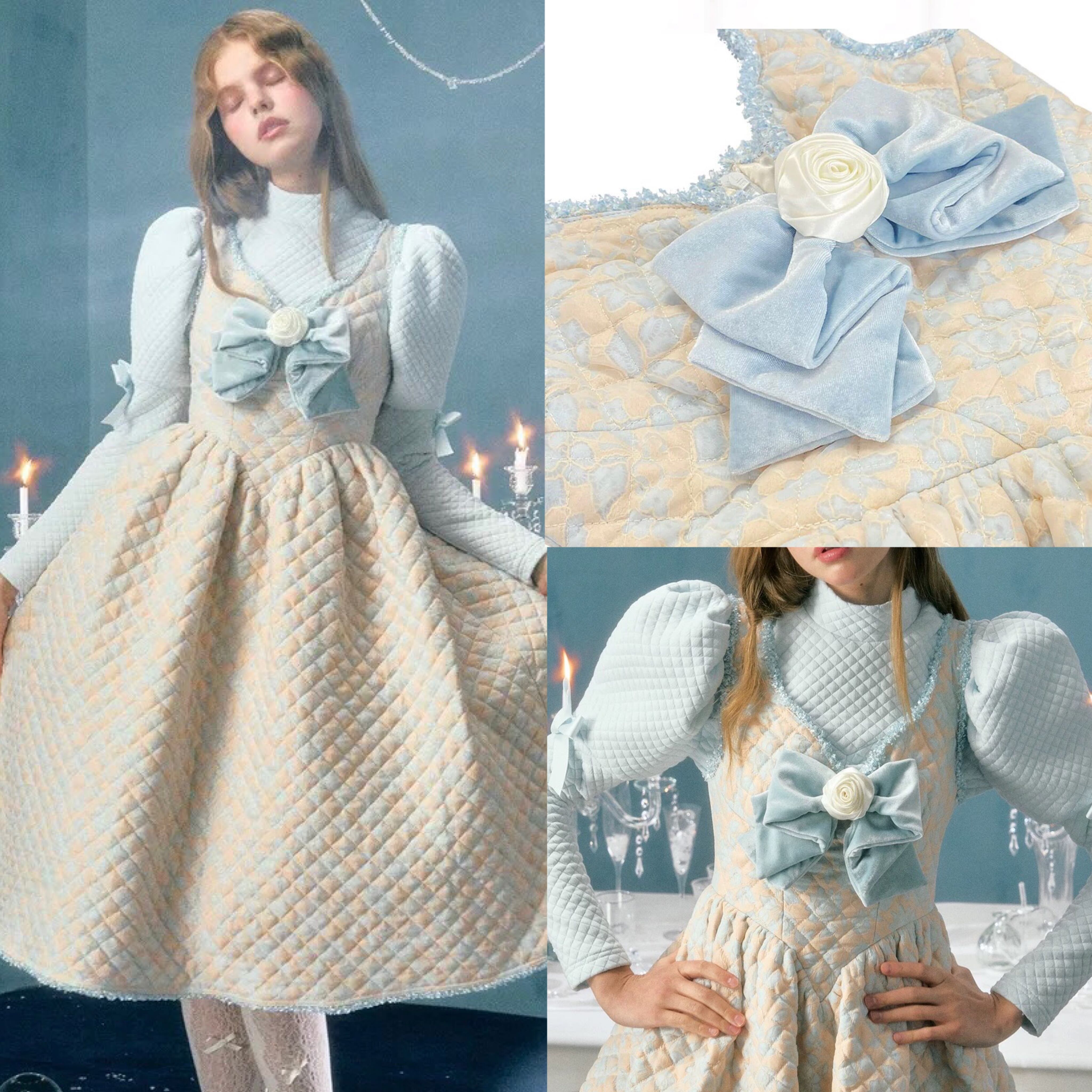 【水色】リボン カメリア ワンピース ガーリー ドレス リボン