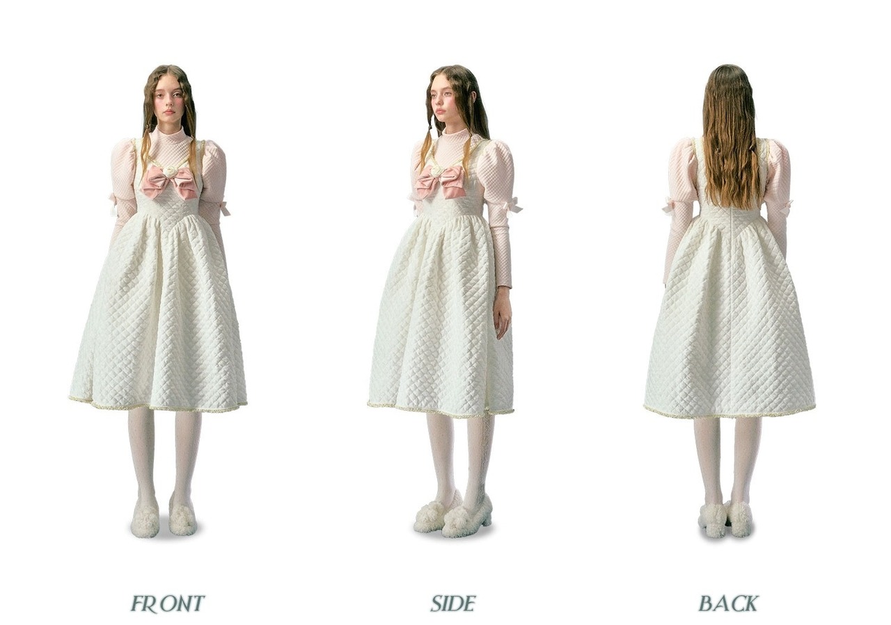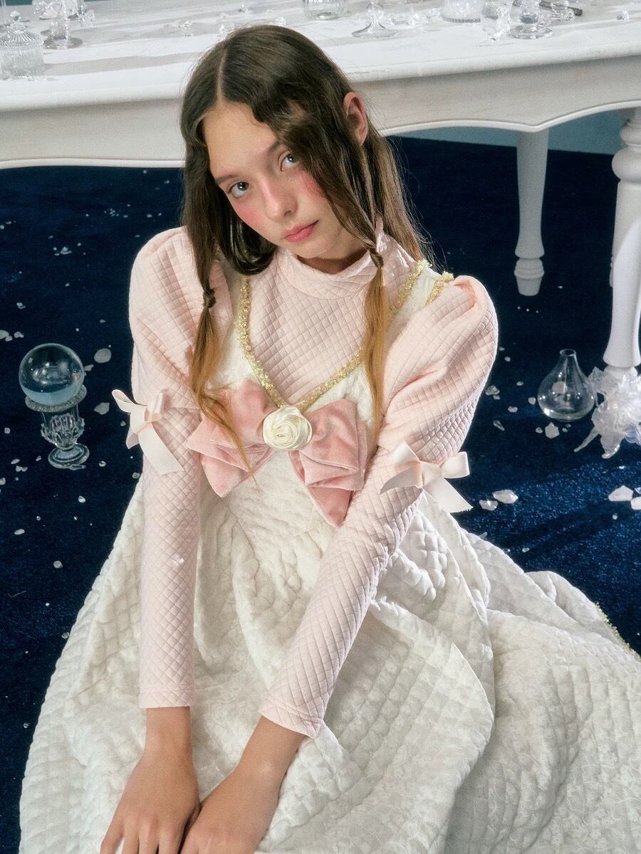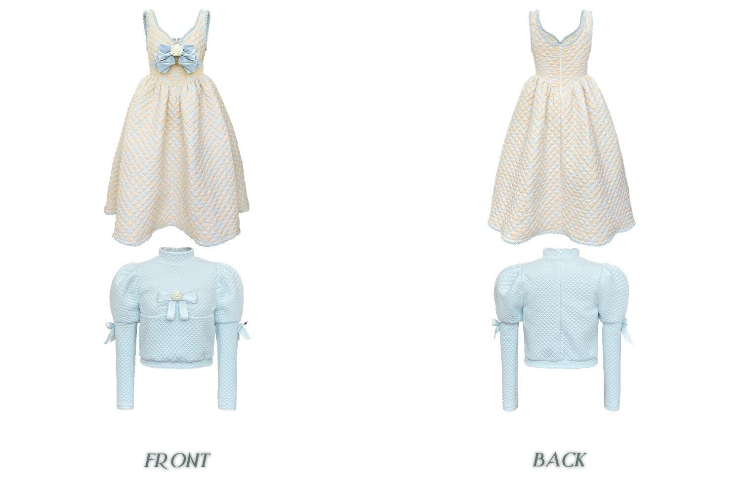 【水色】リボン カメリア ワンピース ガーリー ドレス リボン