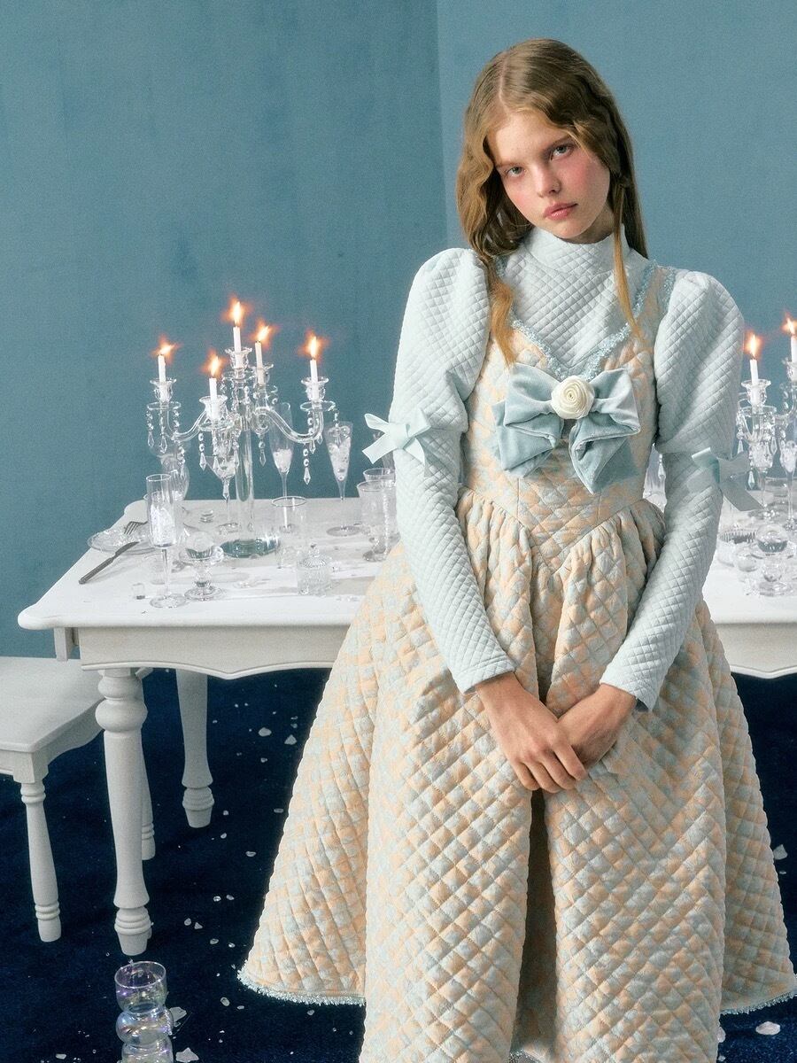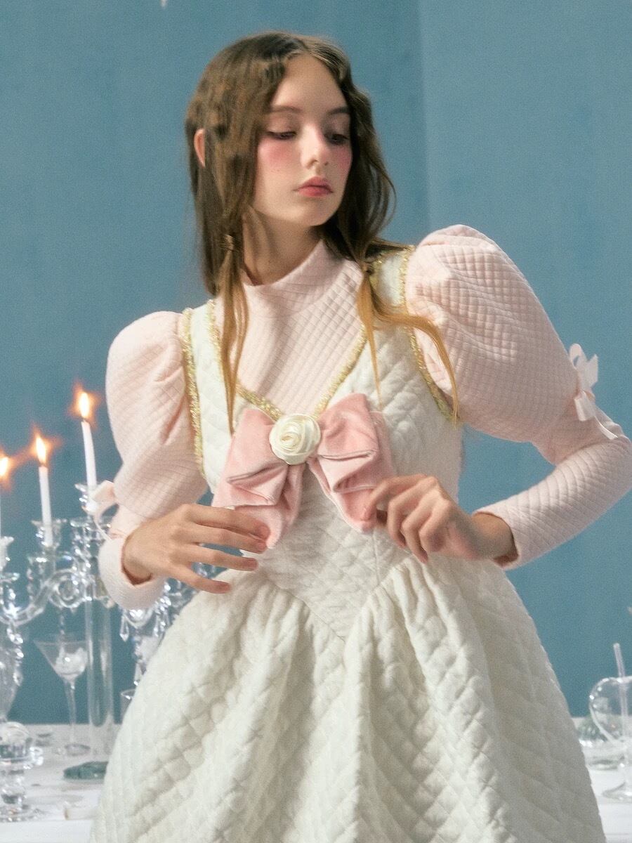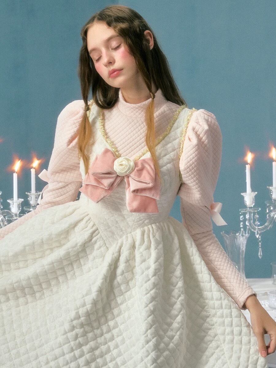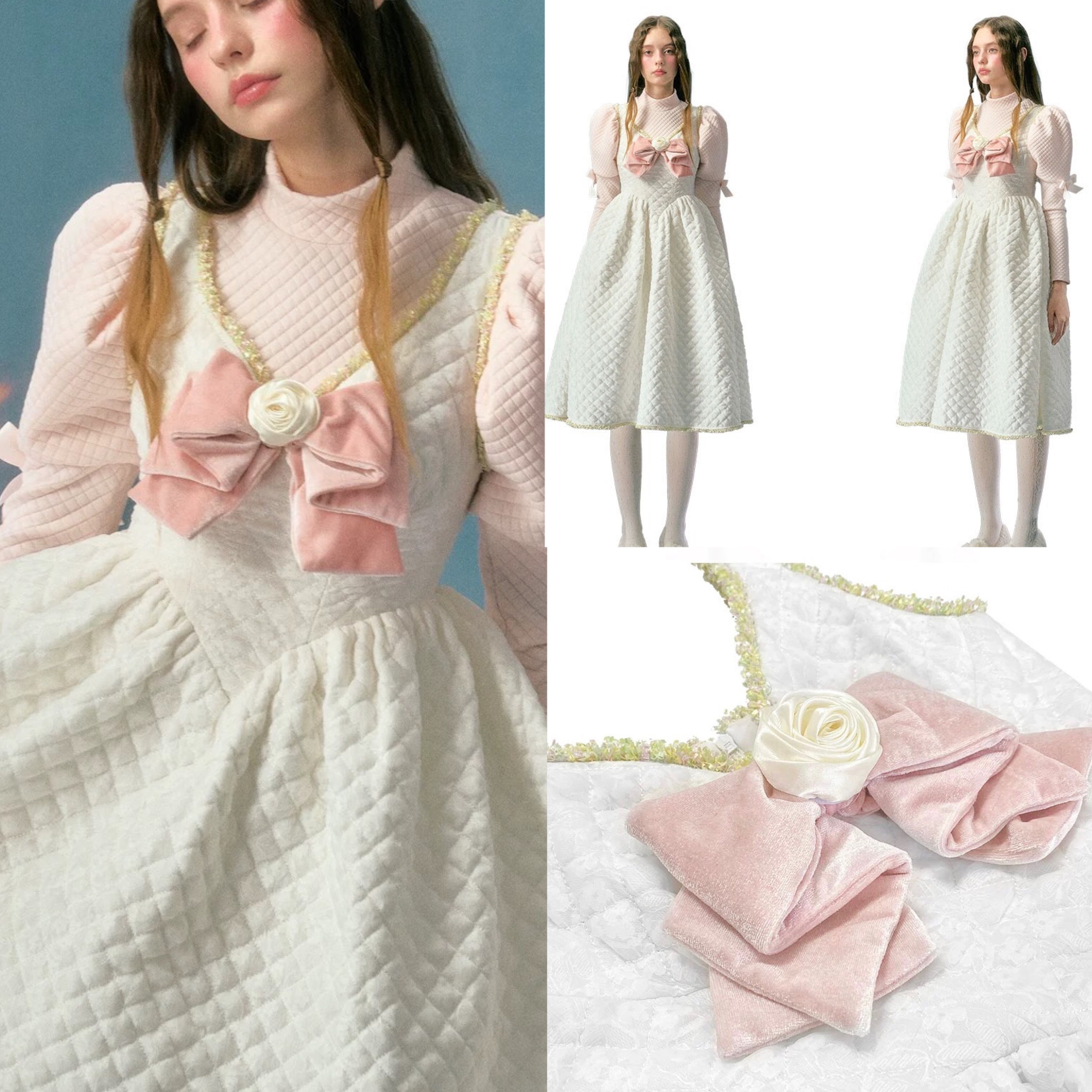 【ピンク】リボン カメリア ワンピース ガーリー ドレス 白