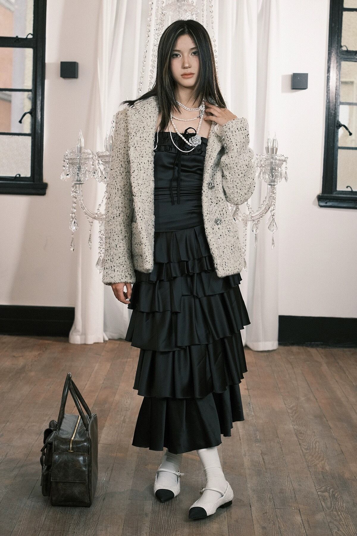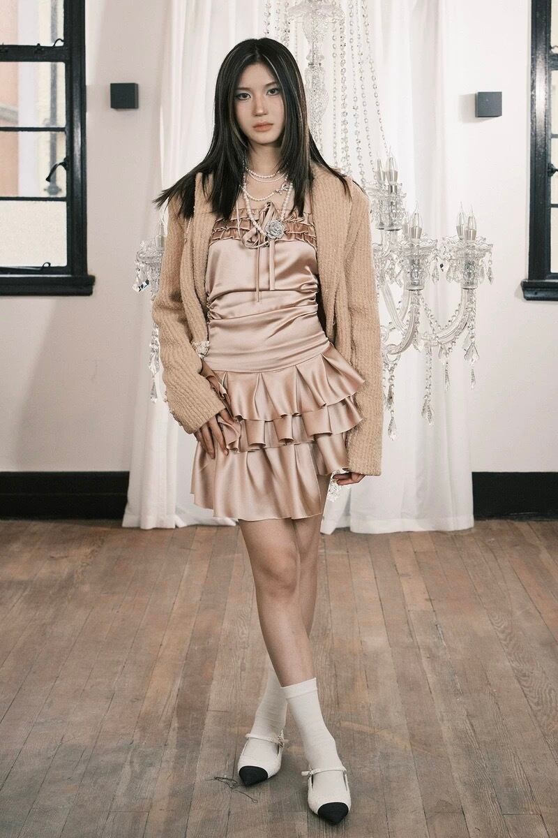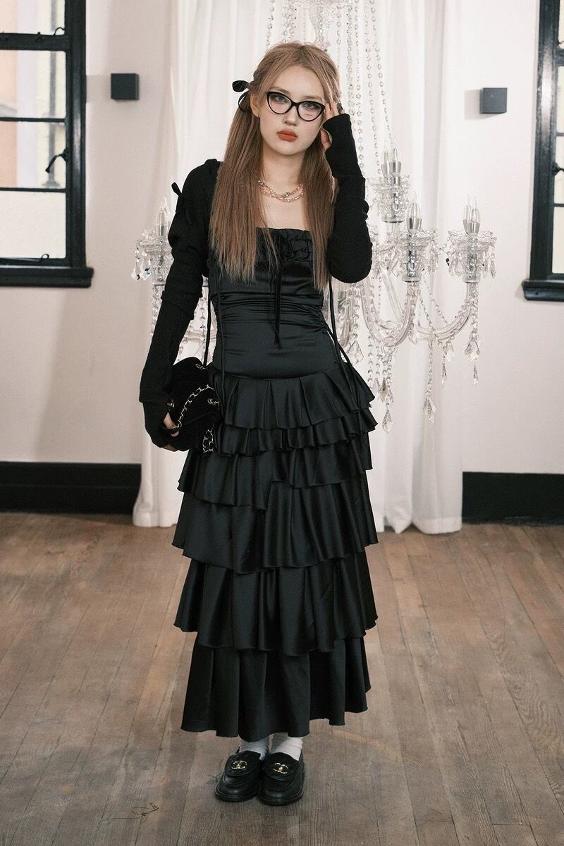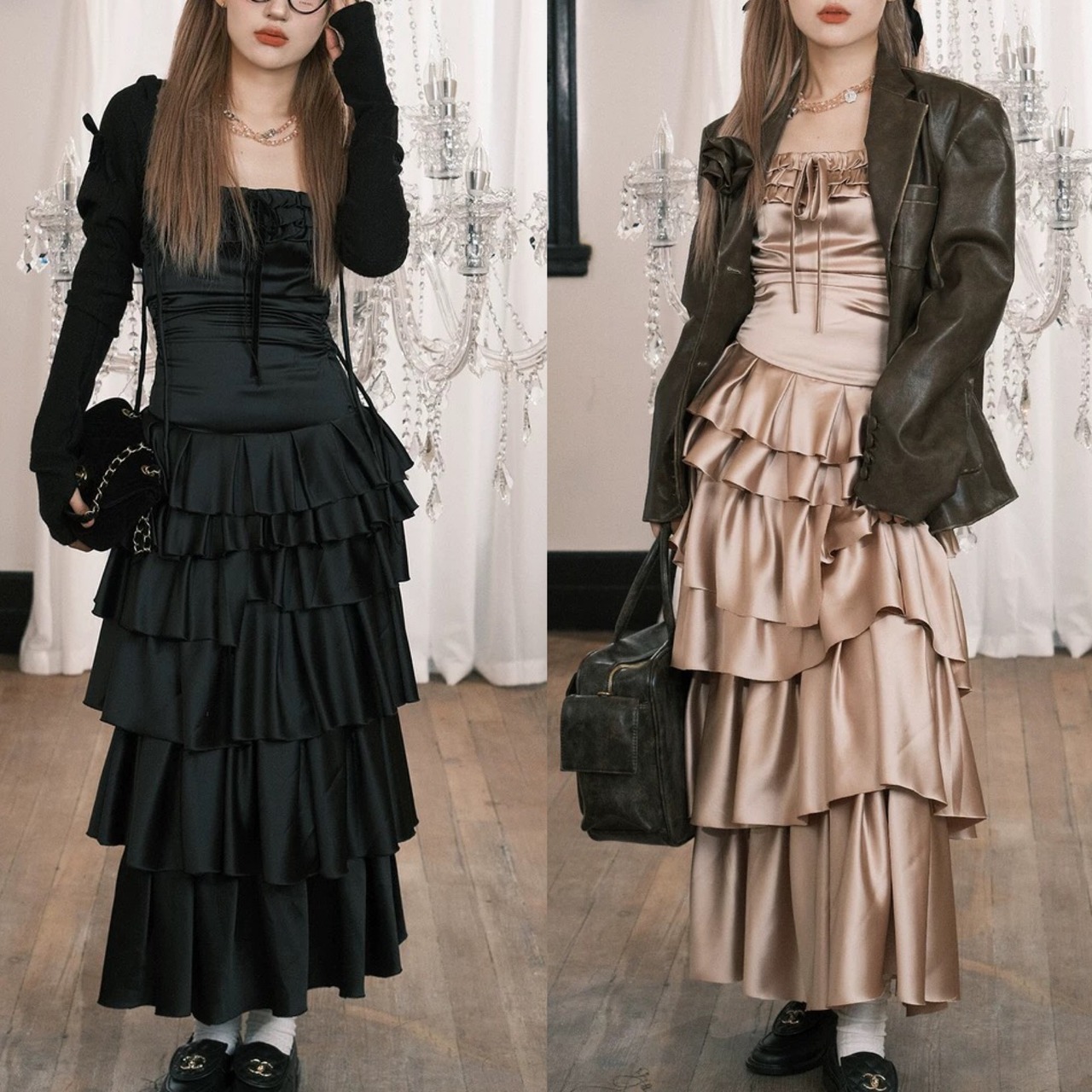 【セットアップ】キャミソール 茶色 ベージュ 黒 リボン スカート ボトムス