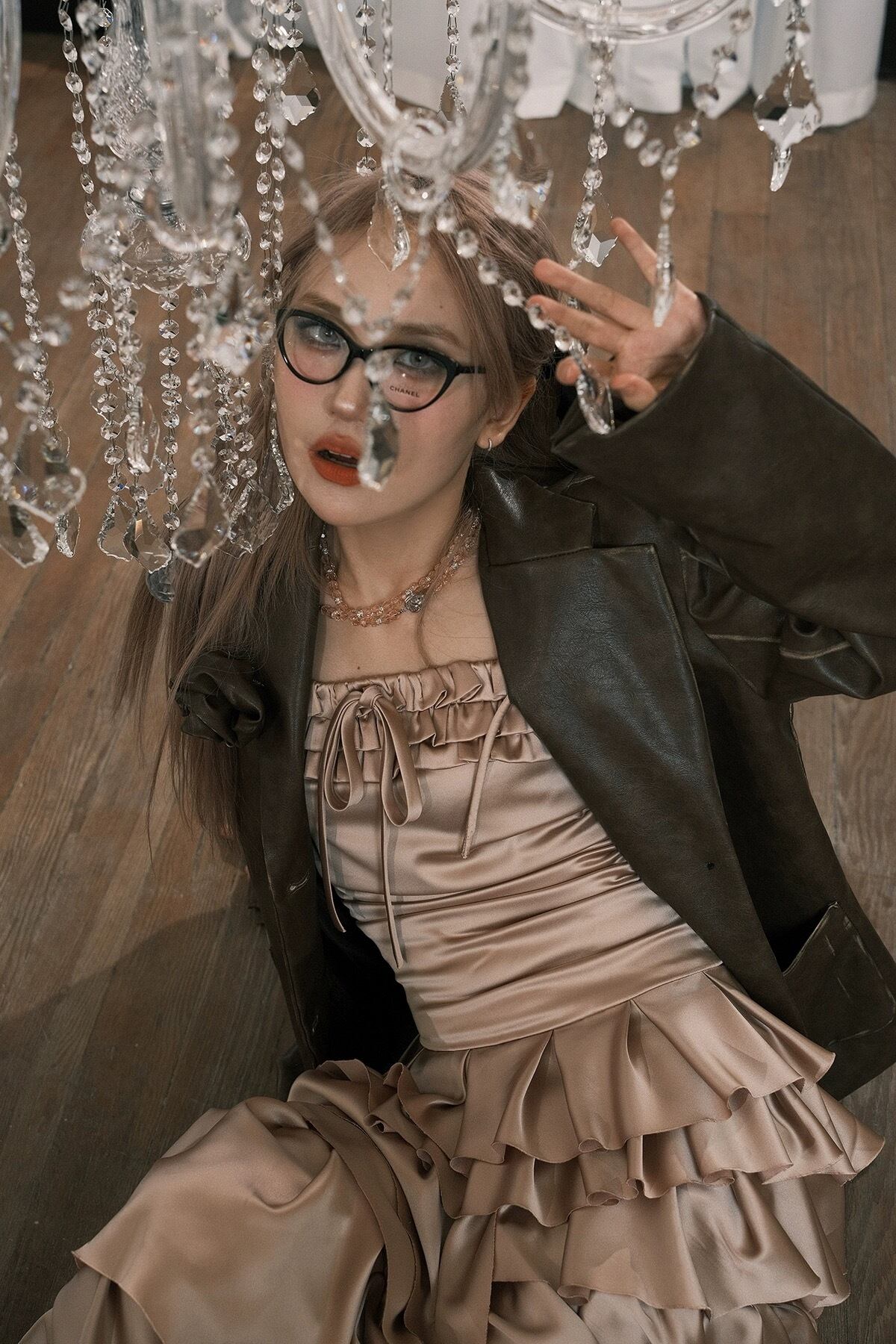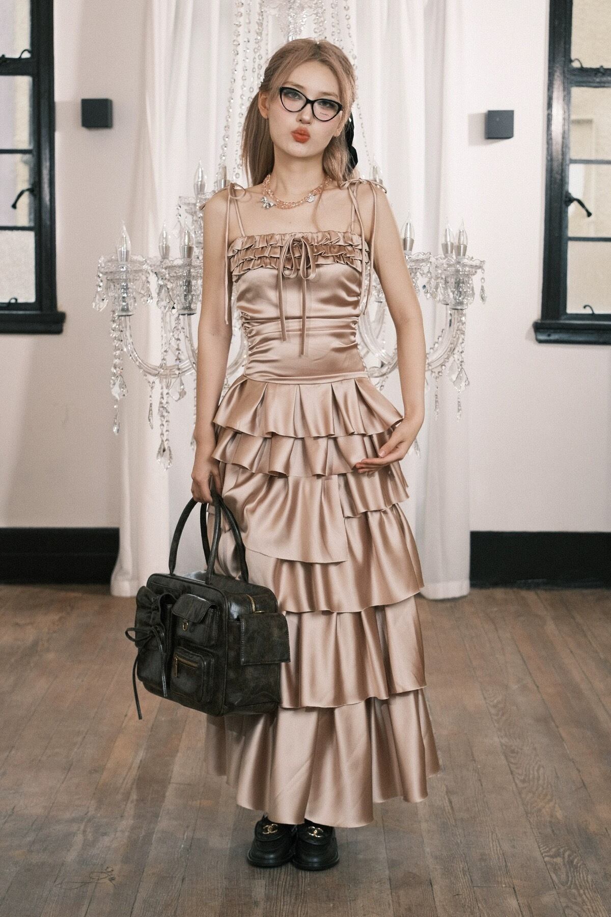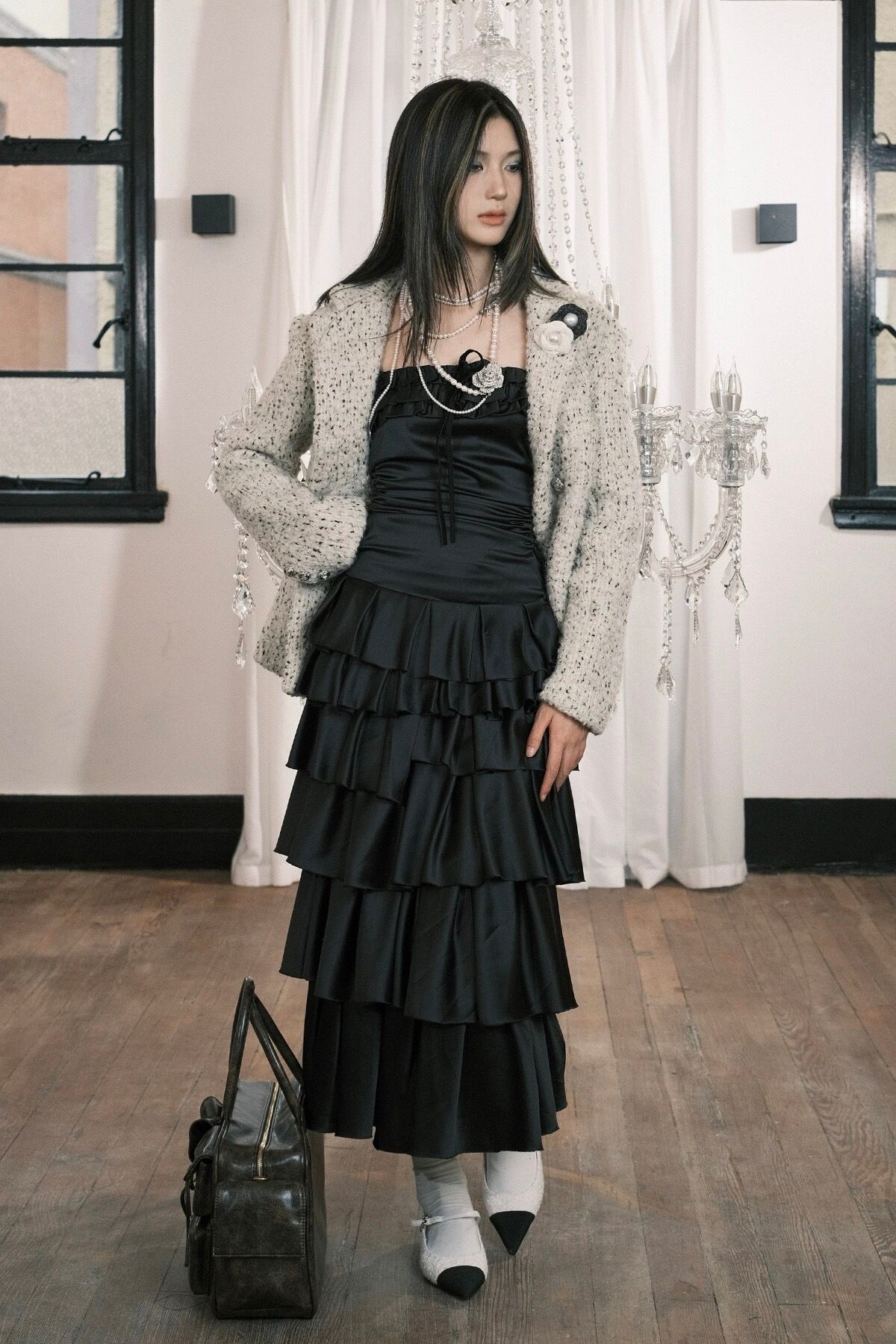 【セットアップ】キャミソール 茶色 ベージュ 黒 リボン スカート ボトムス
