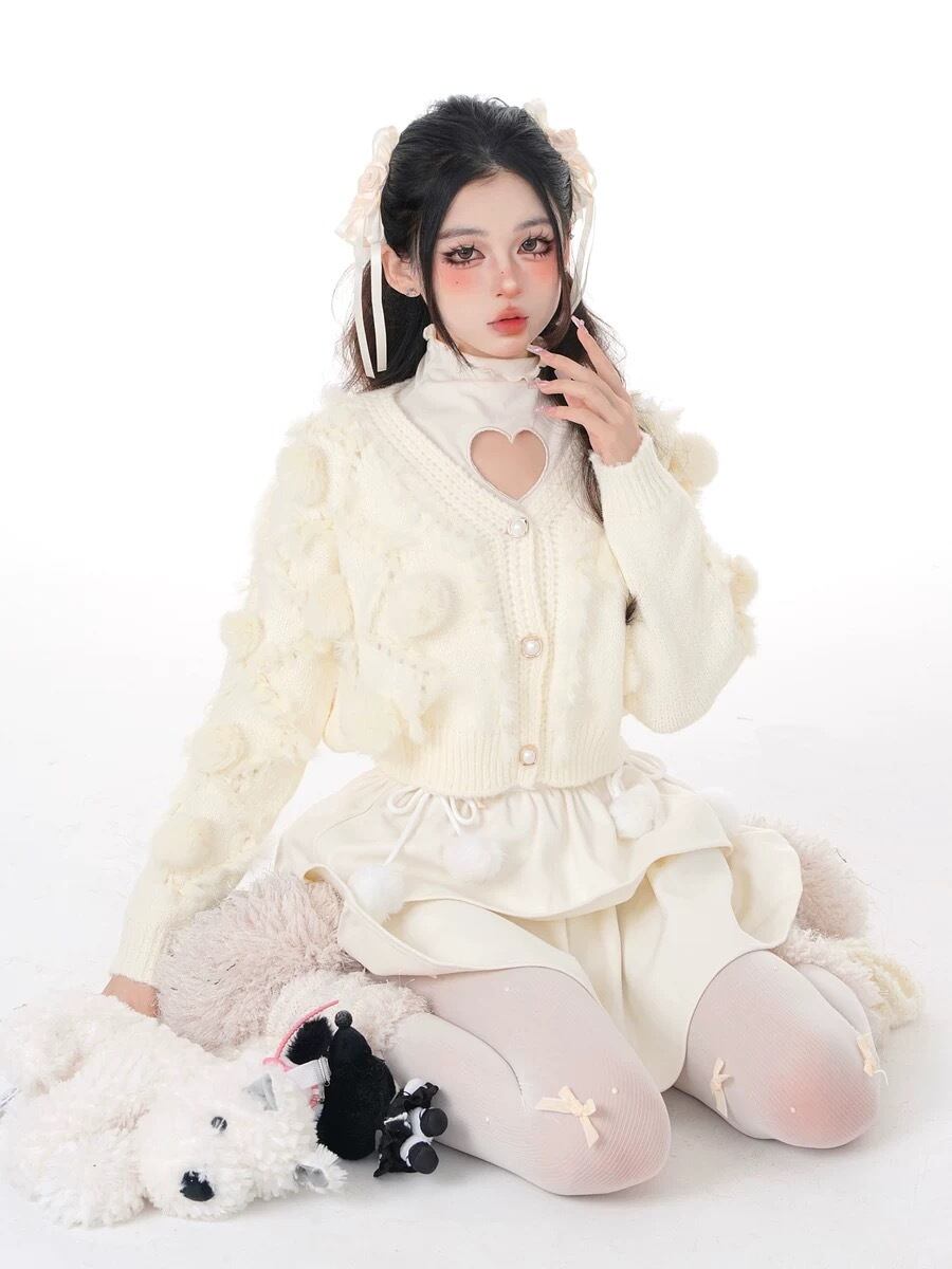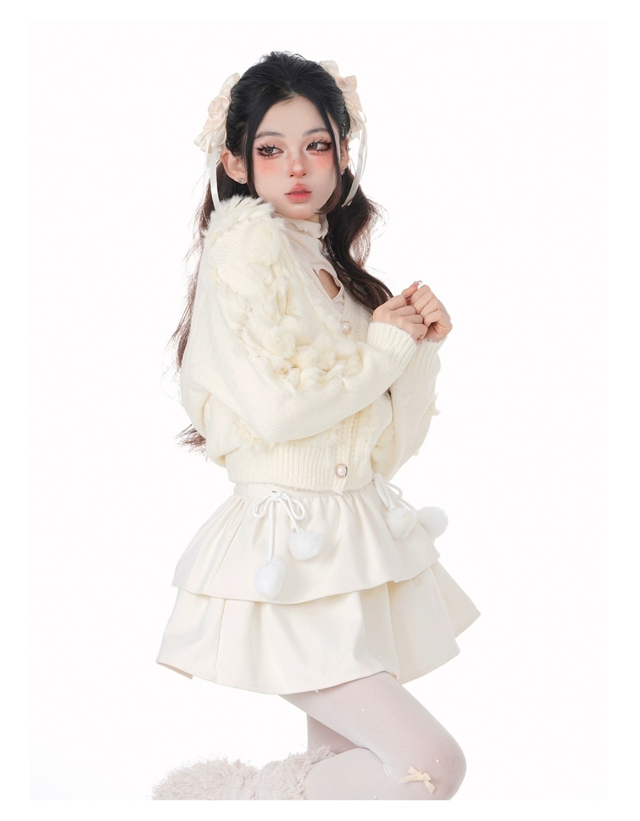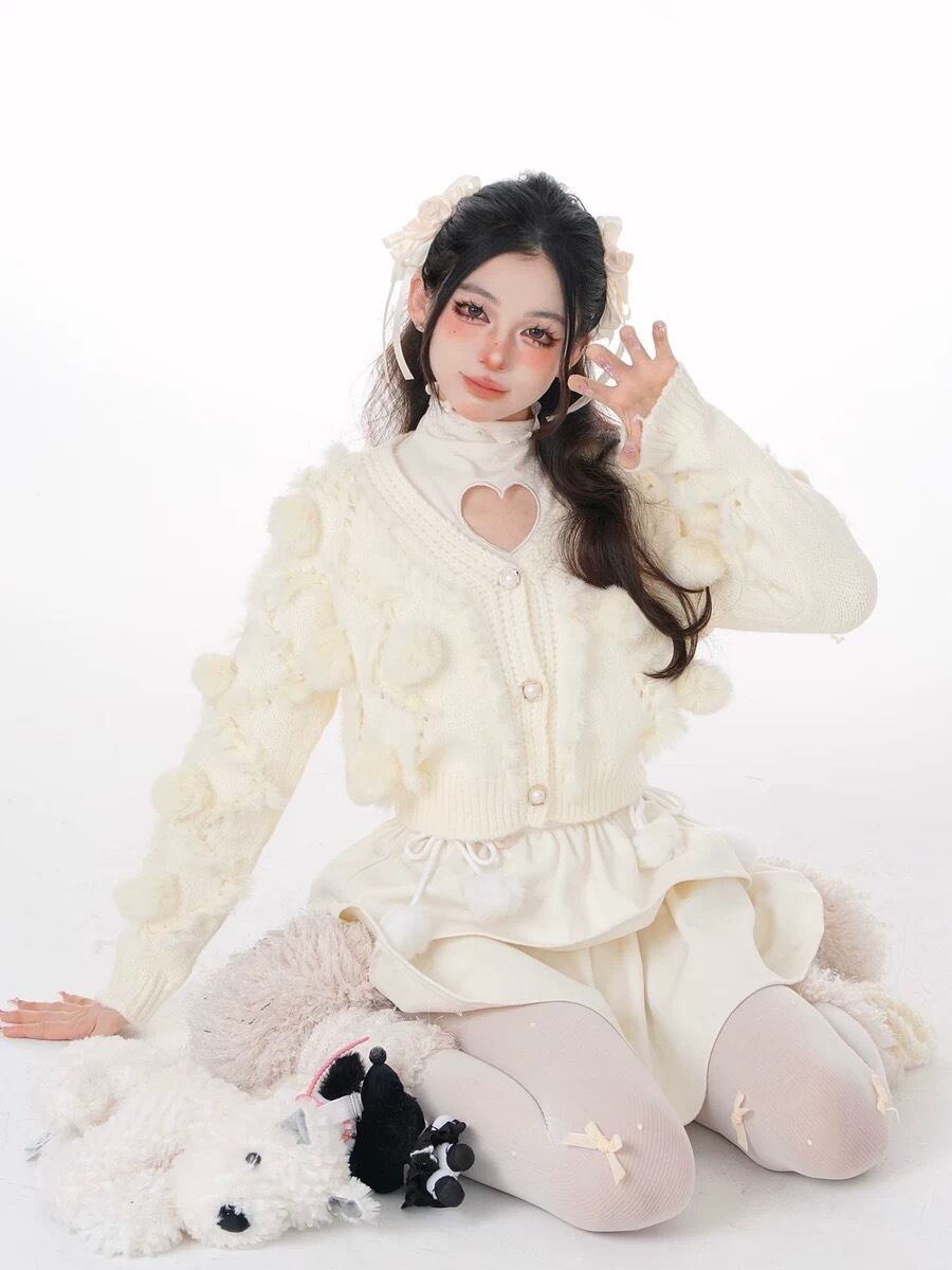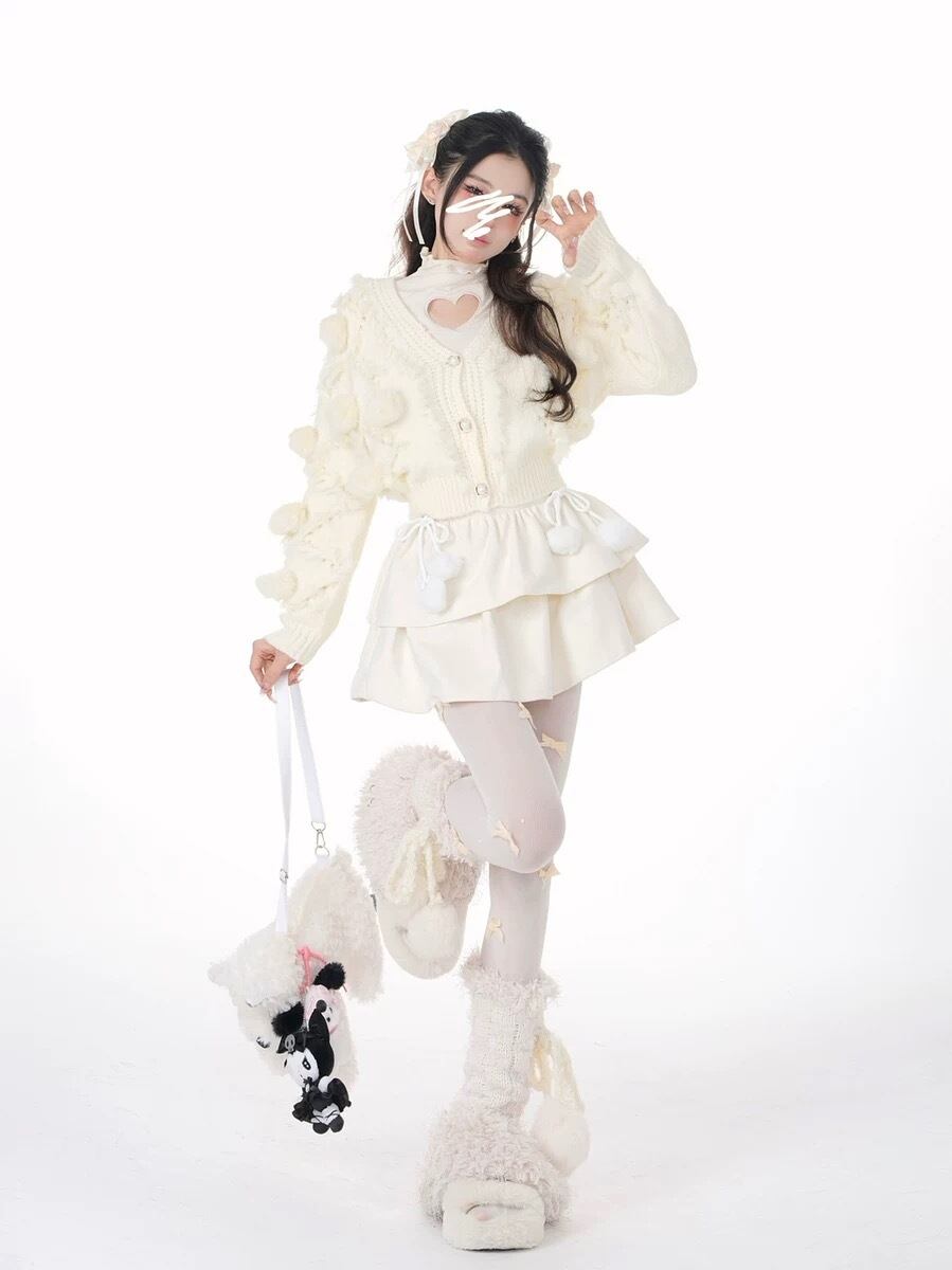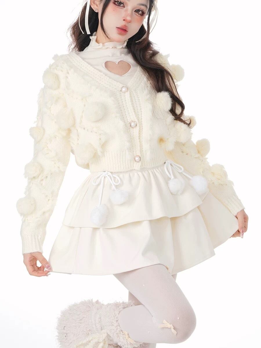 カーディガン 白 ホワイト ぽんぽん ガーリー アウター