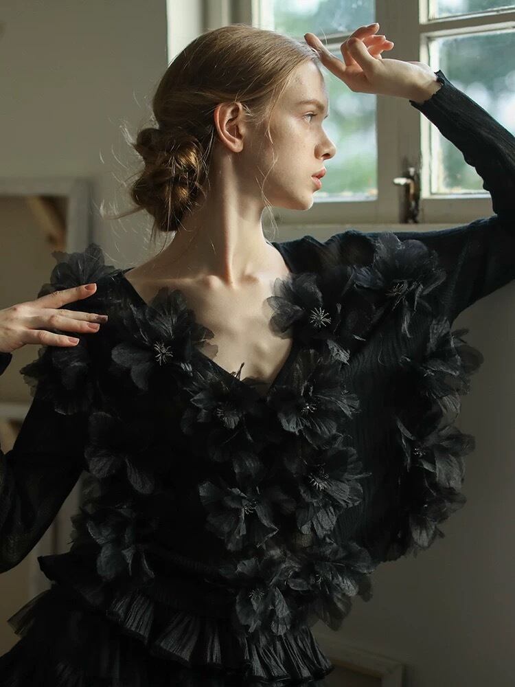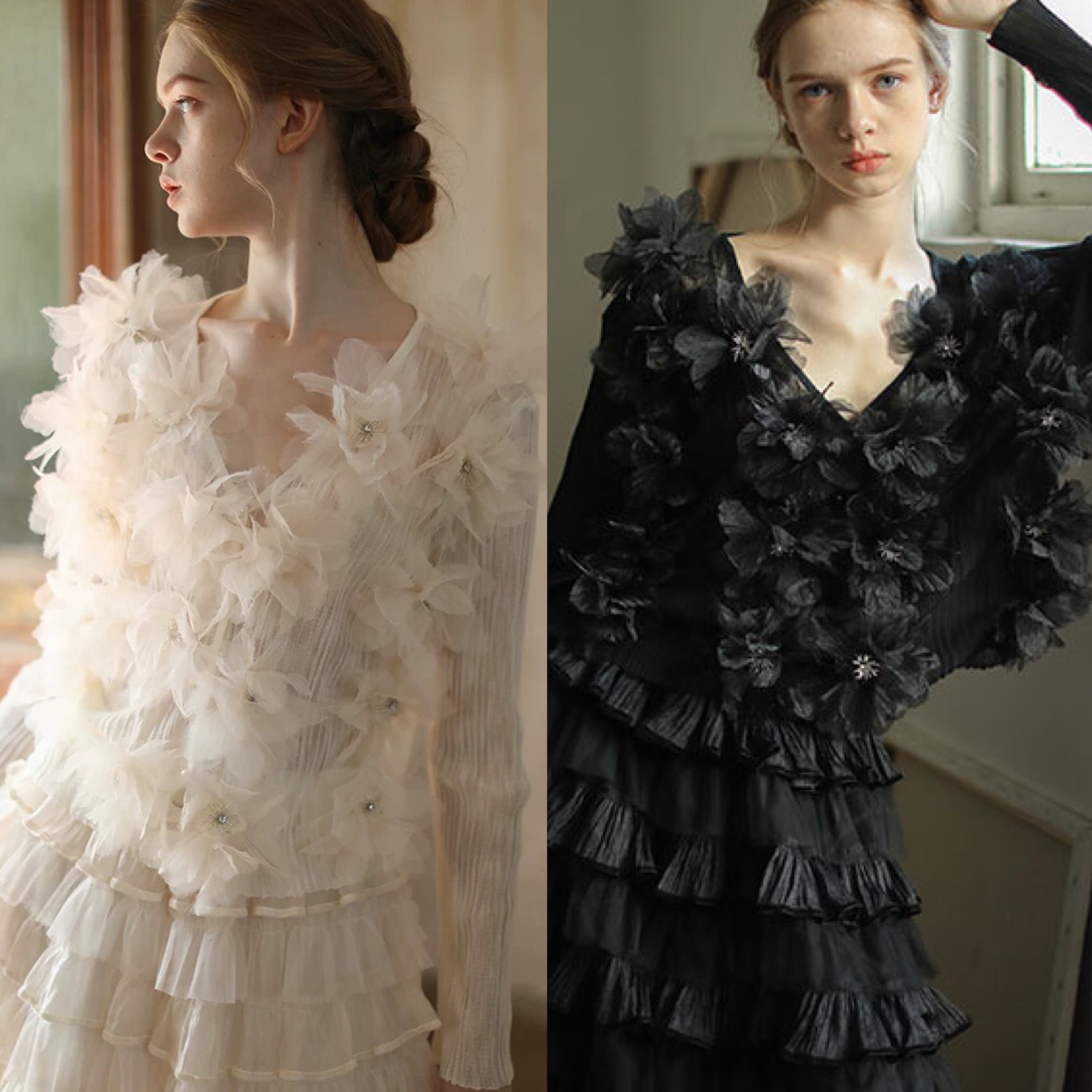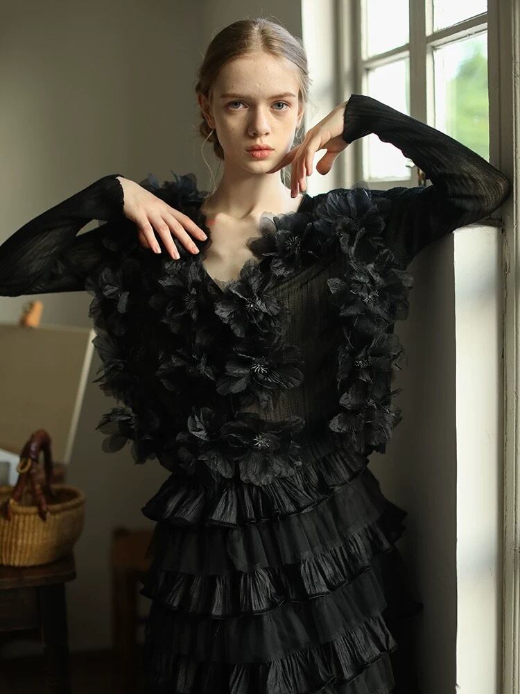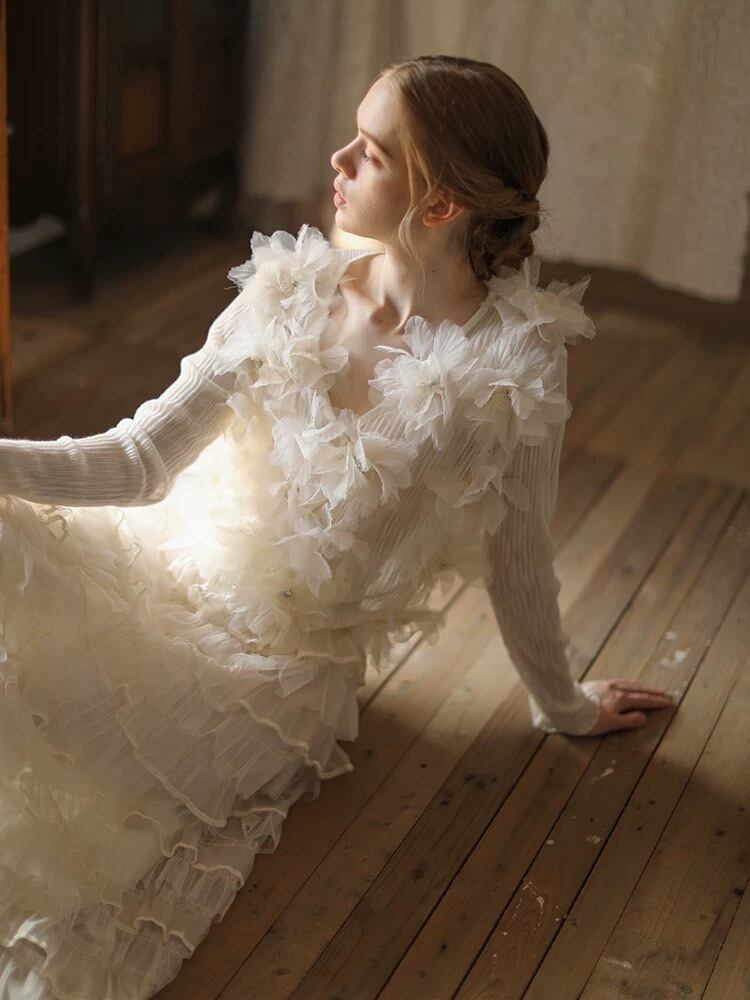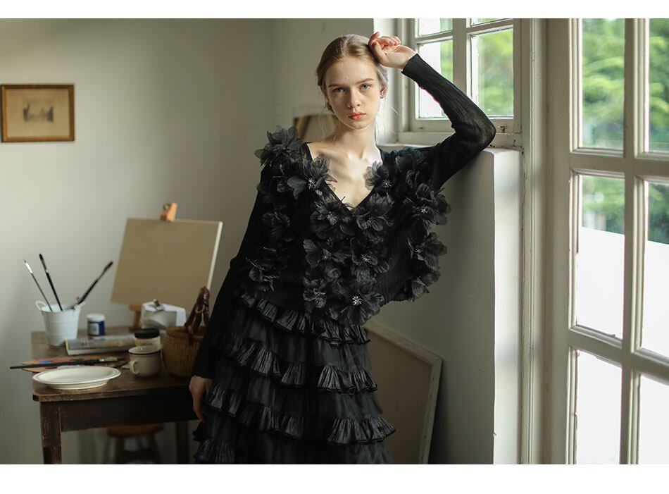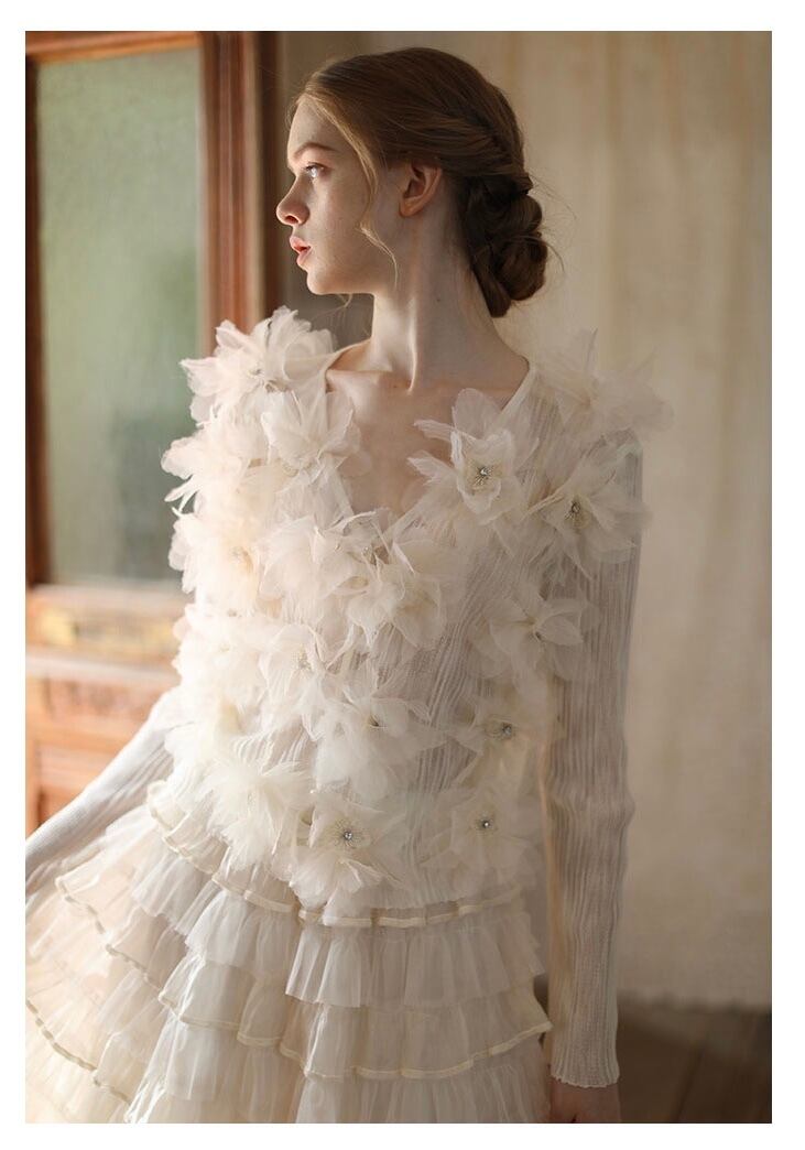カーディガン 白 黒 ゴージャス アウター セーター ガーリー フラワー