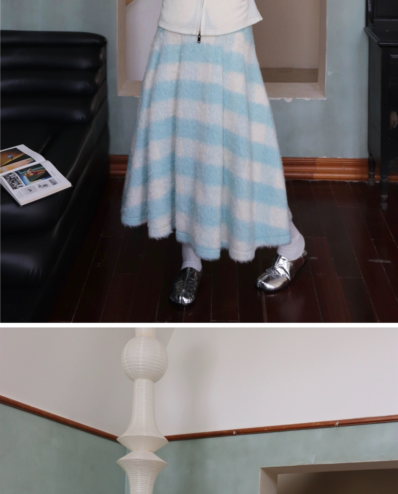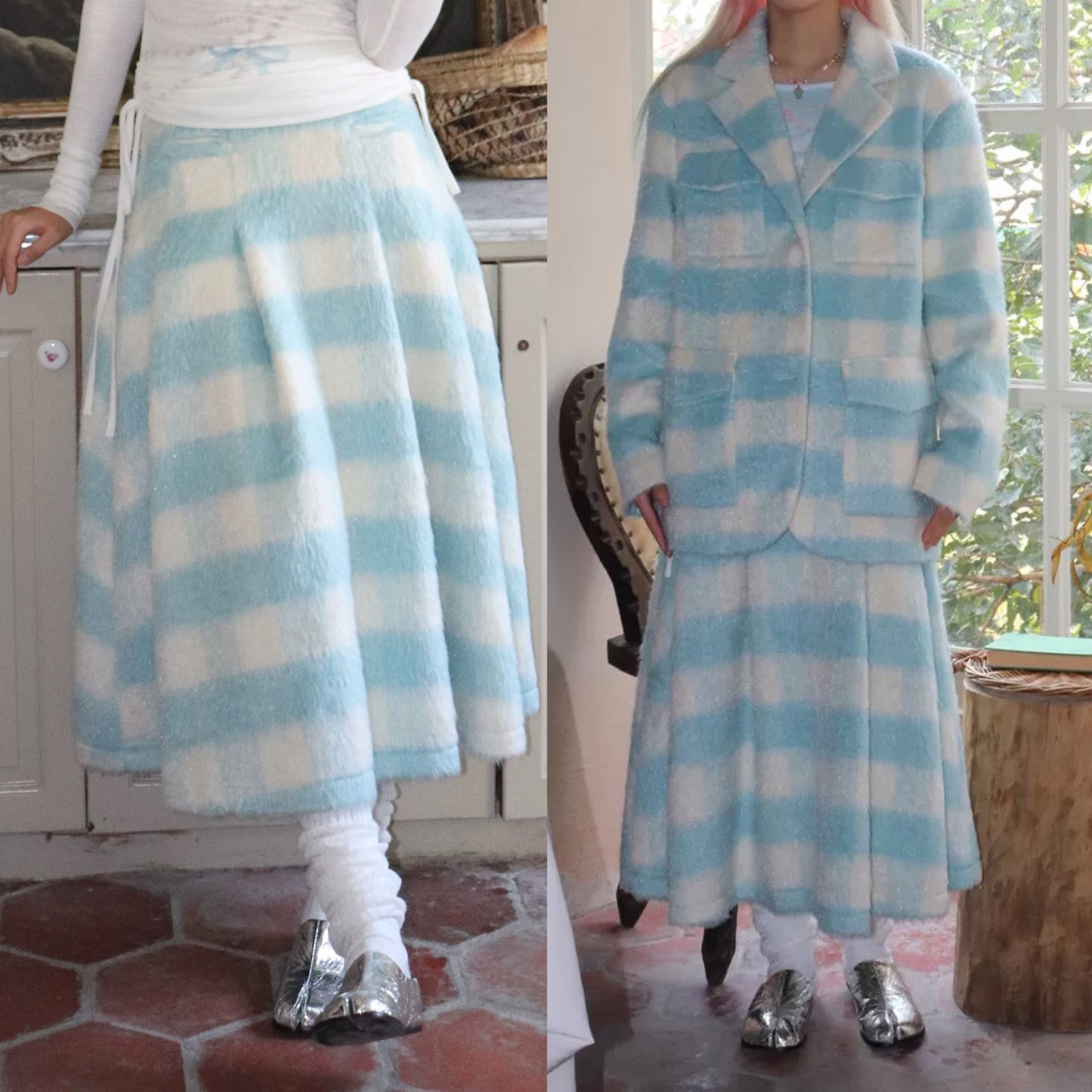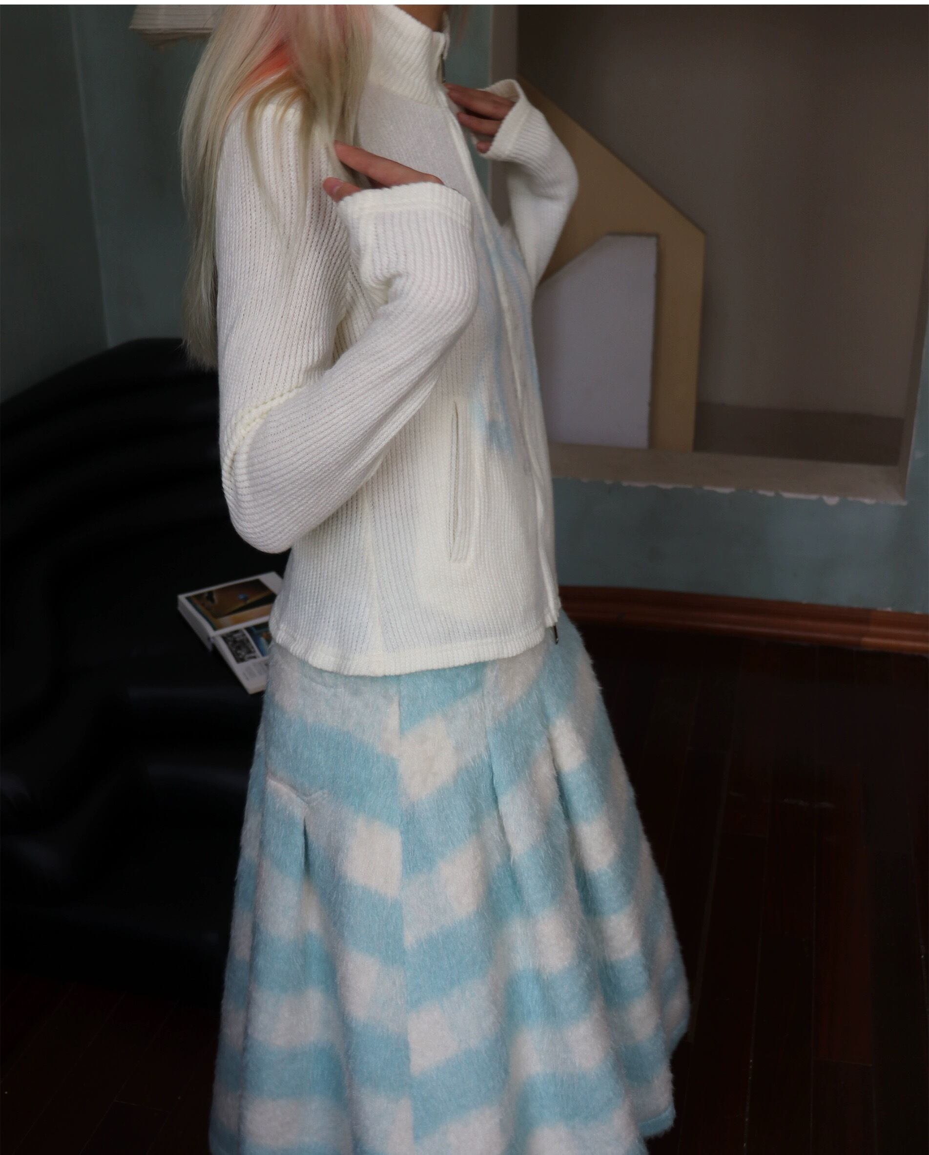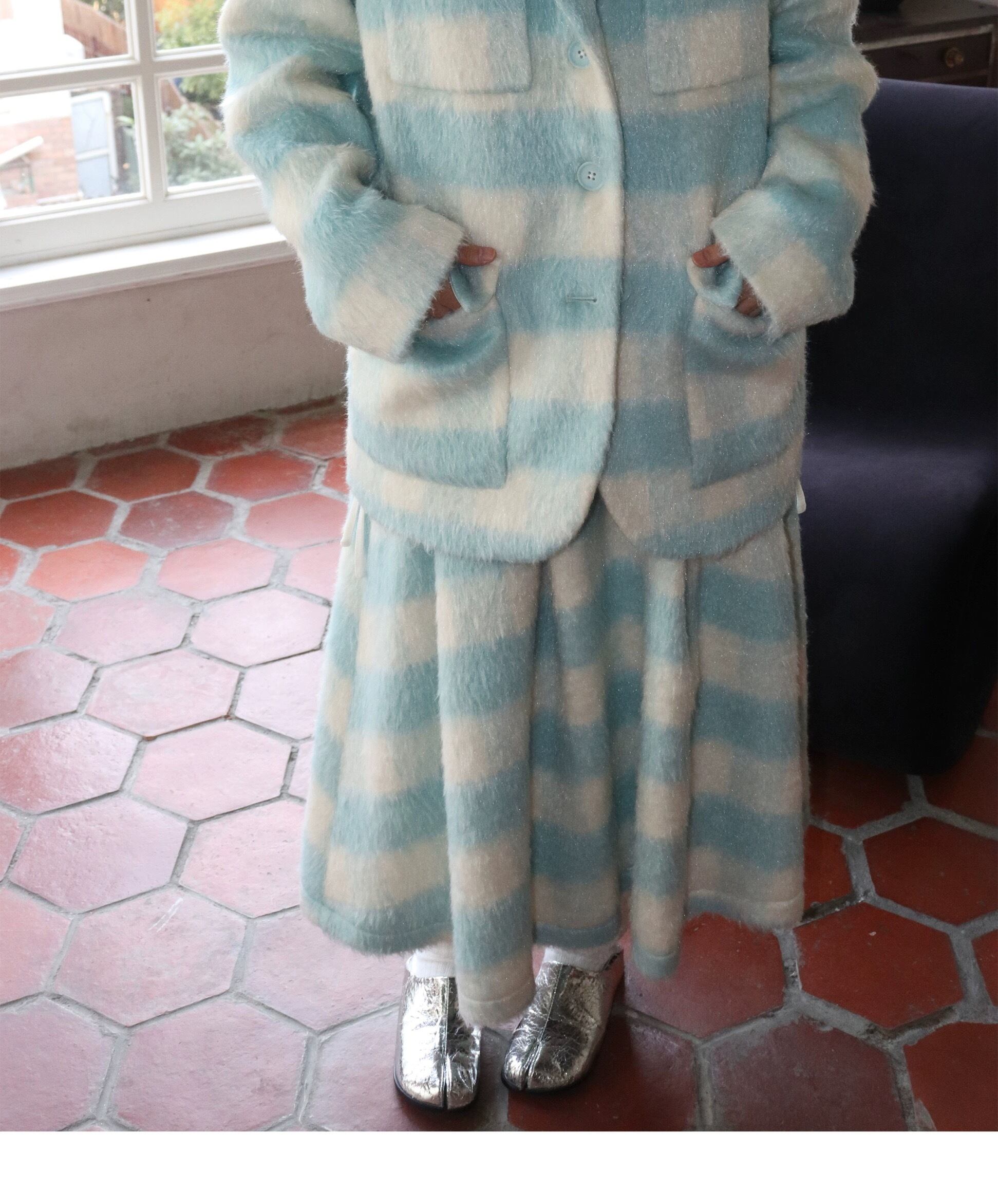【スカート】チェック 水色 ボトムス ガーリー プリーツスカート
