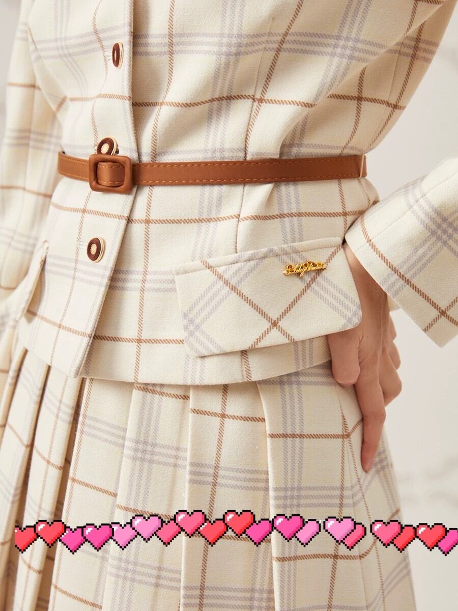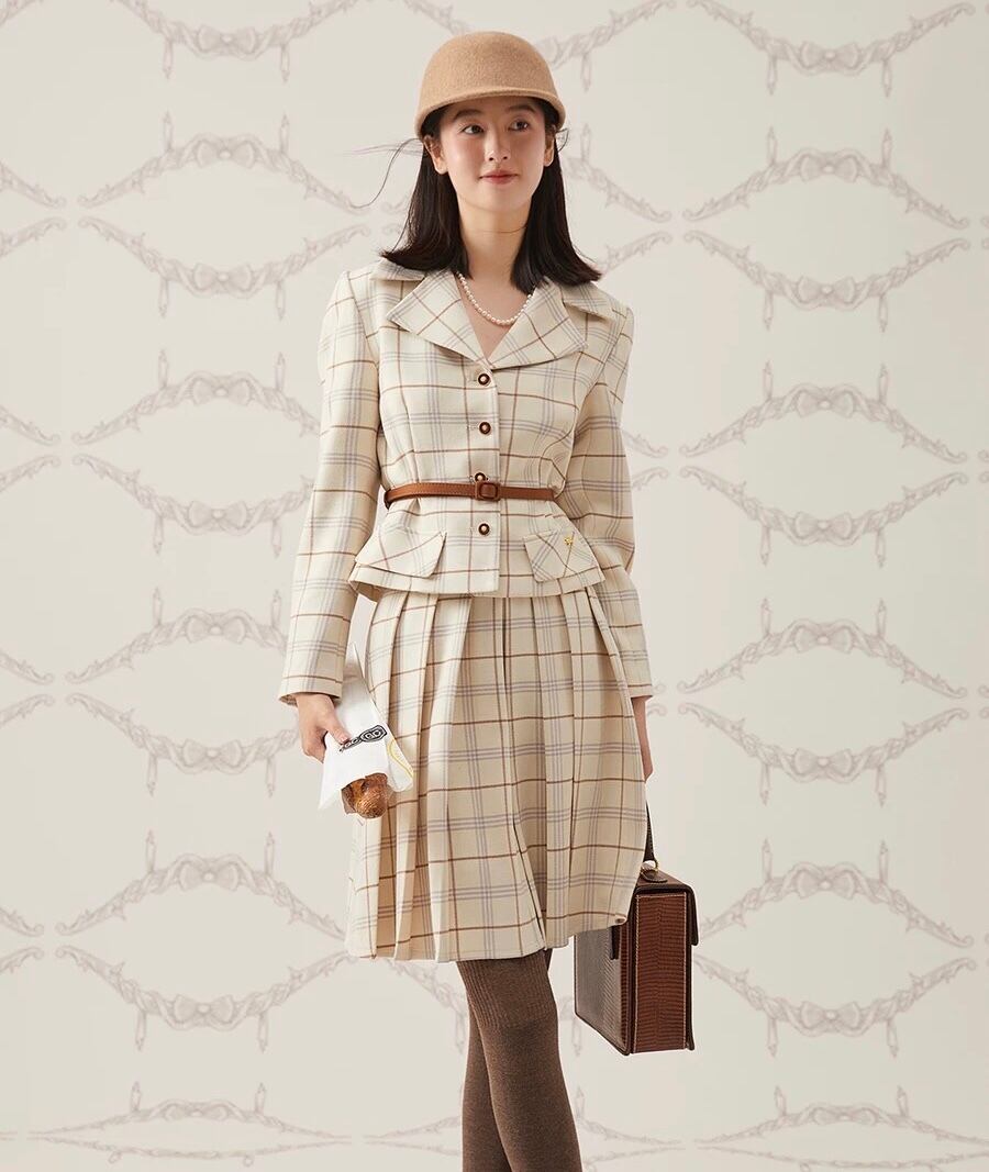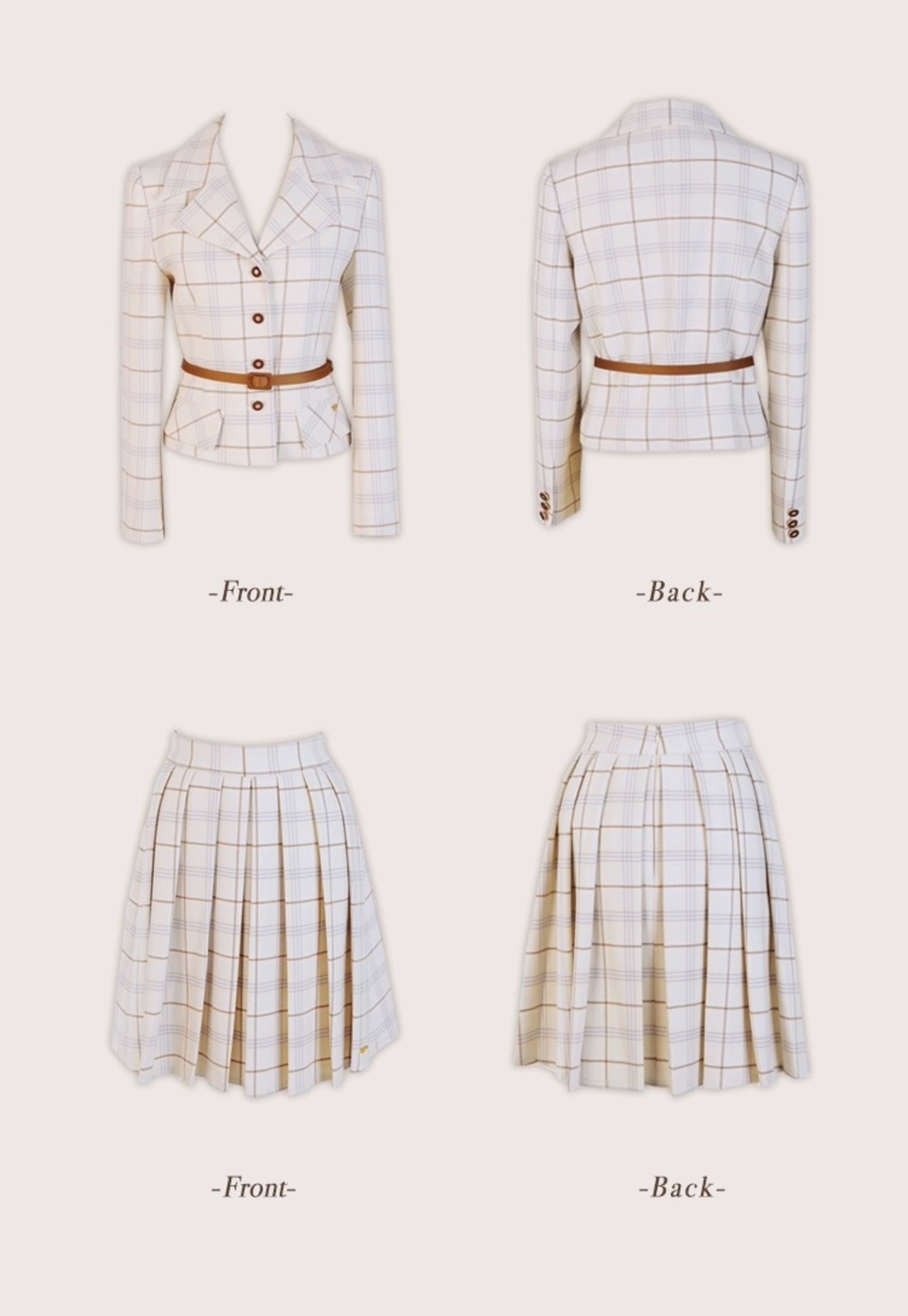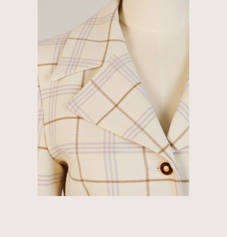 【ジャケット】ベージュ チェック スーツ アウター カーディガン