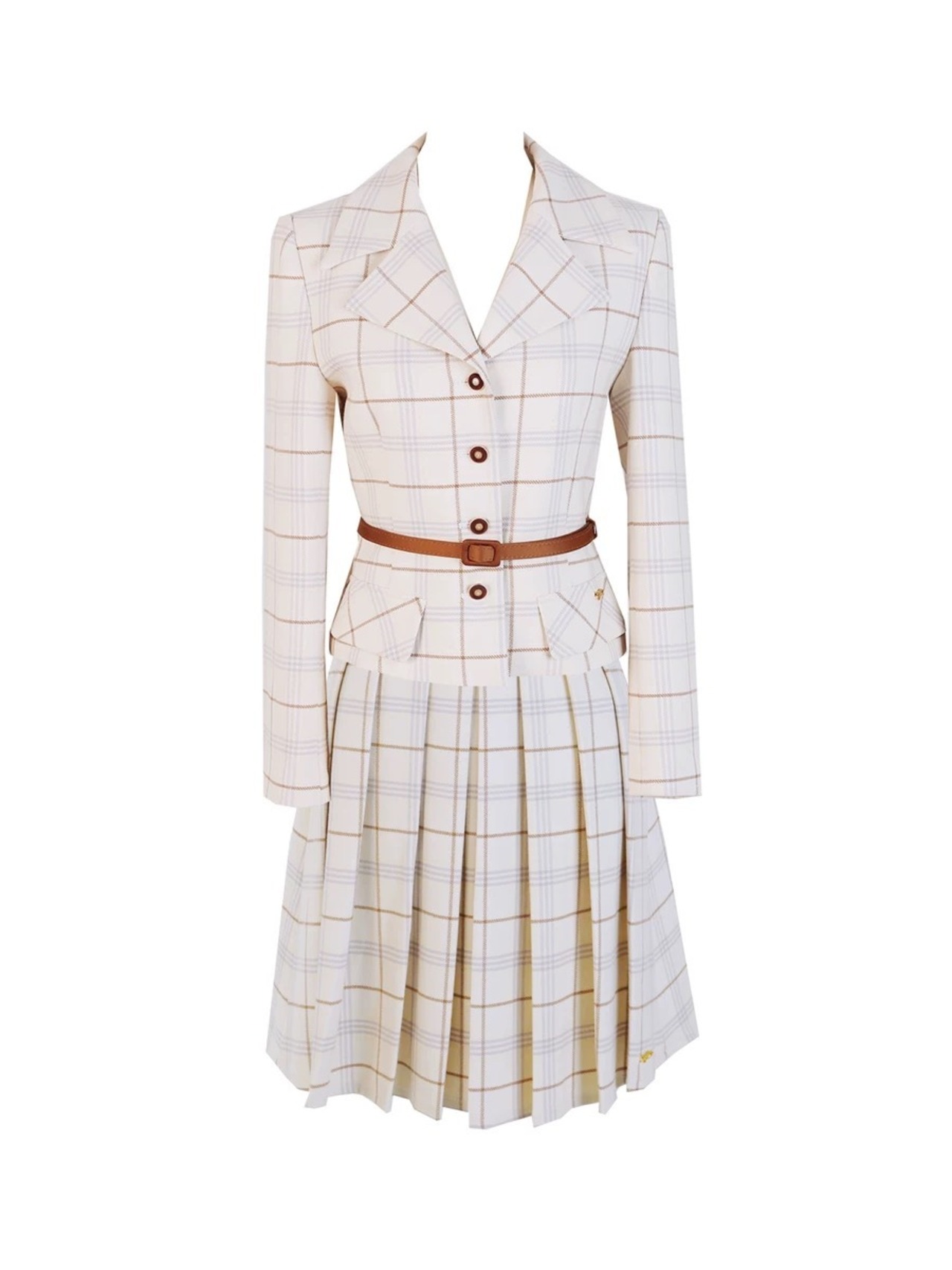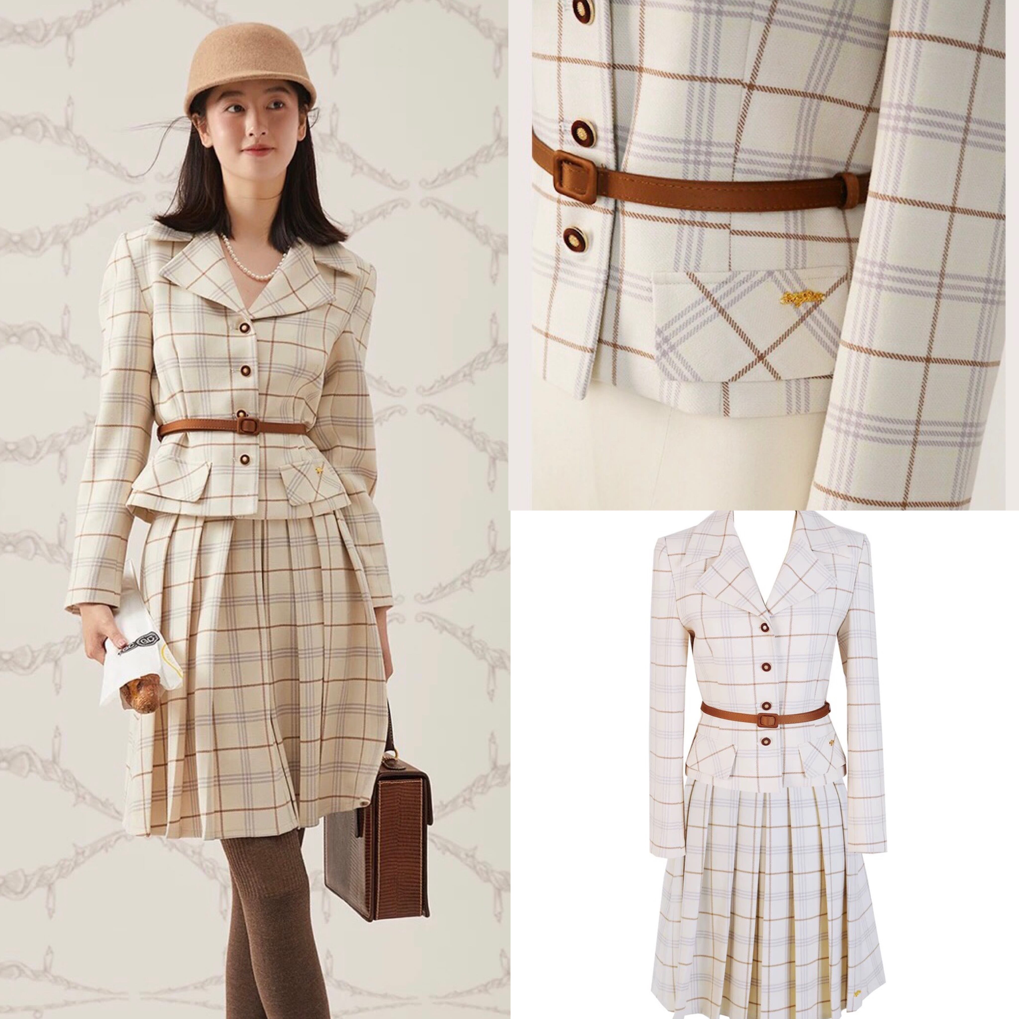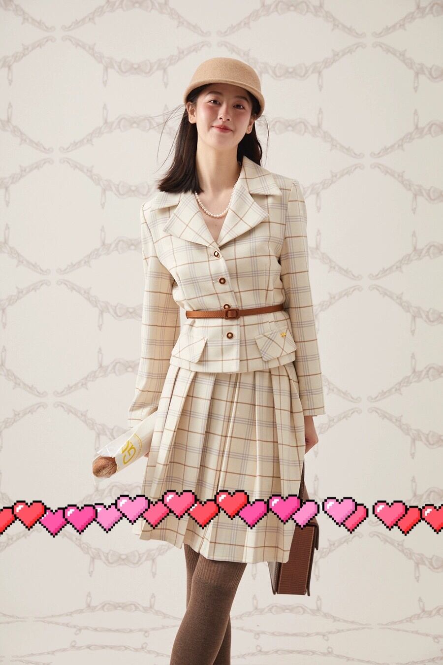 【ジャケット】ベージュ チェック スーツ アウター カーディガン
