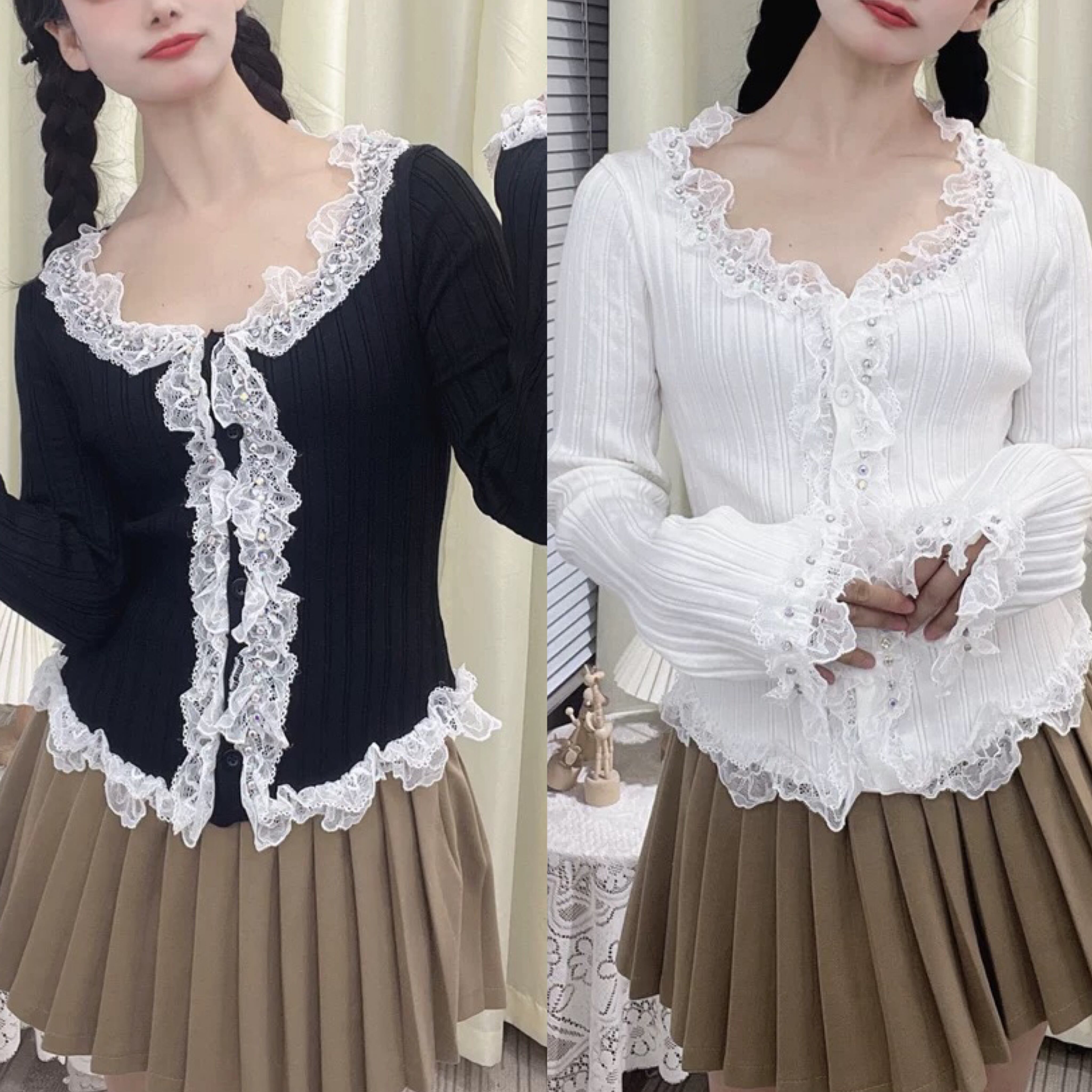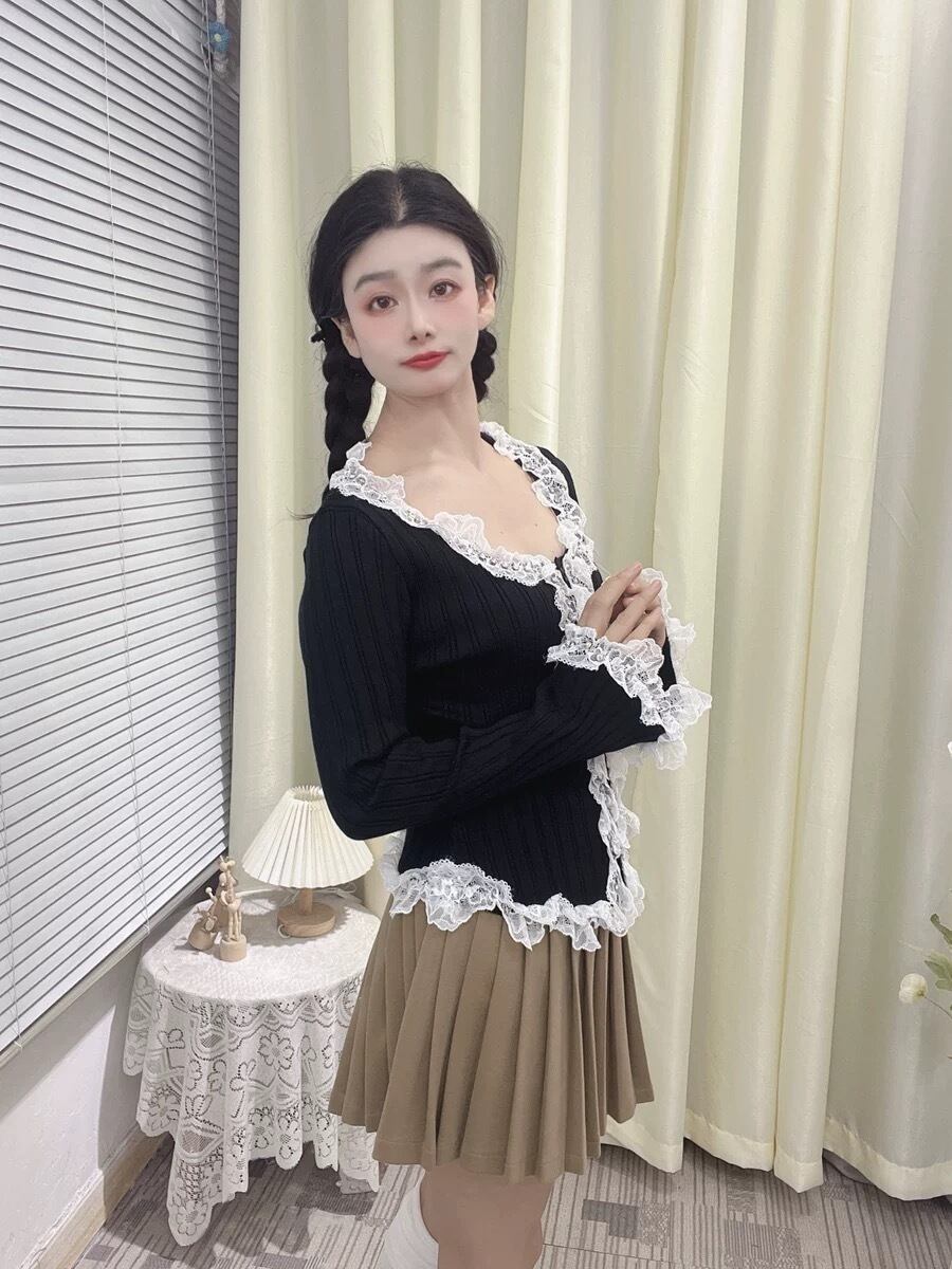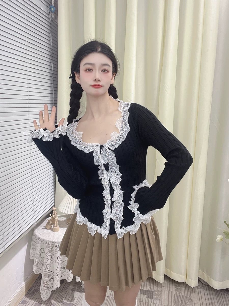カーディガン 黒 白 レース ニット アウター セーター ブラウス