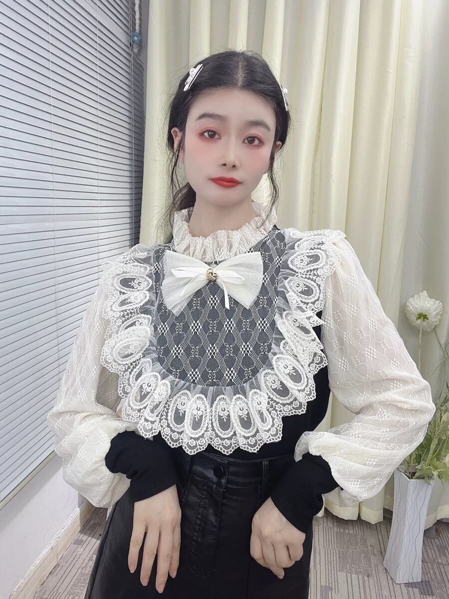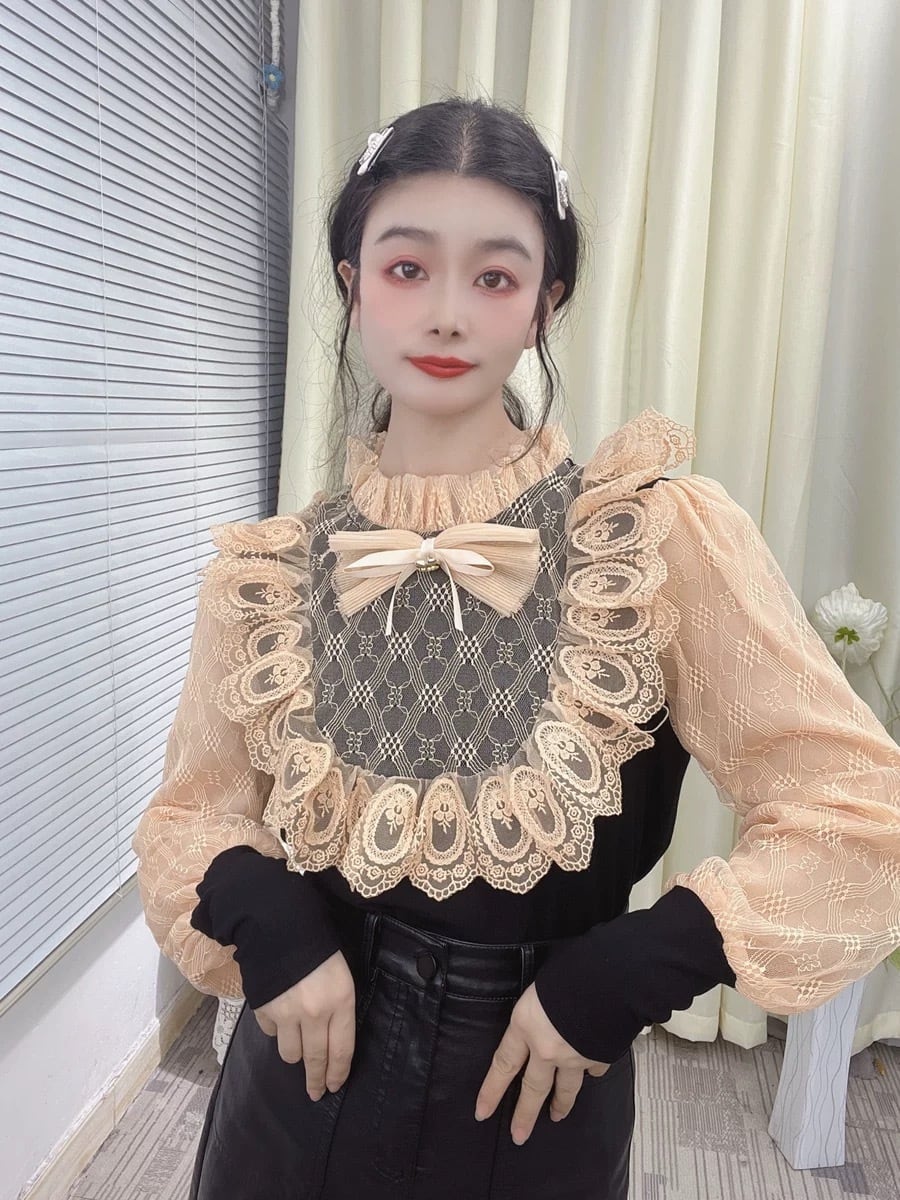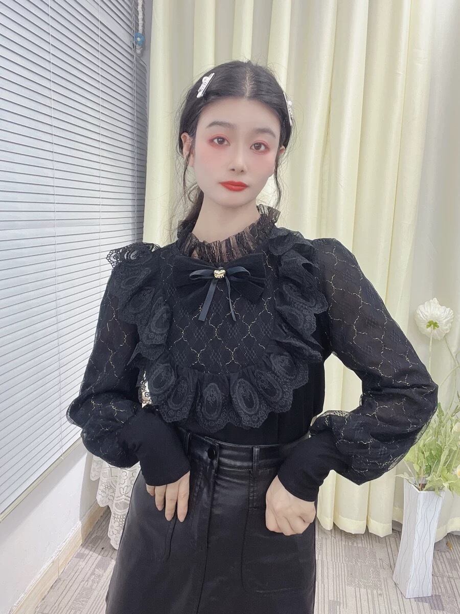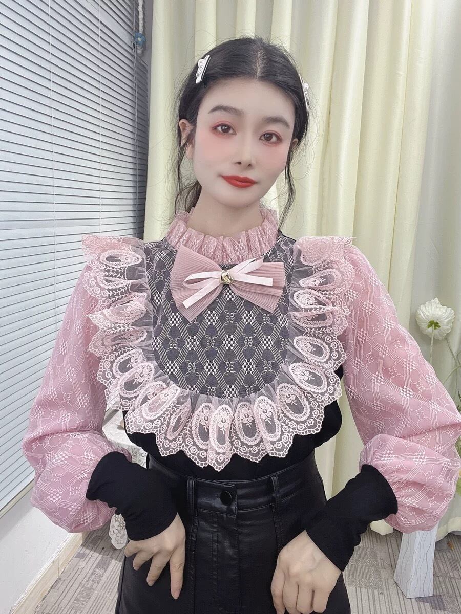 ブラウス リボン ベージュ 黒 ピンク パープル 紫 ガーリー トップス
