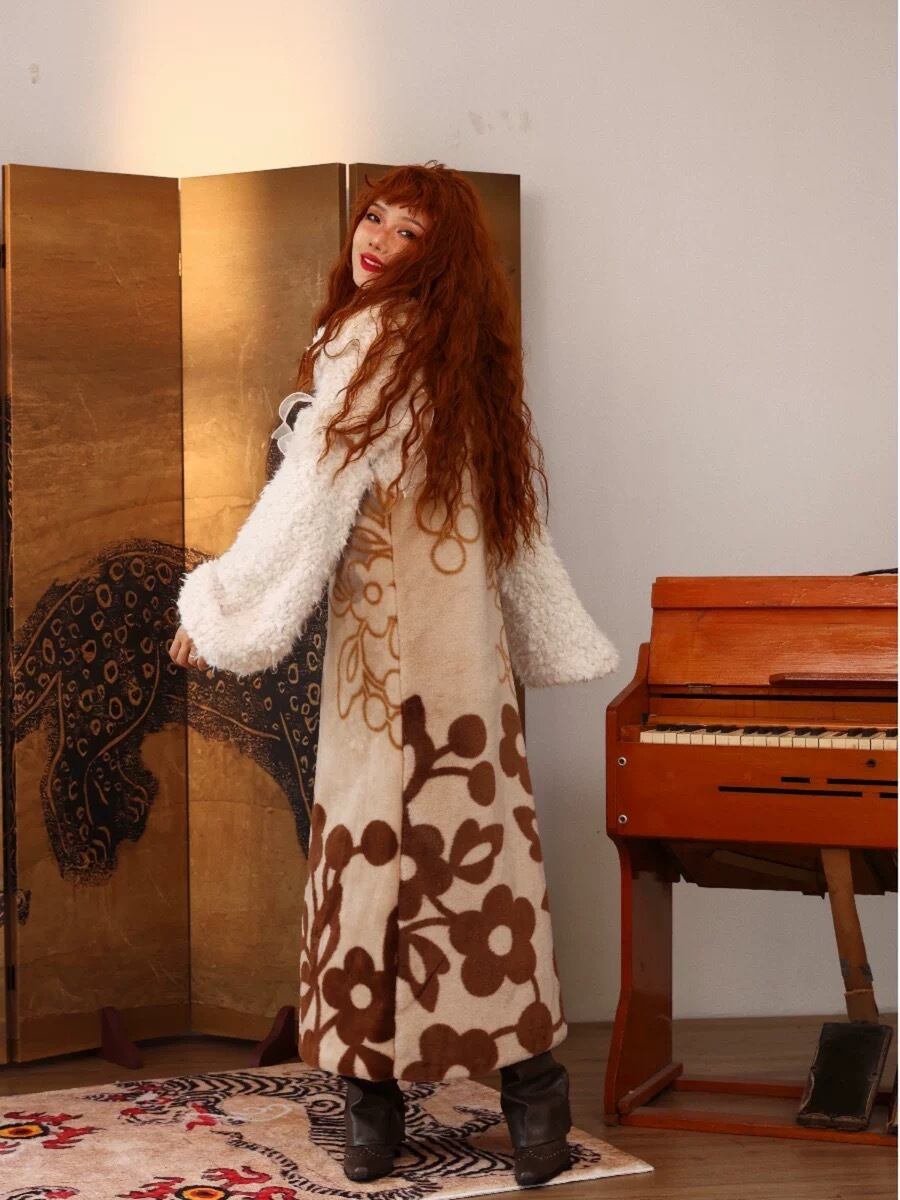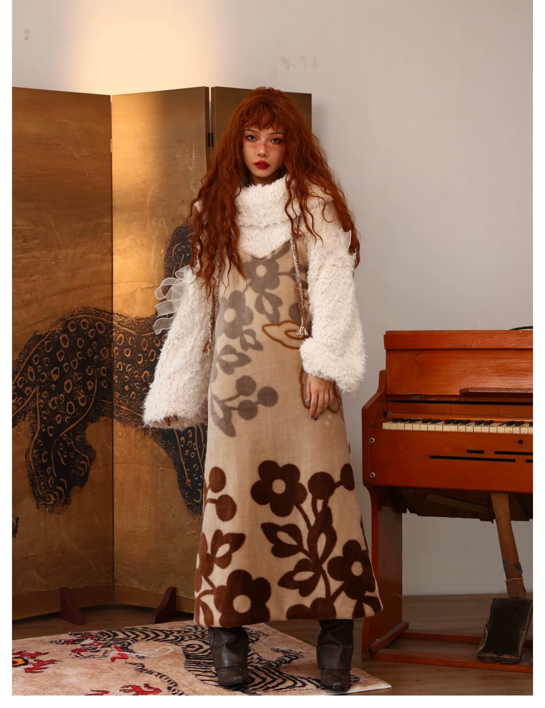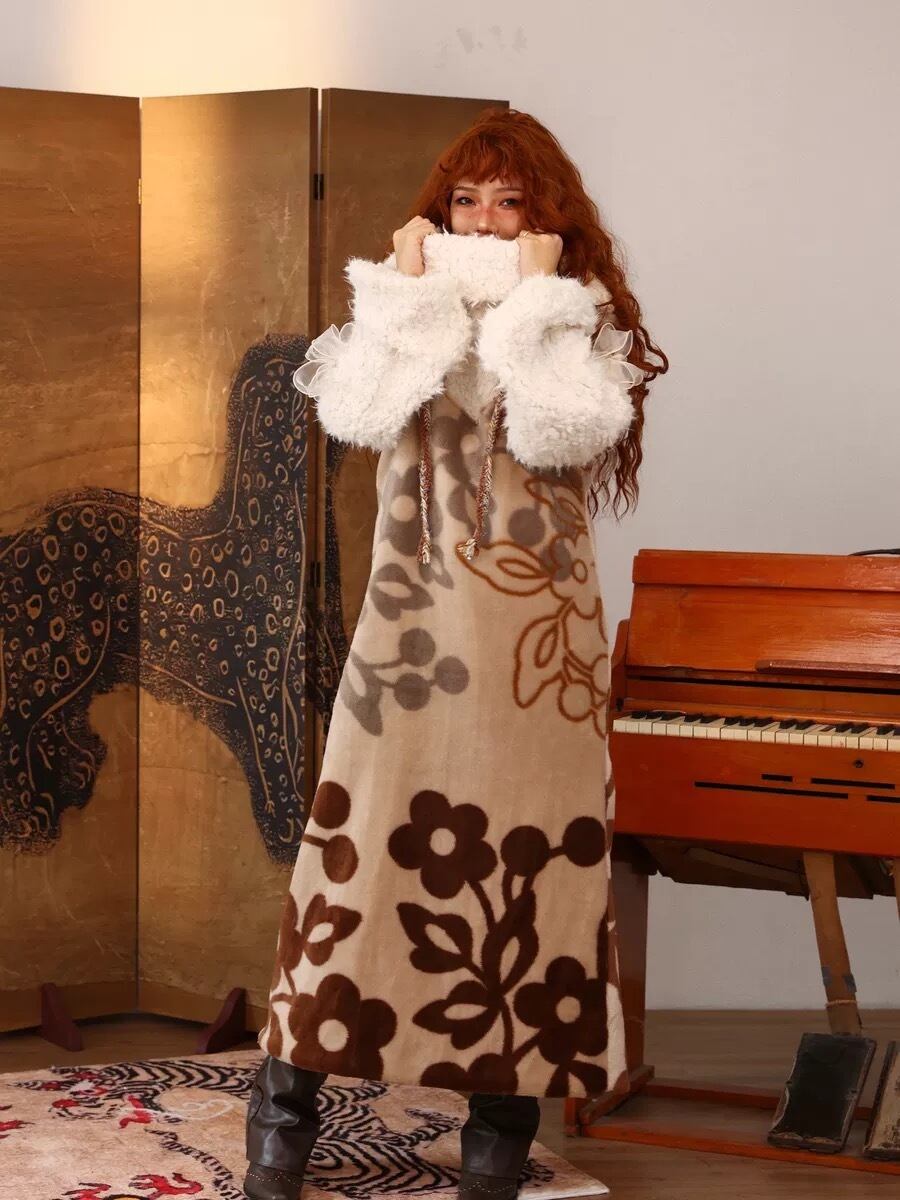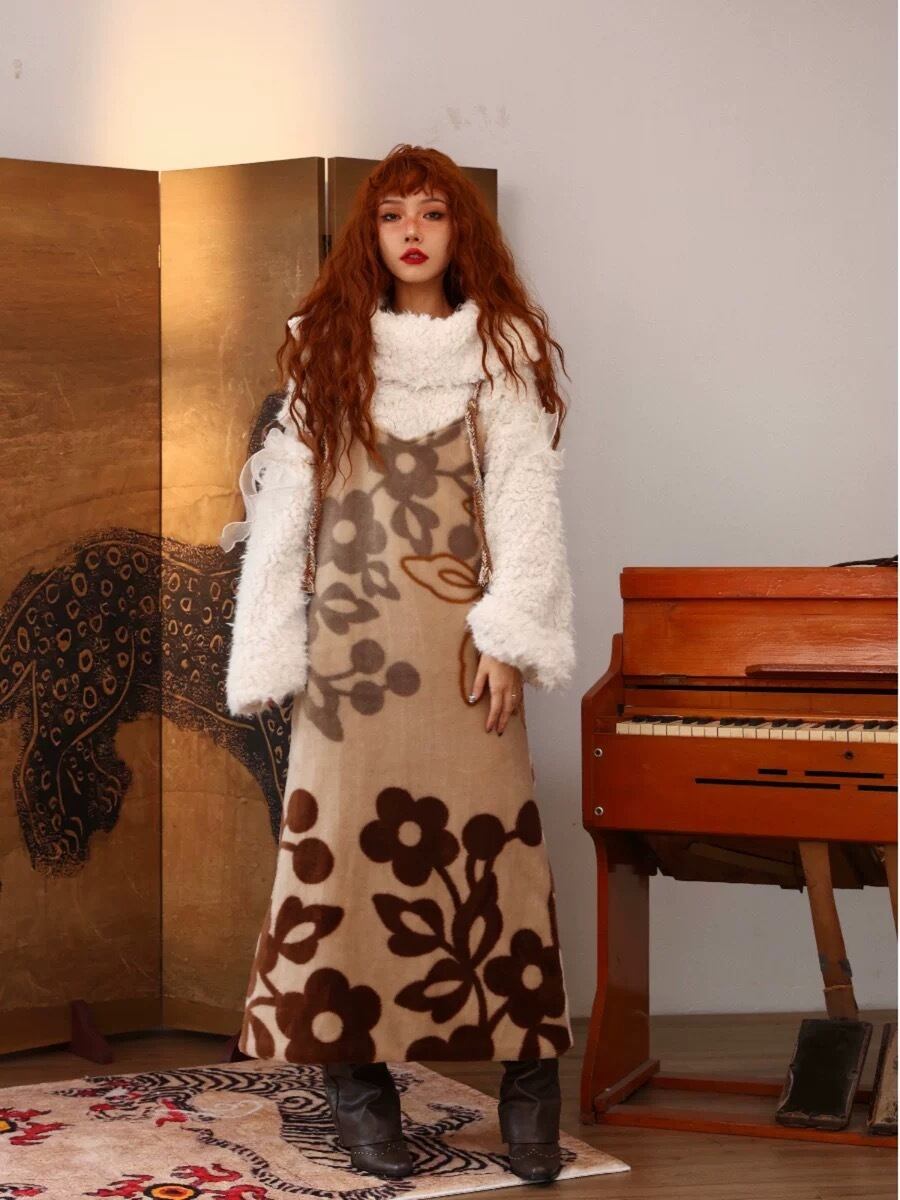 ワンピース ベージュ 茶色 花柄 フラワー アジア