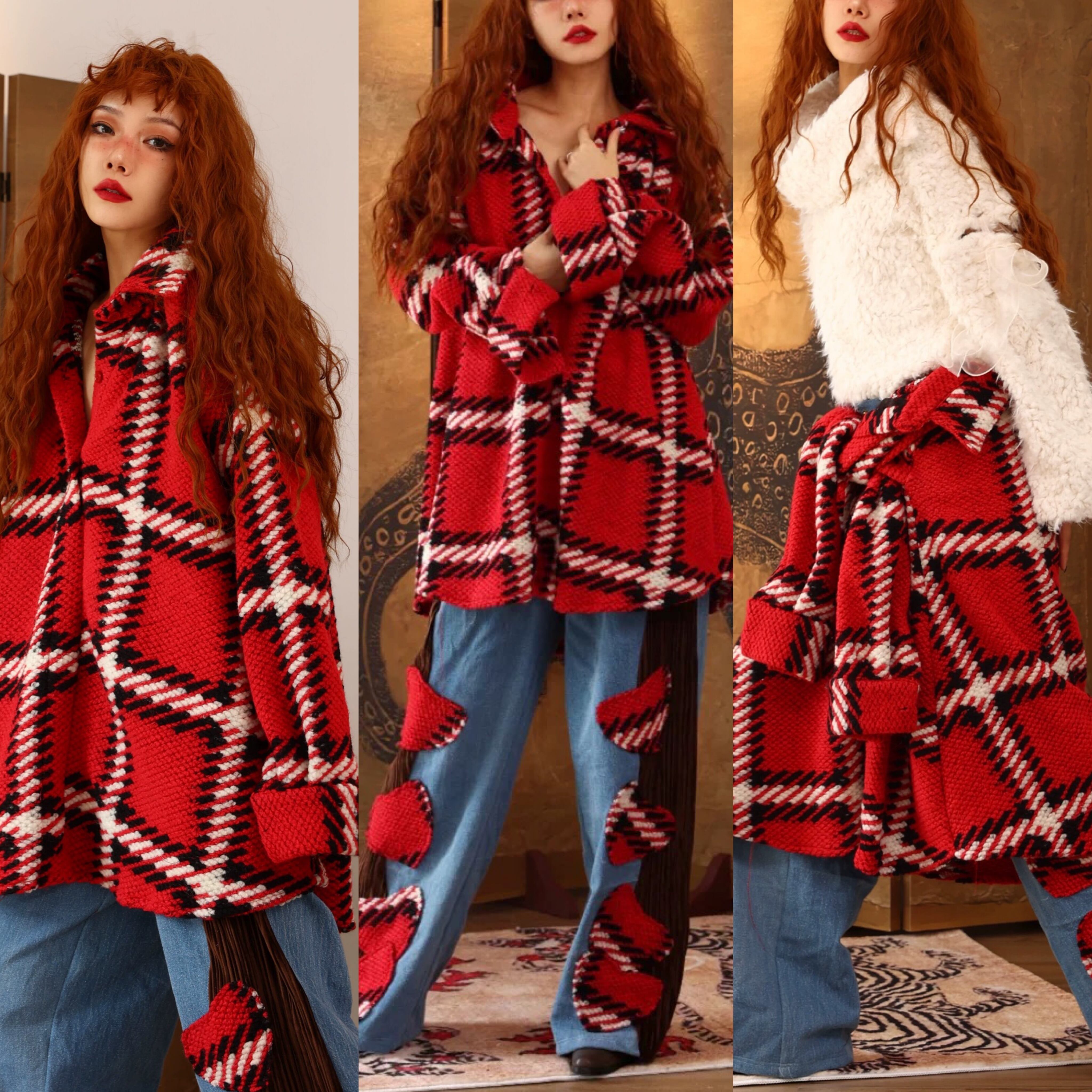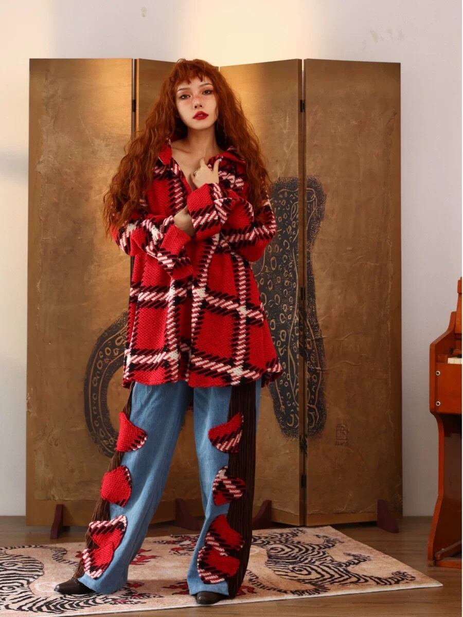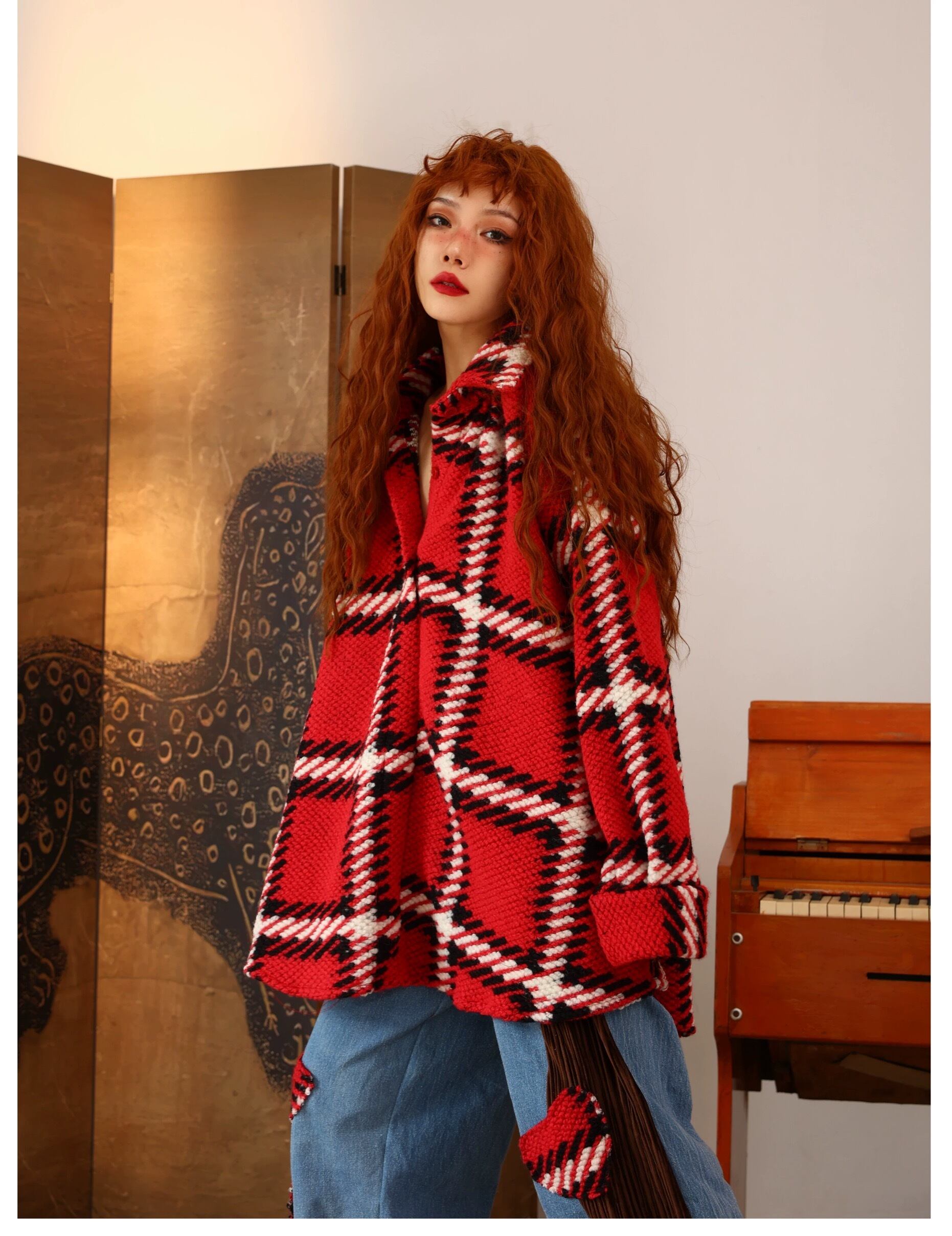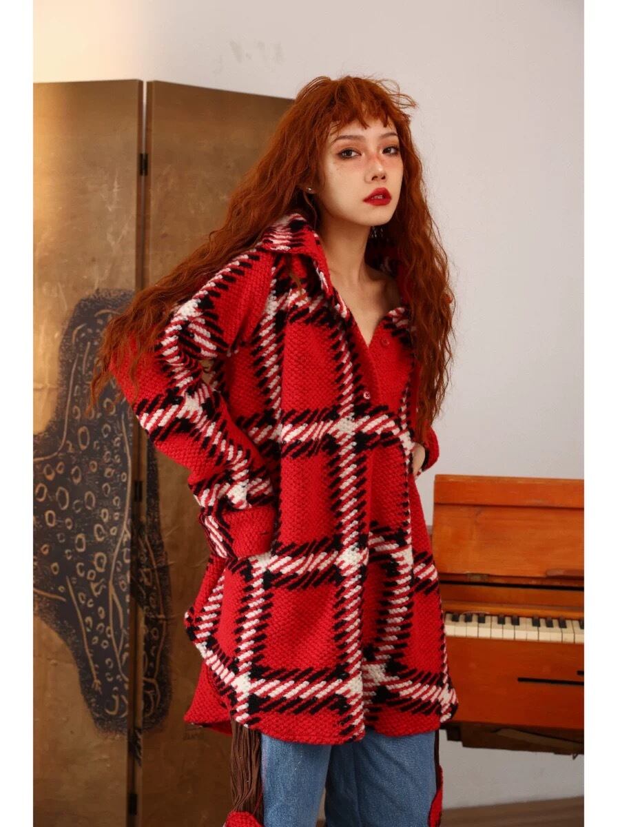 シャツ 赤 チェック アウター カーディガン コート
