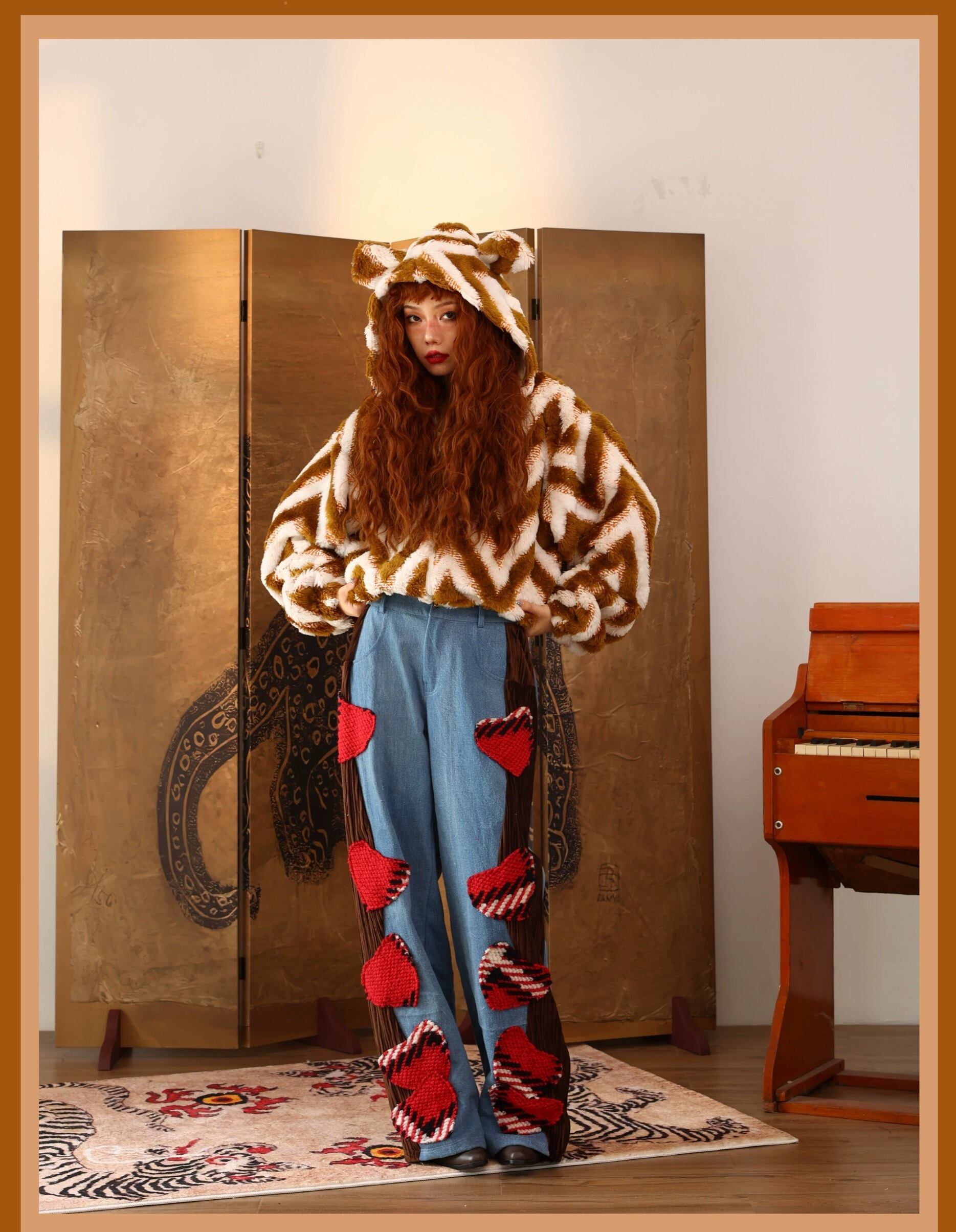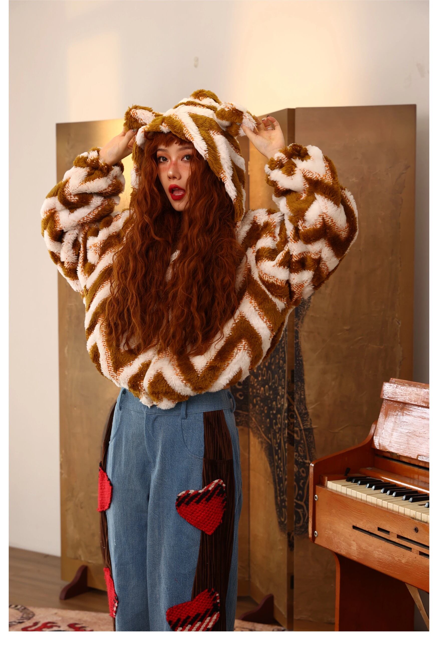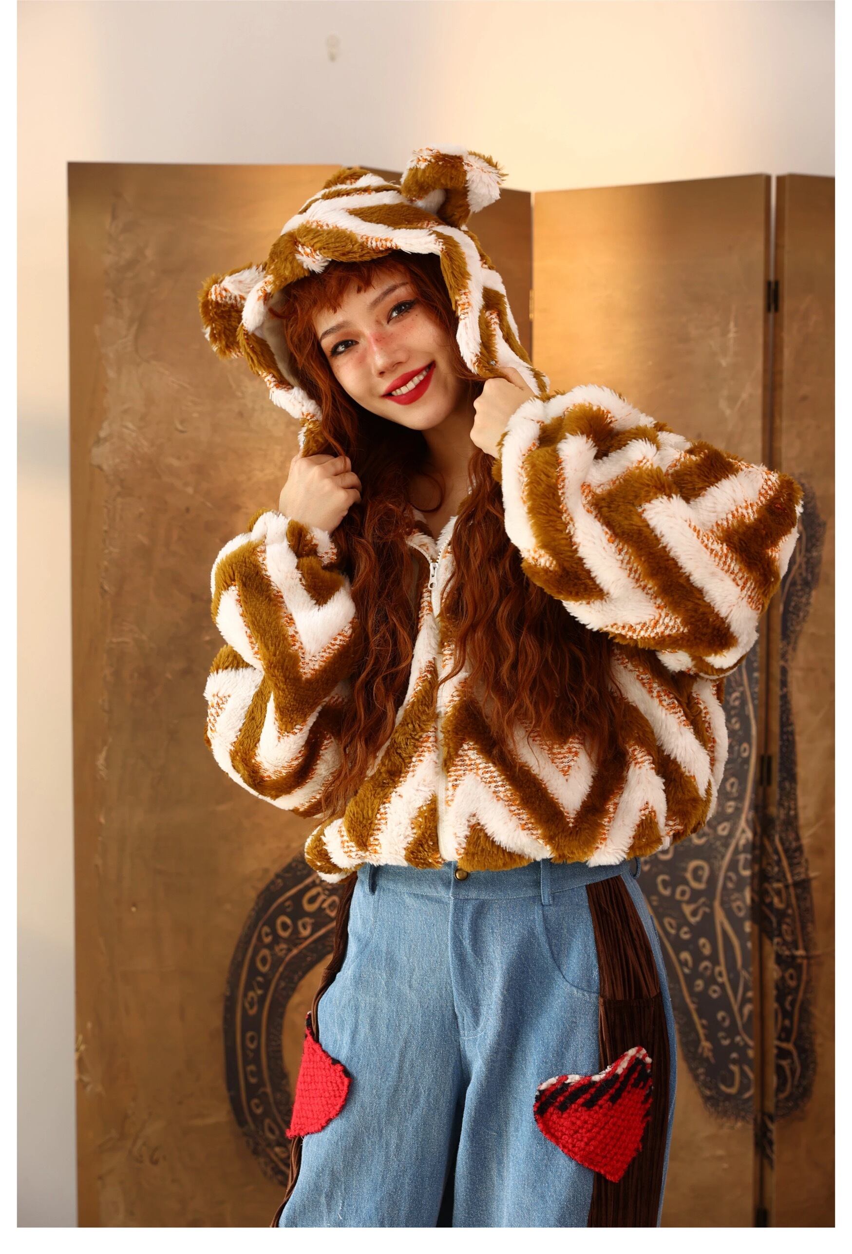 アウター パーカー くま フード ジャケット コート ボーダー