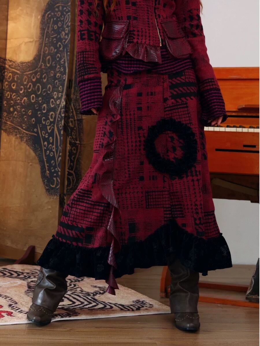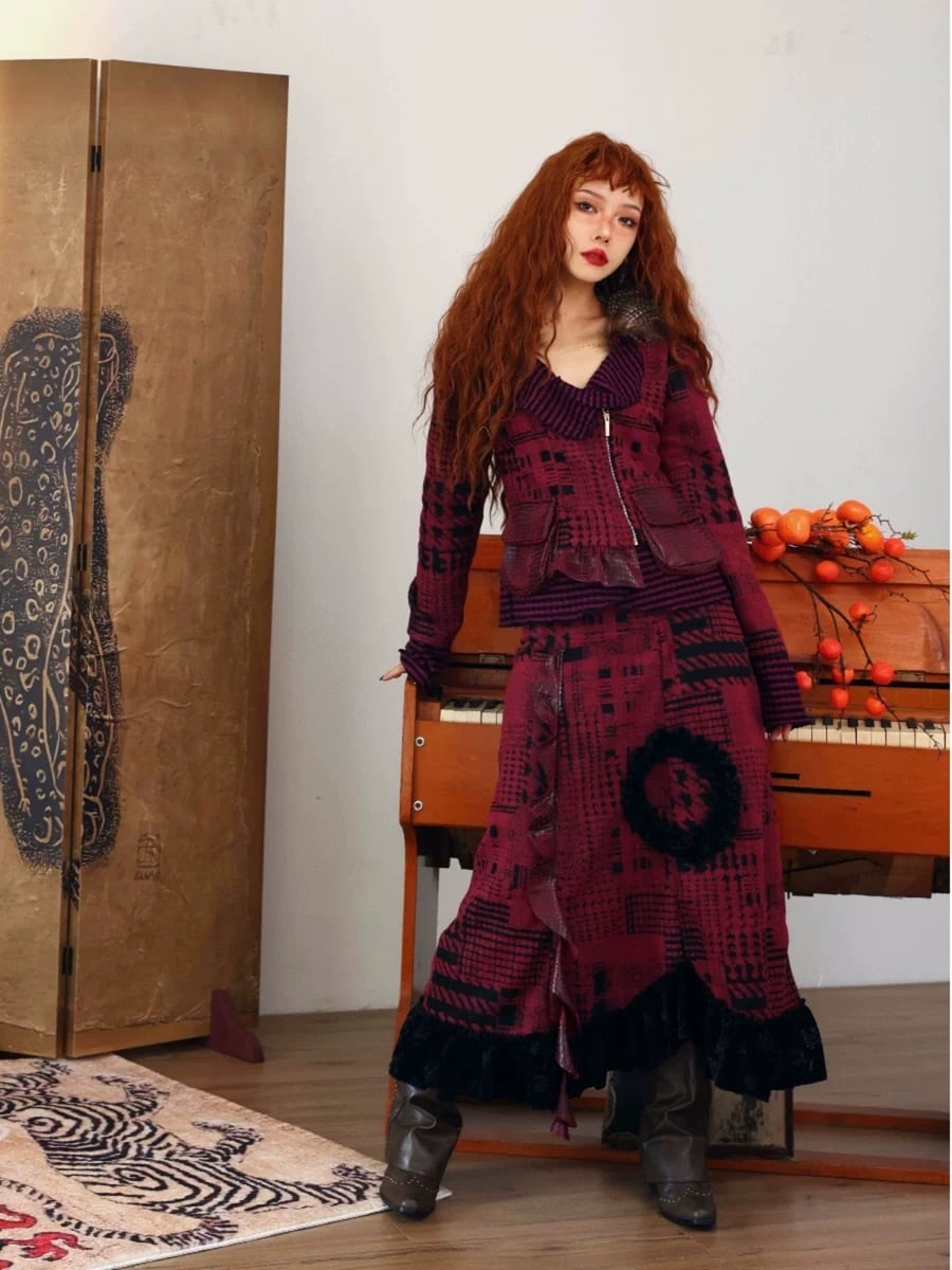 【ジャケット】赤 チェック 黒 ボトムス ロック
