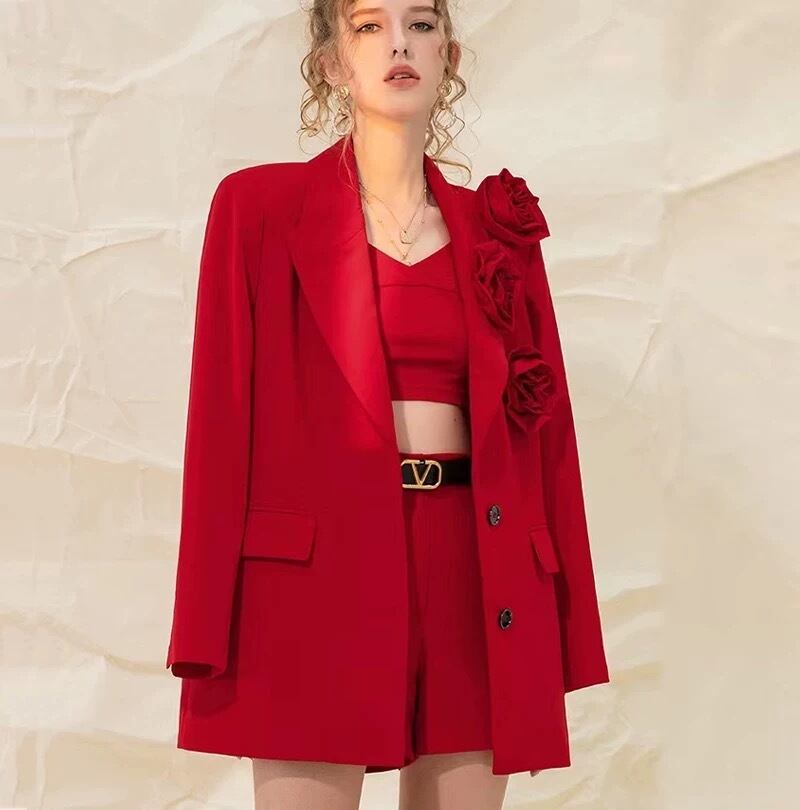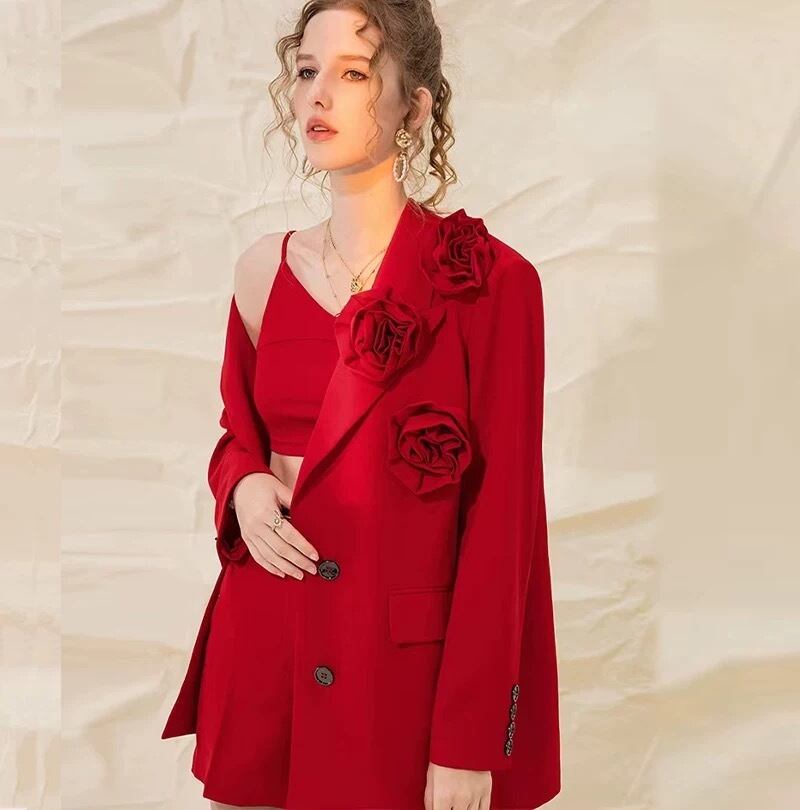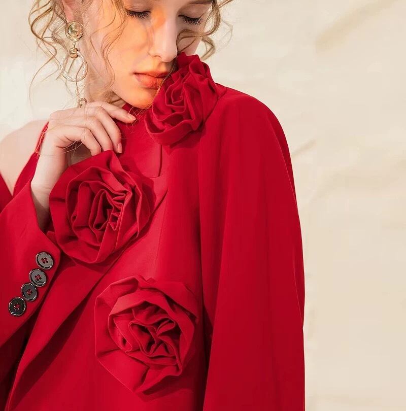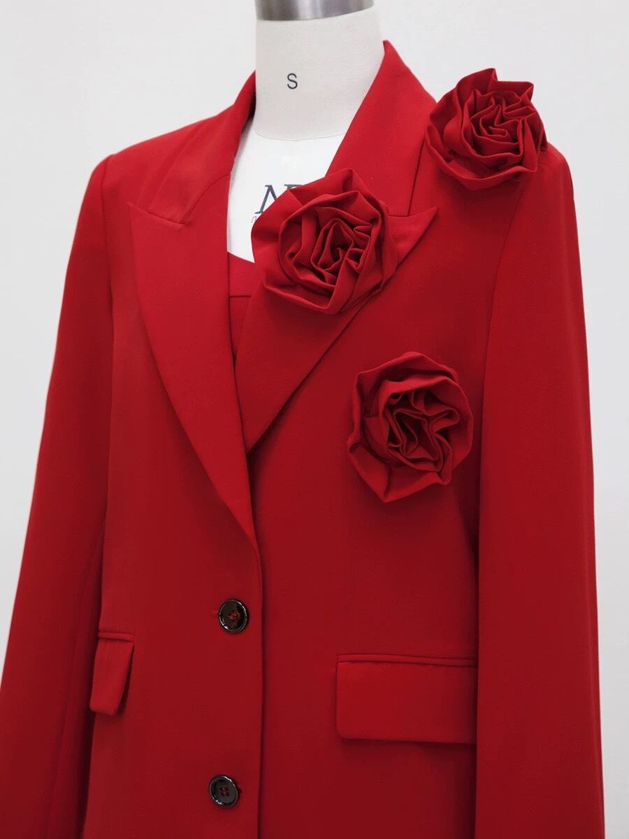 赤 薔薇 フラワー ジャケット アウター パーティー