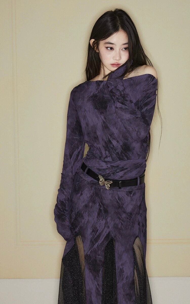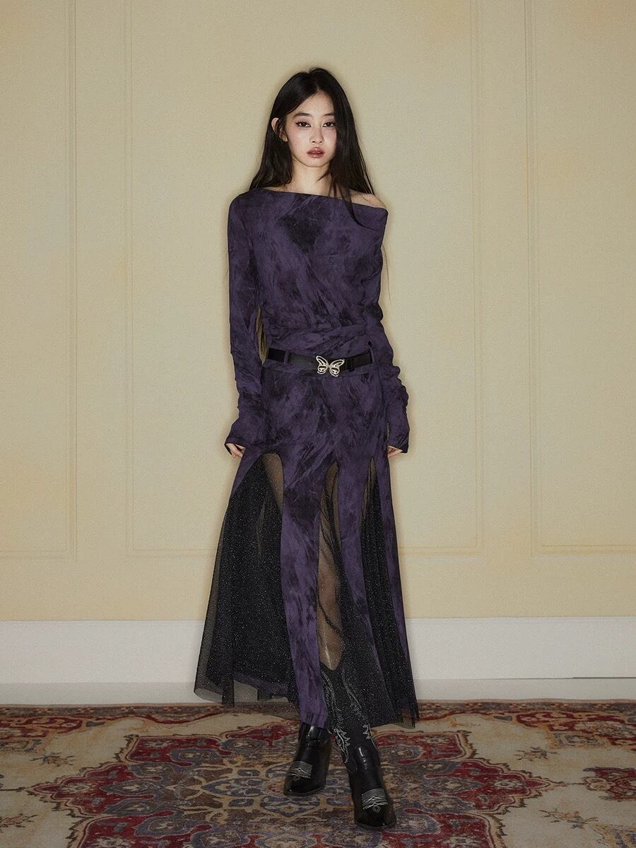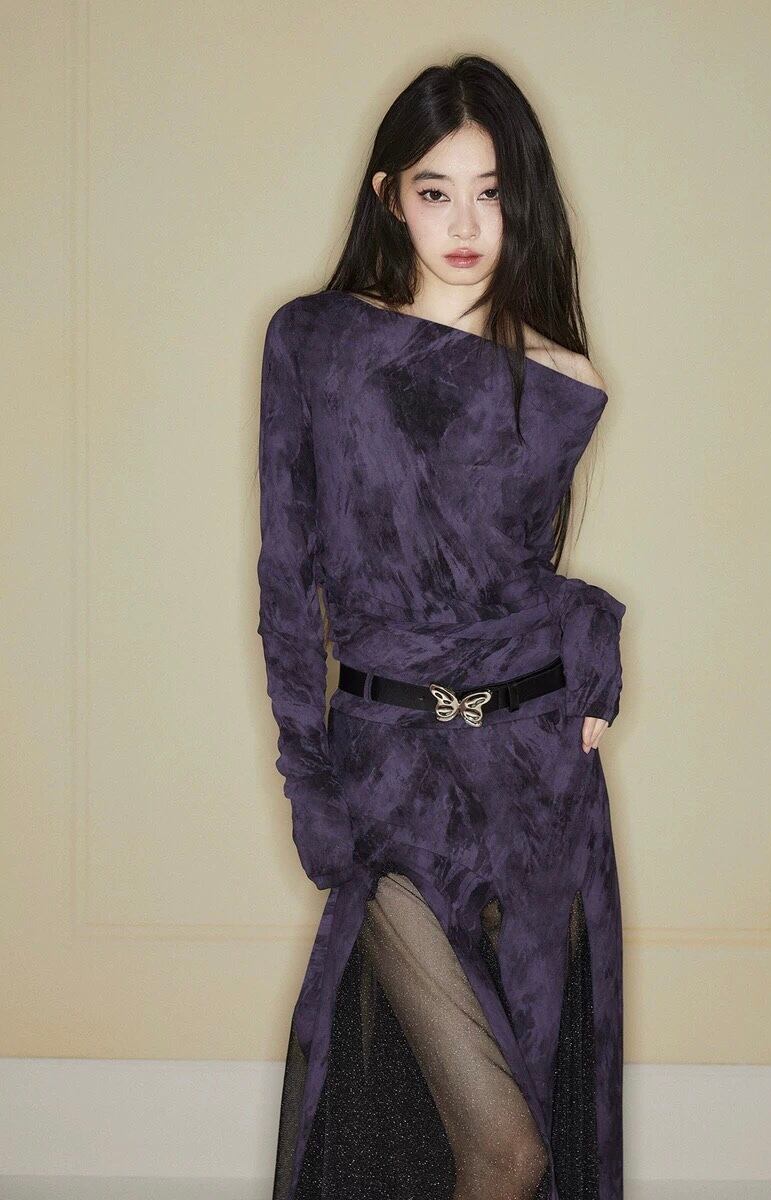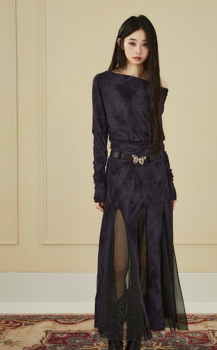 スリット ワンピース オフショルダー パープル 紫 セクシー