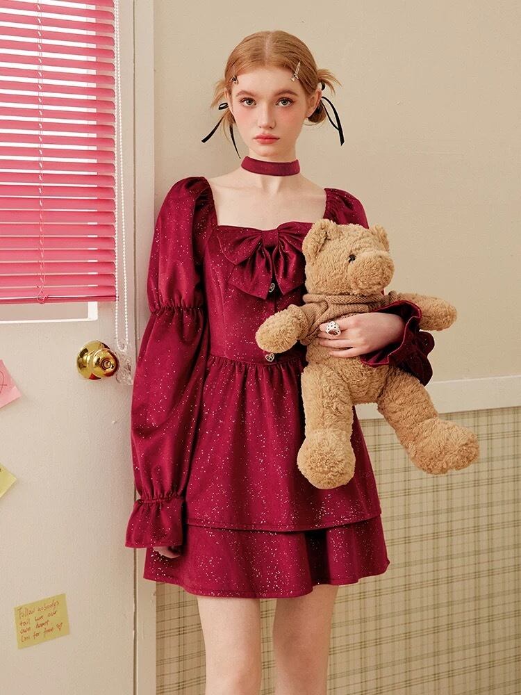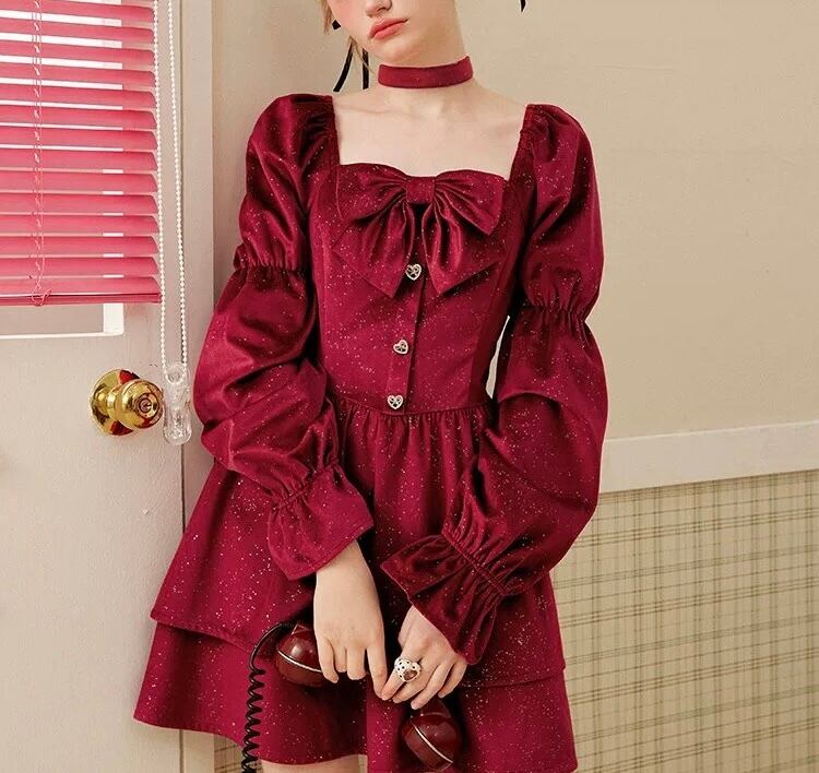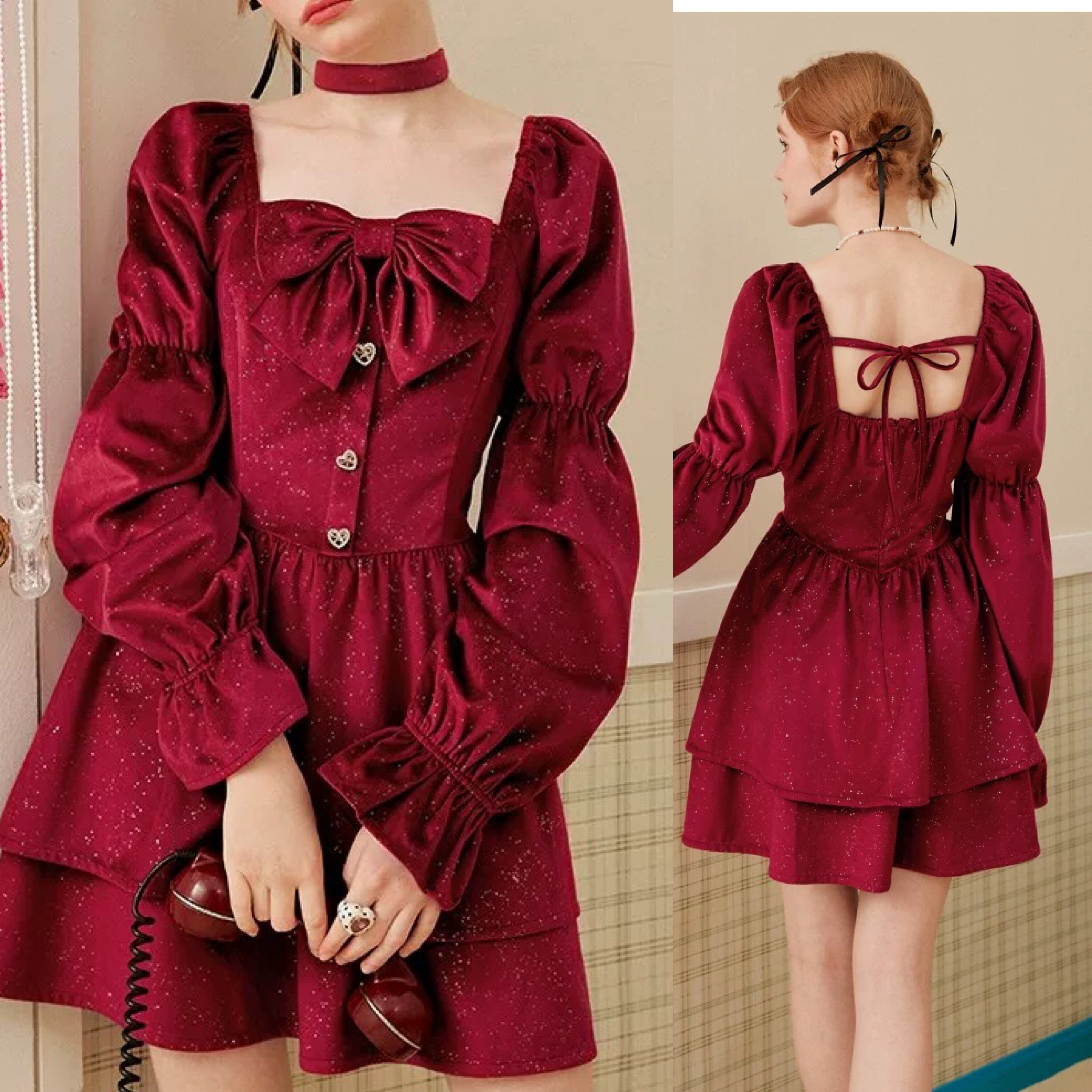 ワンピース 赤 リボン ガーリー 可愛い スカート