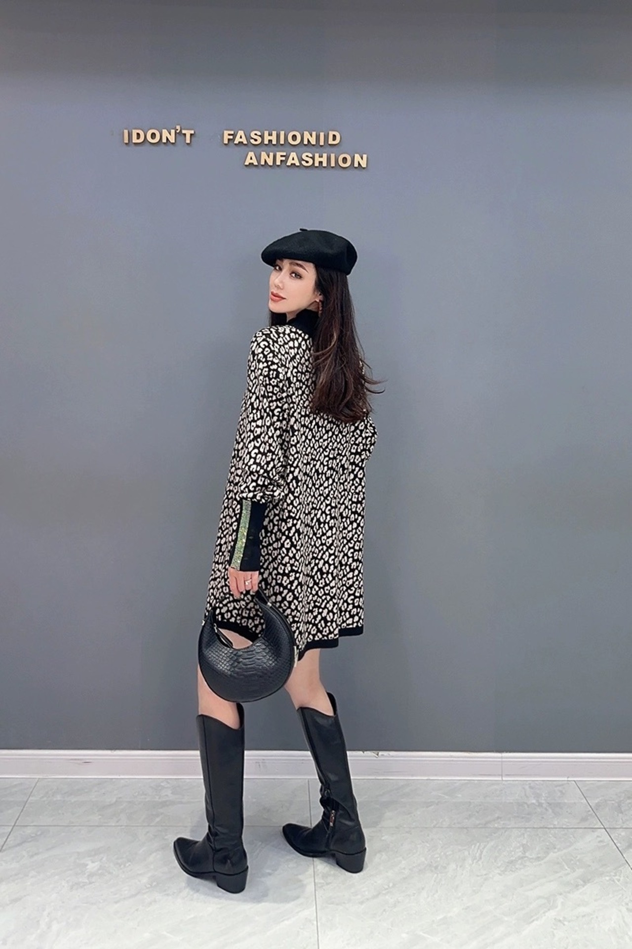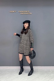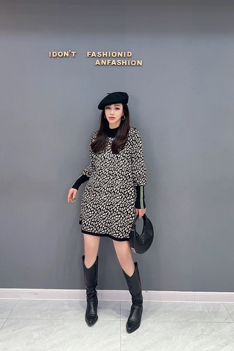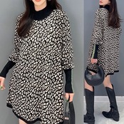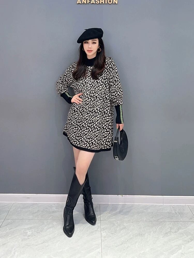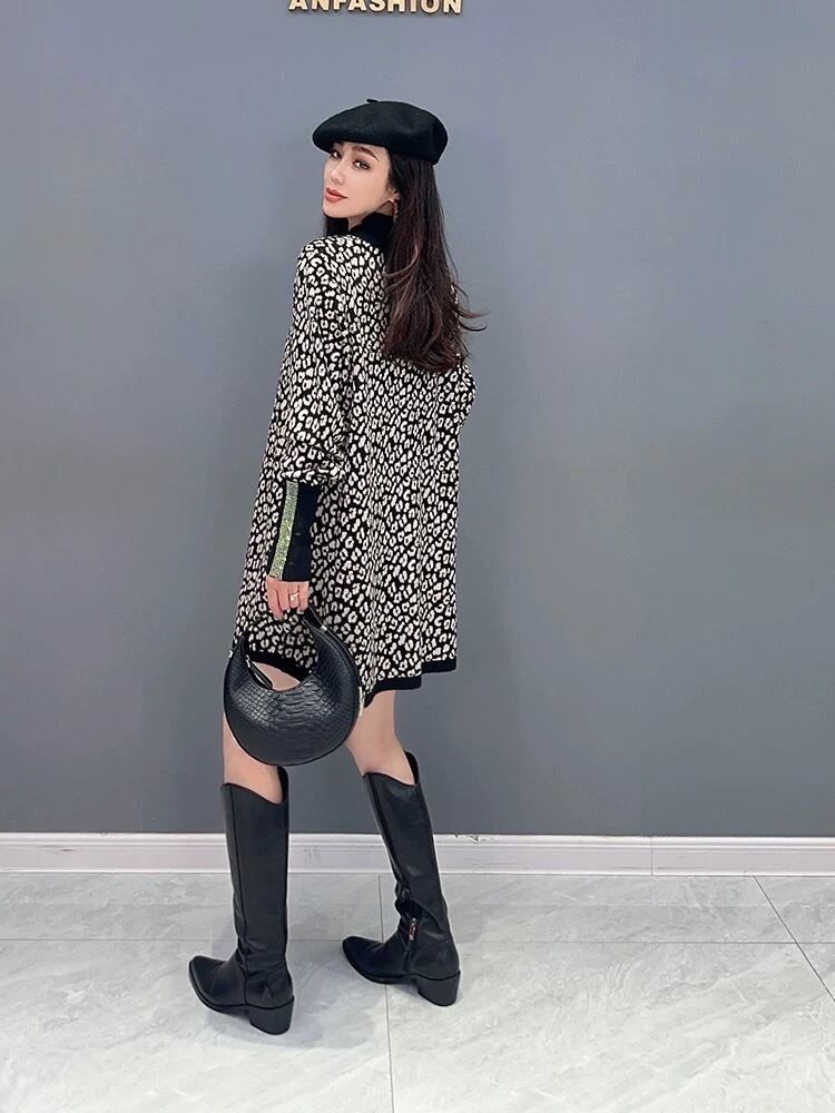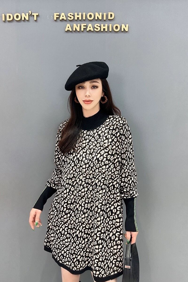 レオパード 黒 白 ハイネック ラインストーン トップス セーター ゆったり